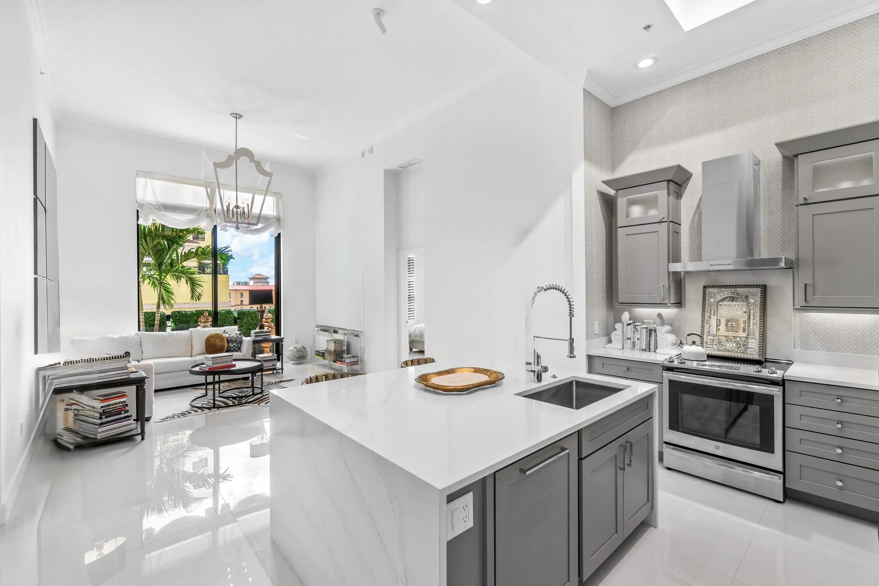 In the heart of downtown West Palm Beach, you'll find a stunning fully renovated condo that exudes modern luxury. This spacious residence boasts two generously sized bedrooms each with its own private bathroom, and a versatile den that can serve as a home office or additional living space. With soaring 14-foot ceilings, this condo offers an open and airy atmosphere that's truly captivating. Enter into the heart of this home, the designer kitchen, where no expense was spared. It features all new appliances, exquisite countertops with oversized waterfall island and custom cabinetry, making it a chef's dream come true. The entire condo showcases all-new flooring that adds elegance to the space. Designer lighting, window treatments and molding add the final touches to truly make it special...