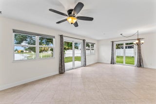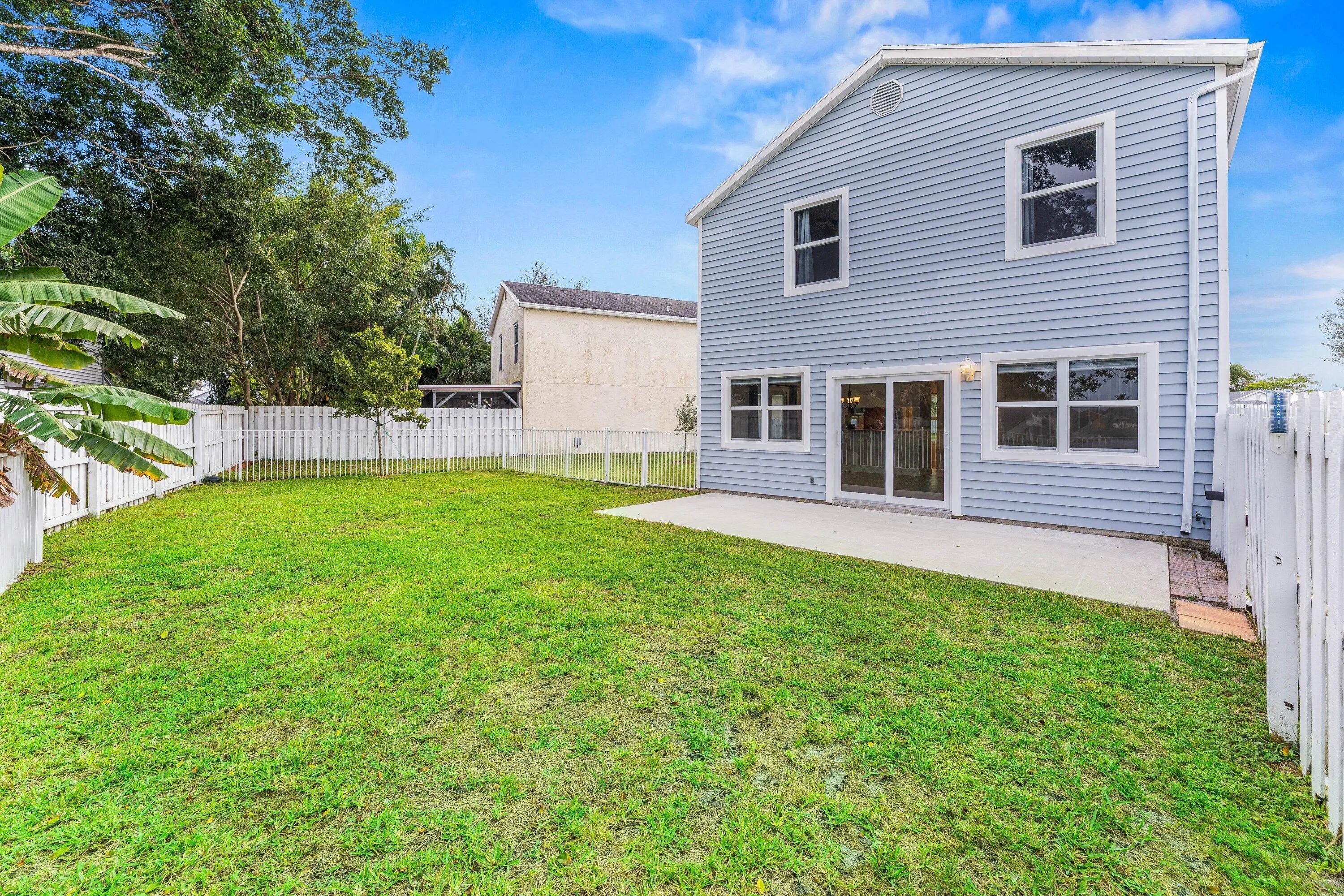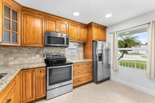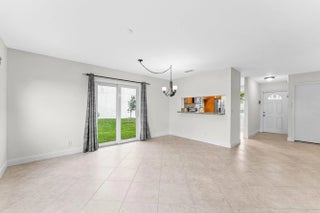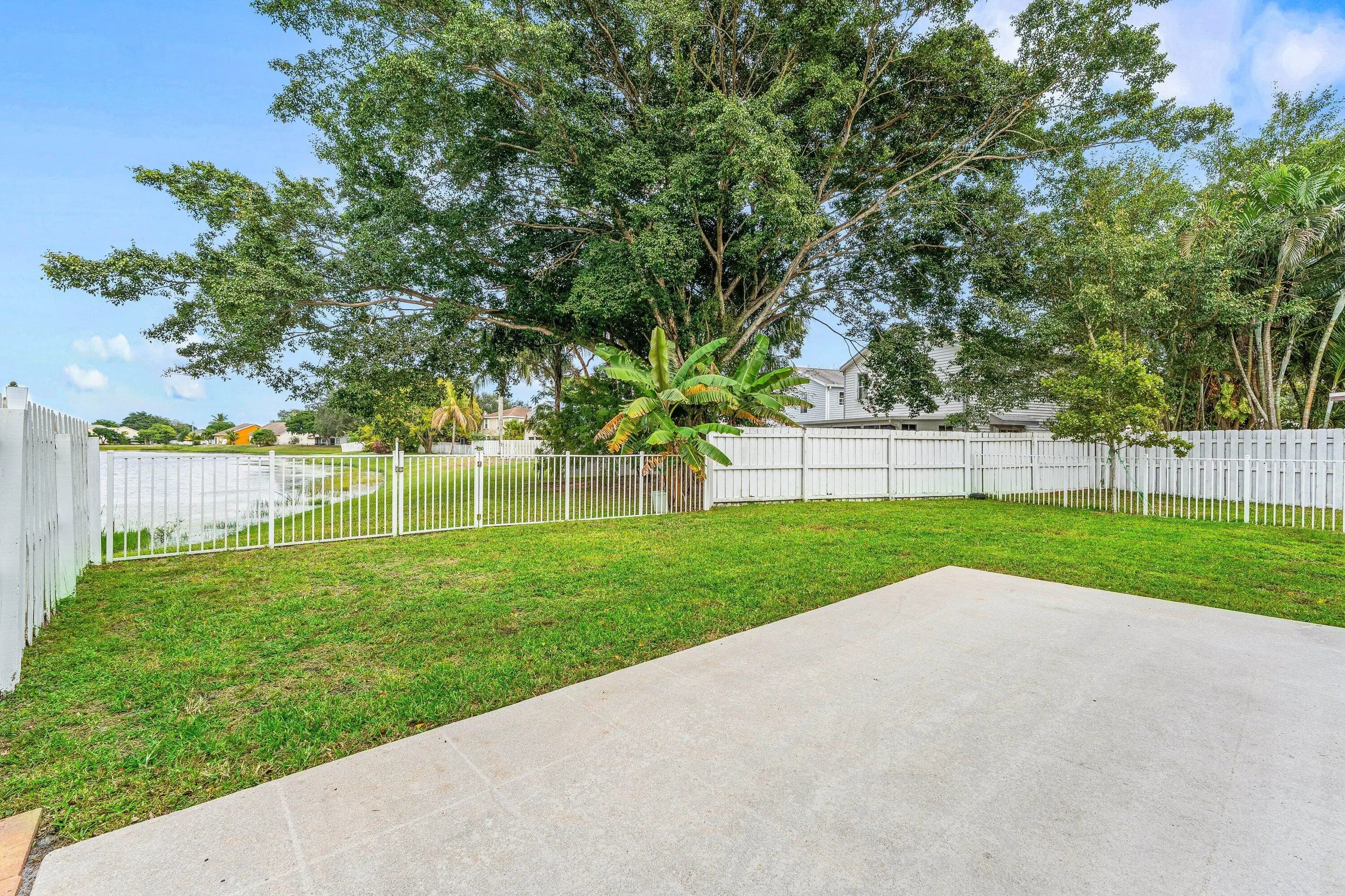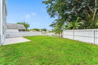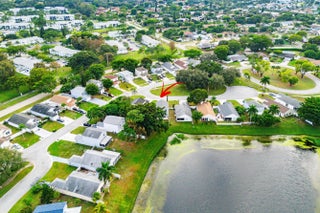 Welcome home to this charming three-bedroom, two-and-a-half-bath lakefront home with a one-car garage, located in the desirable community of Palm Club West. The property features a very spacious yard with room for a pool, brand-new roof (2024) and full impact windows and sliders (2021), offering peace of mind and long-term value. The location of this home is exceptional, offering a quiet and friendly neighborhood setting on a cul-de-sac with an elementary school only a ten-minute walk away. From the moment you enter, you'll notice the refined touches throughout, including diagonally laid tile flooring in the main living areas, updated trim, and fresh interior paint. The bright and airy kitchen features decorative solid-wood shaker cabinetry with elegant crown molding and soft-close