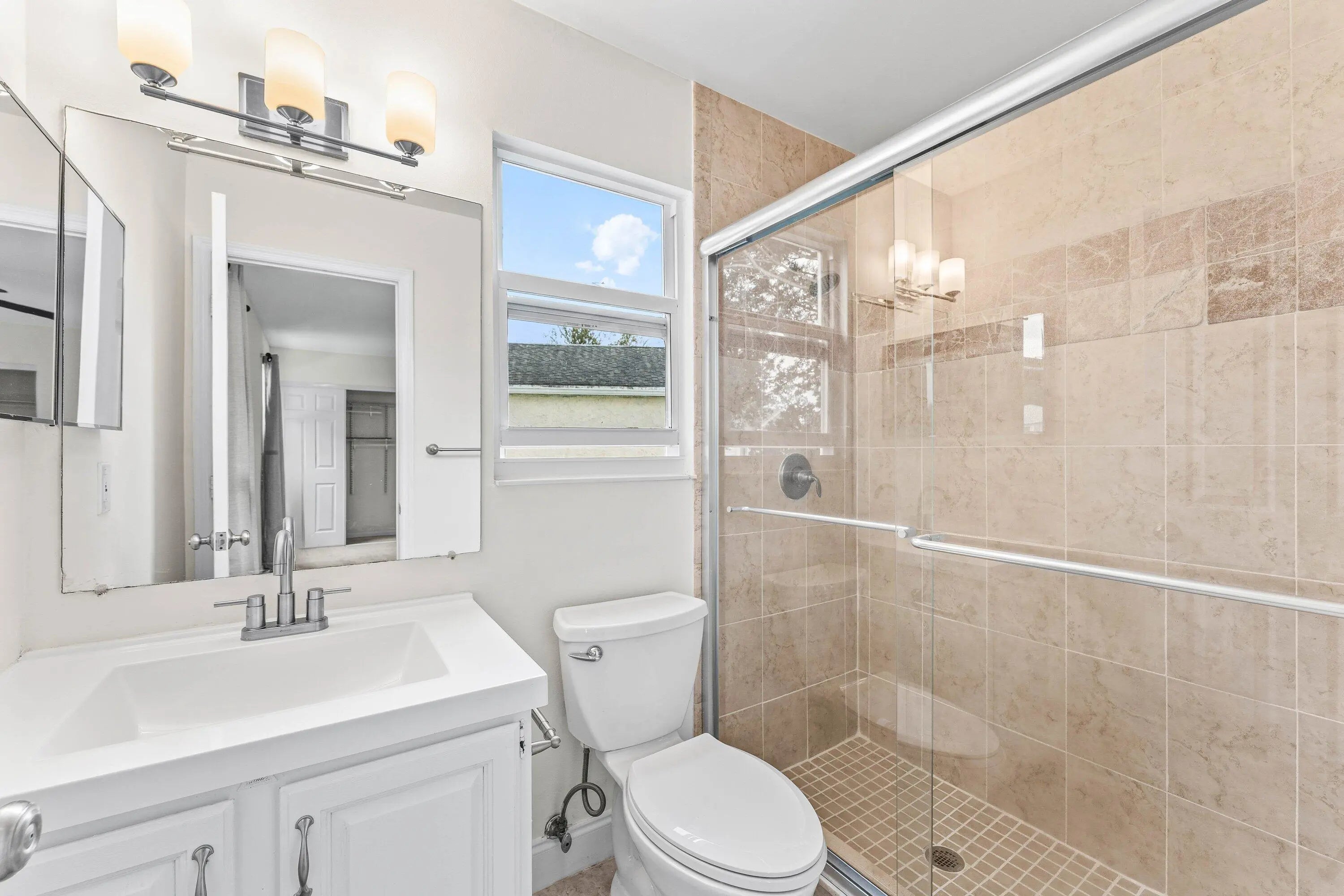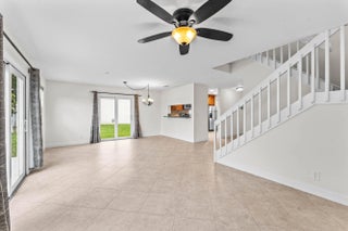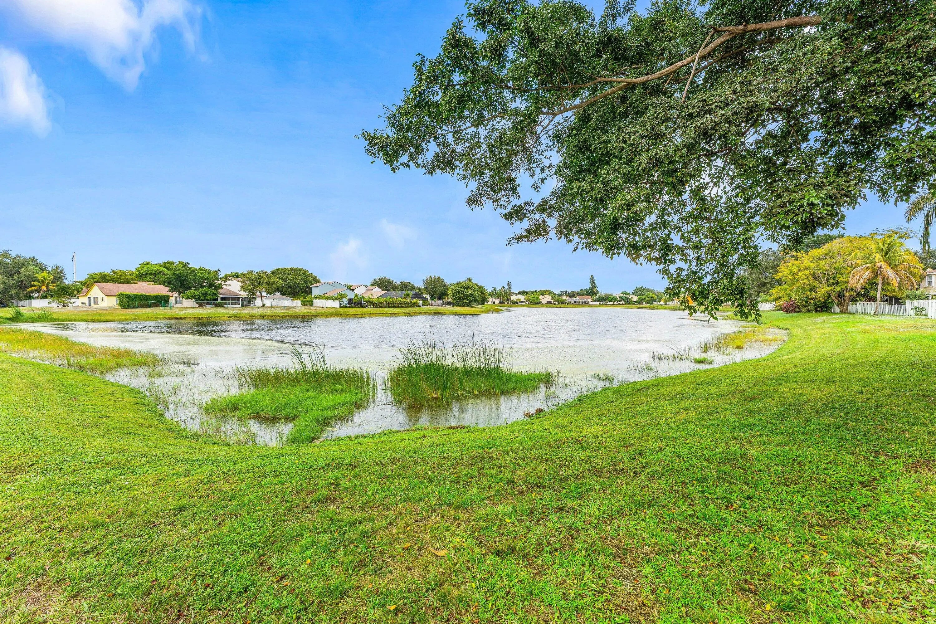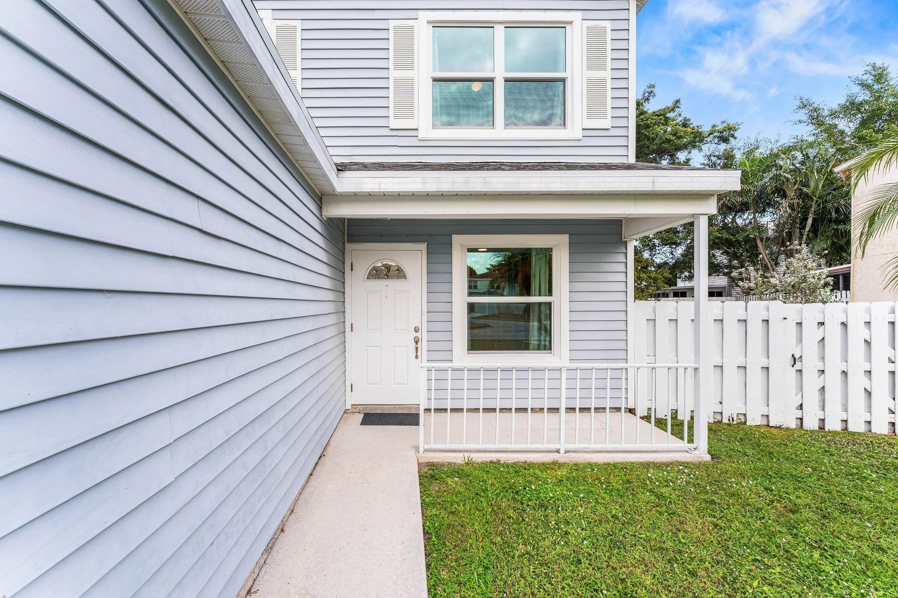 Welcome home to this charming three-bedroom, two-and-a-half-bath lakefront home with a one-car garage, located in the desirable community of Palm Club West. The property features a very spacious yard with room for a pool, brand-new roof (2024) and full impact windows and sliders (2021), offering peace of mind and long-term value. The location of this home is exceptional, offering a quiet and friendly neighborhood setting on a cul-de-sac with an elementary school only a ten-minute walk away. From the moment you enter, you'll notice the refined touches throughout, including diagonally laid tile flooring in the main living areas, updated trim, and fresh interior paint. The bright and airy kitchen features decorative solid-wood shaker cabinetry with elegant crown molding and soft-close