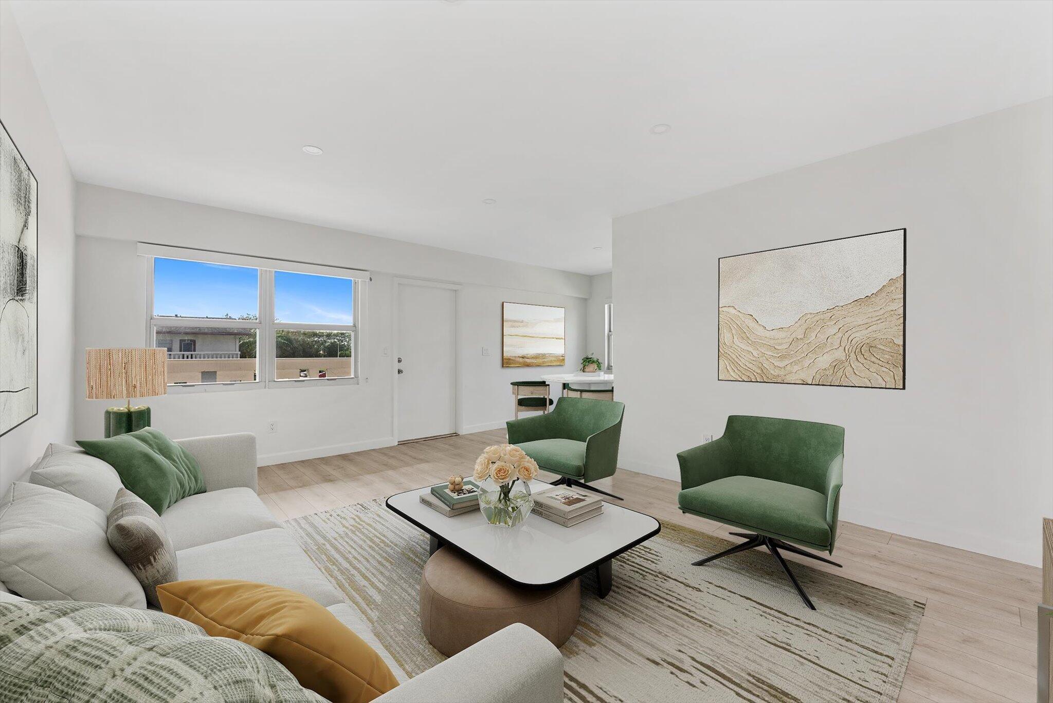 Fully Renovated with New Kitchen, Bathrooms, Flooring, Impact Windows, Plumbing, Electrical and ALL! Located in guard gated active 55+ community Century Village Boca. 2 bedrooms, 1.5 baths with enclosed patio over looking the green space and lake. Updated central AC, white wood shaker cabinets, quartz countertops, stainless steel appliances, modern luxury vinyl flooring and fresh white paint throughout. Bright corner/end unit with Elevator access. Top floor, quiet and beautiful views. Amazing amenities include Pool (indoor and outdoor) Billiards, Fitness Center, Pickleball, Tennis Courts, Live Shows, Theater, and so much more activities and clubs to join! Bus system that goes around the neighborhood and off-site.