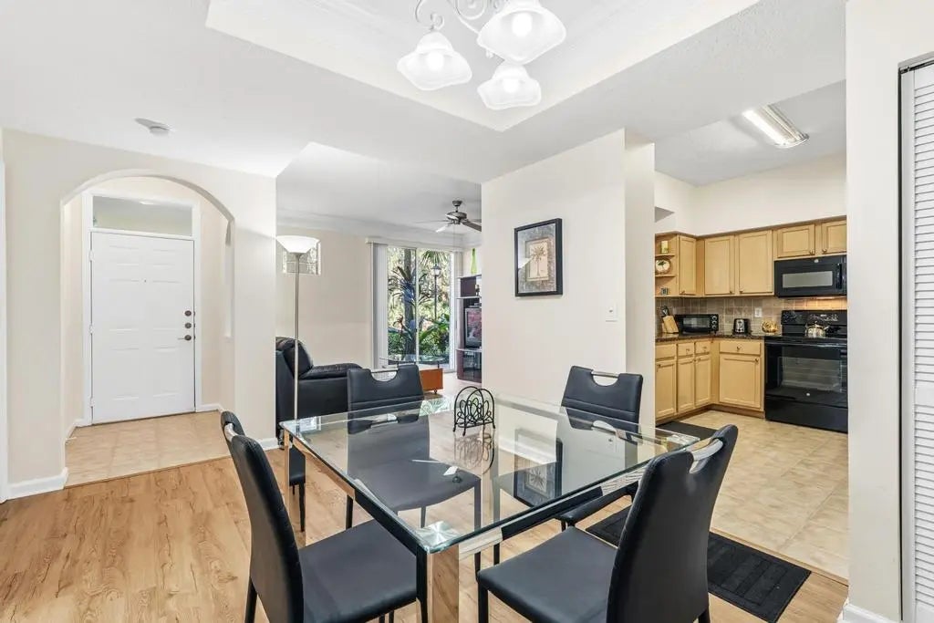 Beautiful first-floor 2 bedroom, 2 bath condo with attached 1-car garage in the highly desirable Somerset at Abacoa. This spacious split-bedroom layout features luxury vinyl flooring throughout, a bright kitchen with granite counters, wood cabinetry, and black appliances. The foyer opens to the dining area and living room and flows into the kitchen. The living room has sliding doors that open to the patio. The primary suite includes an en-suite bath and large walk-in closet. The second bedroom also functions as a full suite with joint access to the bathroom and another oversized closet--perfect for guests or a second primary. All living areas are on one level for easy convenience. This condo also features accordion shutters.