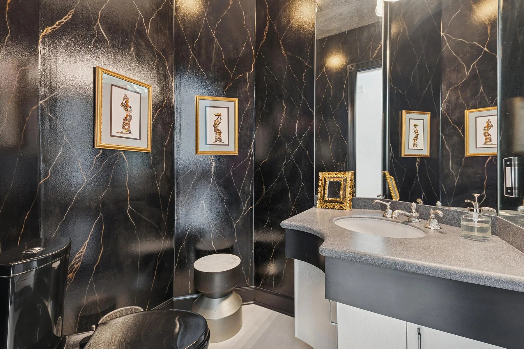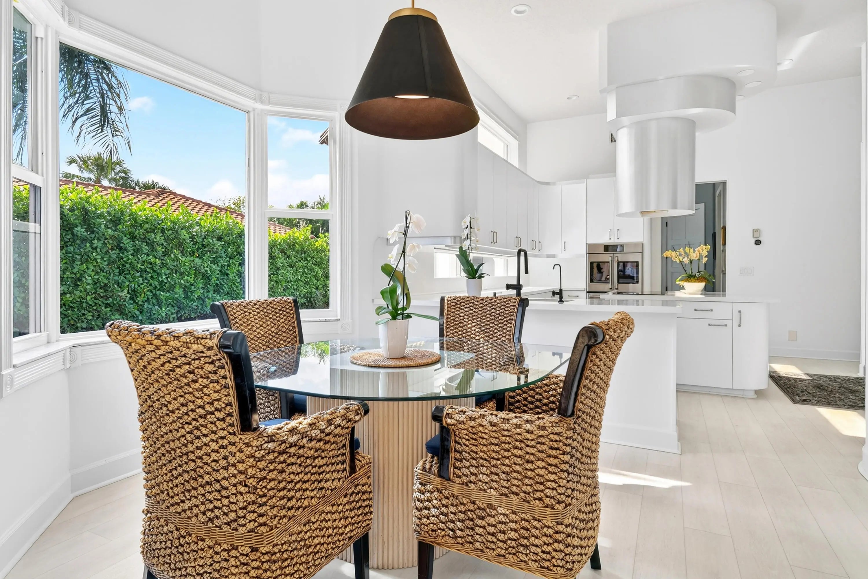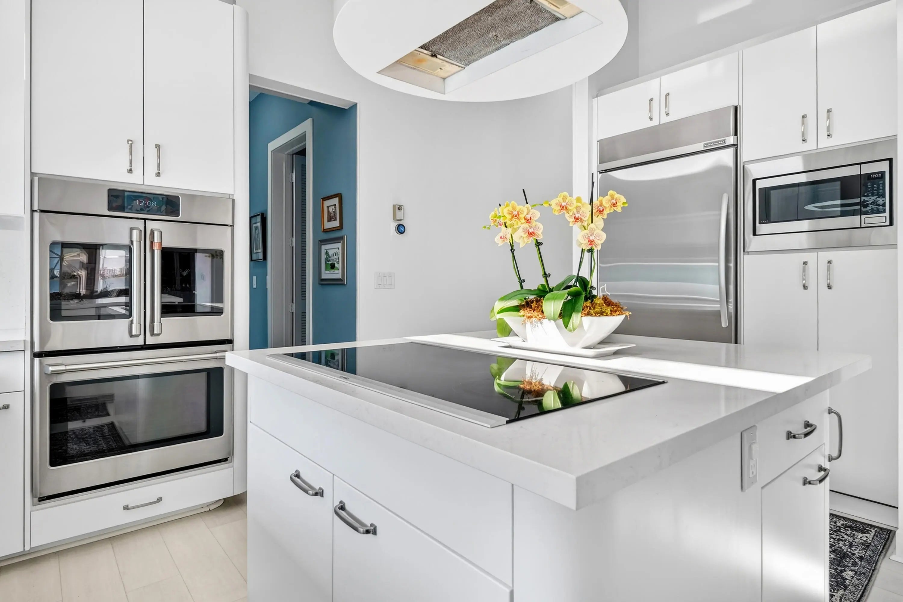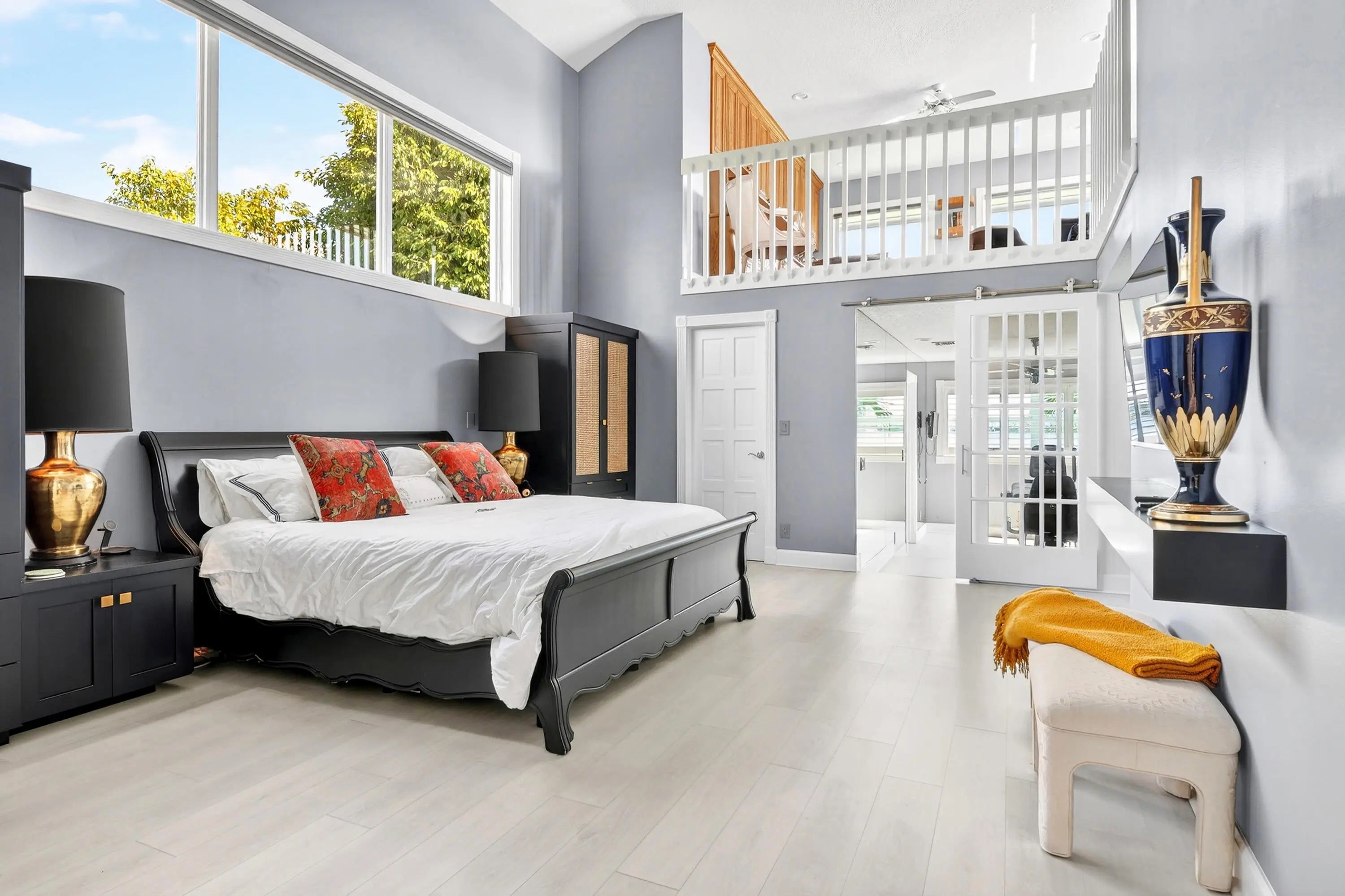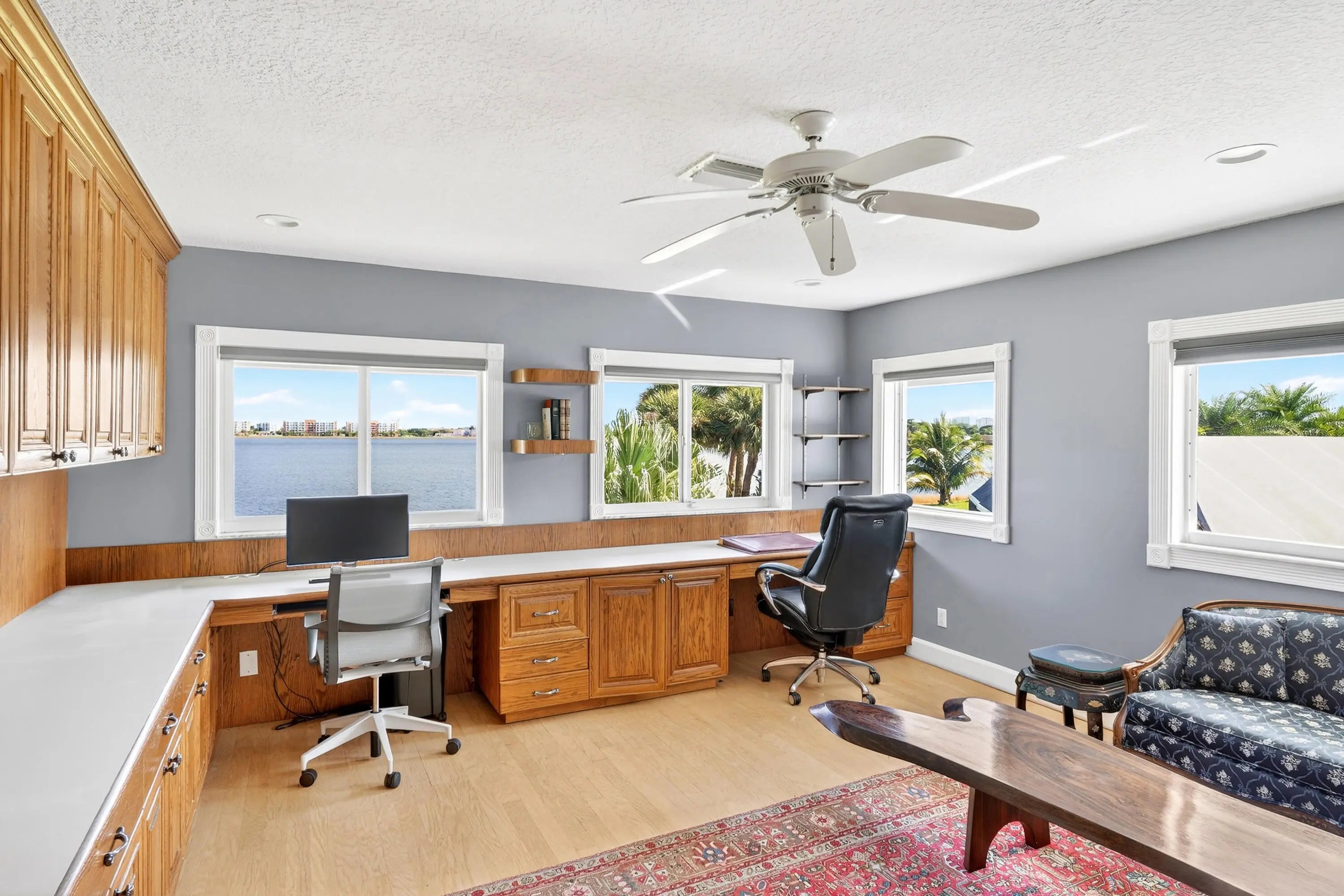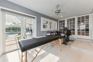 Bring your cherished collectible cars to this spectacular contemporary residence, perfectly tucked away on a peaceful cul-de-sac overlooking the fresh waters of Lake Mangonia. Custom built in 2019 by the current owner, this gracious home offers a versatile canvas designed to complement a wide range of taste and lifestyles. Nestled in the heart of West Palm Beach within the prestigious gated community of Presidential Estates, the property features a luxurious first-floor primary suite with a spa-inspired en-suite bath, a private workout/massage room, and a flexible loft space ready to adapt to your needs. Soaring ceiling and expansive windows bathe the interiors of this home in natural light, creating an open, airy atmosphere. Multiple pocket, sliding glass doors seamlessly