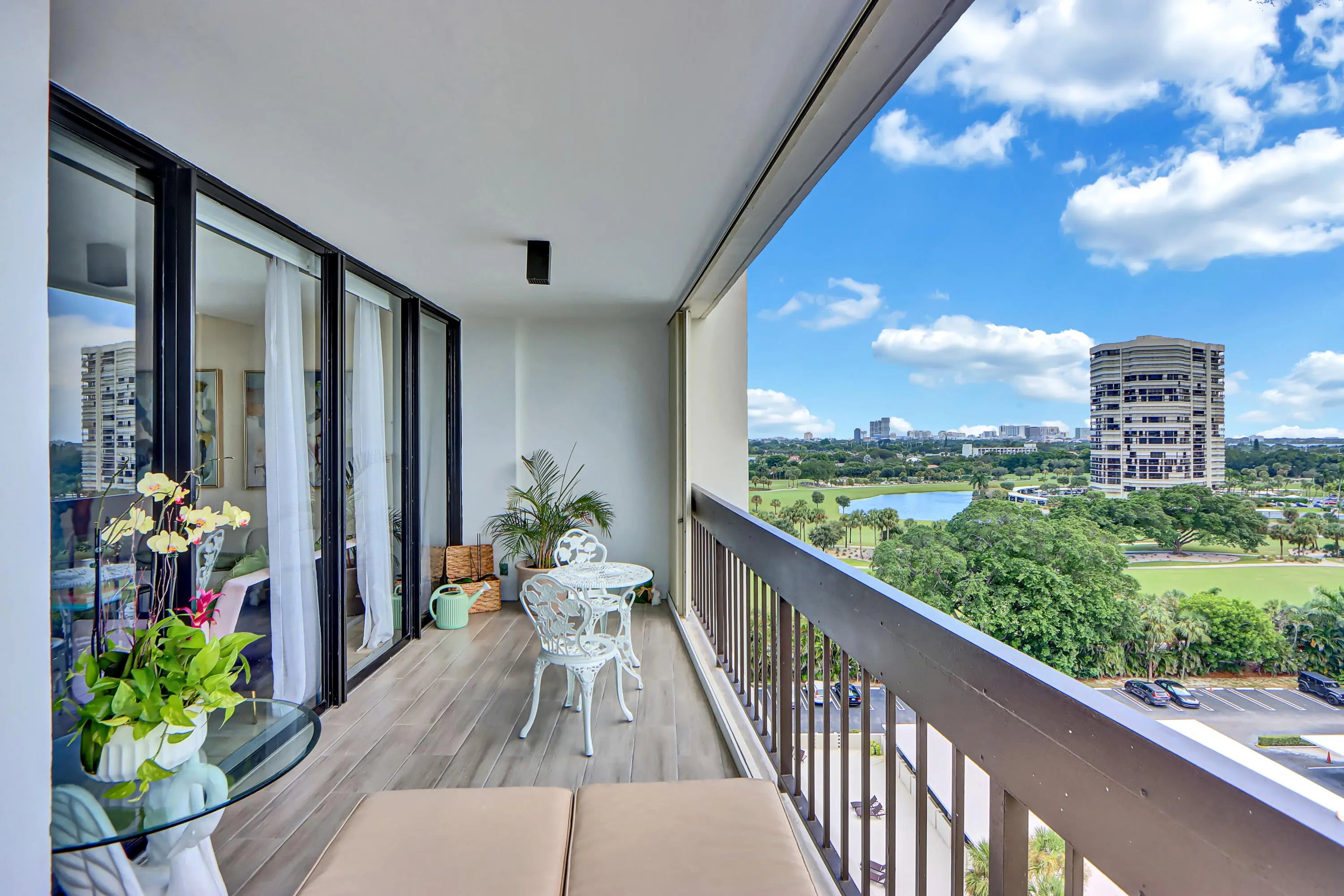 Beautiful, Furnished 2 bedroom, 2 bath condo with breathtaking views. This home is a serene escape, just 9 minutes from the heart of the city. Spacious, light-filled layout with two oversized private balconies. Recently renovated with contemporary finishes throughout. Enjoy Peaceful mornings and sunsets with the sounds of birds and sweeping golf course views. The building offers a large pool, fitness center, bike storage Doorman service and gated community for privacy and peace of mind Nestled within a prestigious golf course. Pet-friendly building. Located Next to the exclusive Belgrove Resort & Spa. Walking distance to Whole Foods, shopping, banks, and restaurants. Assigned parking space plus guest parking. This unit is available furnished ($3,500/month)