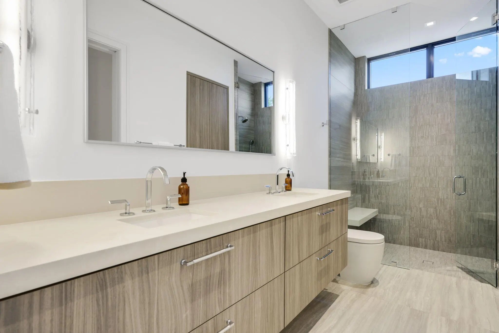 Welcome to Grove Estates -- Downtown Delray's Only Gated Single-Family Home Community. Introducing the Oasis at Grove Estates built by award winning Azure Development --a new standard of luxury living in Delray Beach within true walking distance to Atlantic Ave. This brand-new, modern residence on a 9,800+sf corner lot offers 5 bedrooms, 5 full bathrooms, 2 powder rooms, a large flexible club room with bar, and over 5,400sf of expertly crafted living space. Designed with clean lines, soaring ceilings, and expansive 12' floor to ceiling windows, this home is bathed in natural light and built for seamless indoor-outdoor living. Covered lanai with summer kitchen and views of the pool, with sunshelf & spa from all rooms.