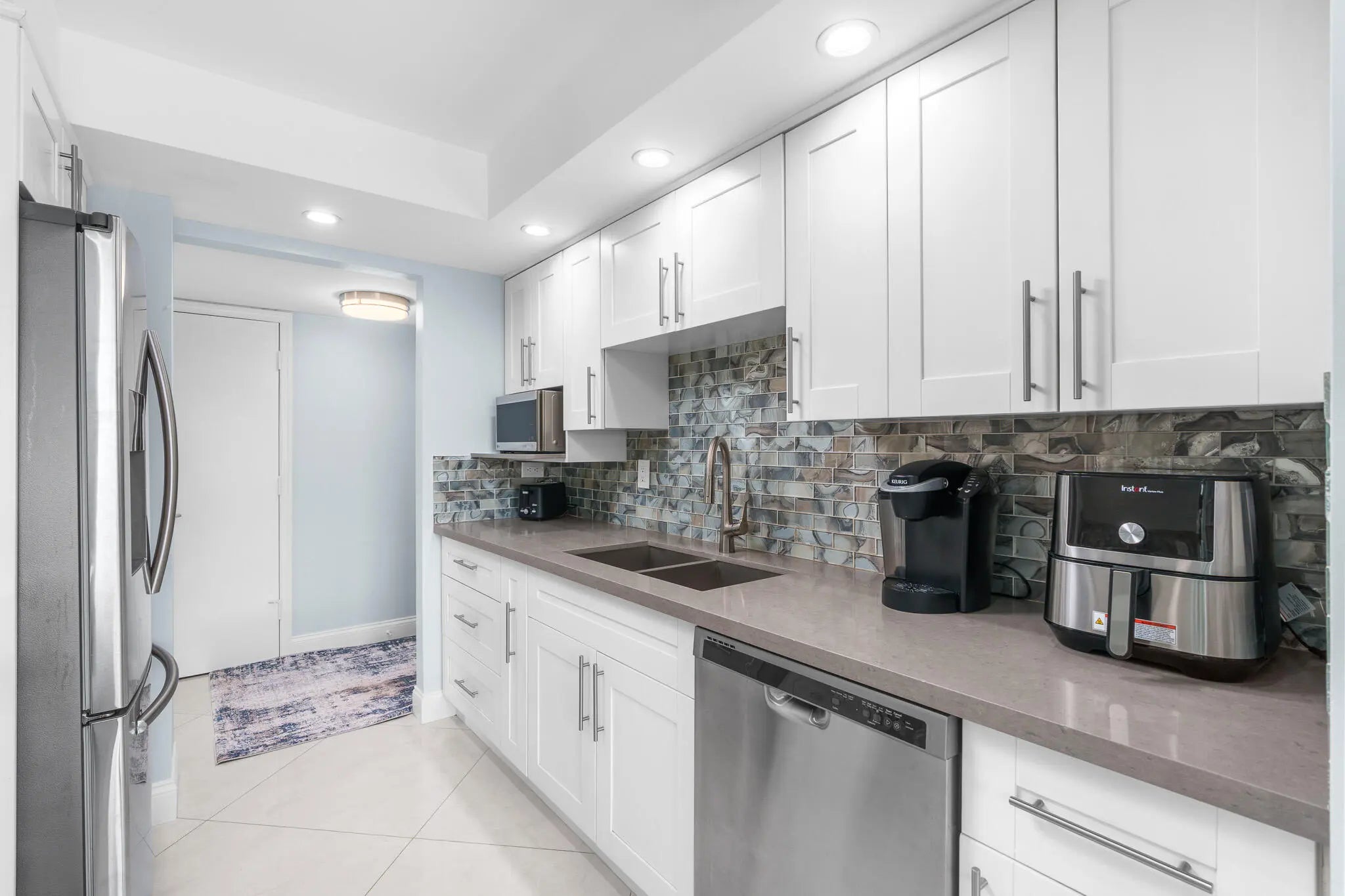 The perfect winter retreat - available January 7th! This fully updated corner residence is beautifully furnished with coastal decor. Perfectly situated across the street from the beach and minutes to Downtown Boca's restaurants and shopping. Southeast facing with two balconies, featuring a view of the Boca inlet. Gleaming white tile throughout the condo. Updated kitchen and baths. Furnished with everything you will need during your stay. Tierra Del Mar amenities include a tennis court (with pickleball lines), bbq grills, and heated pool (closed for 2026 season).