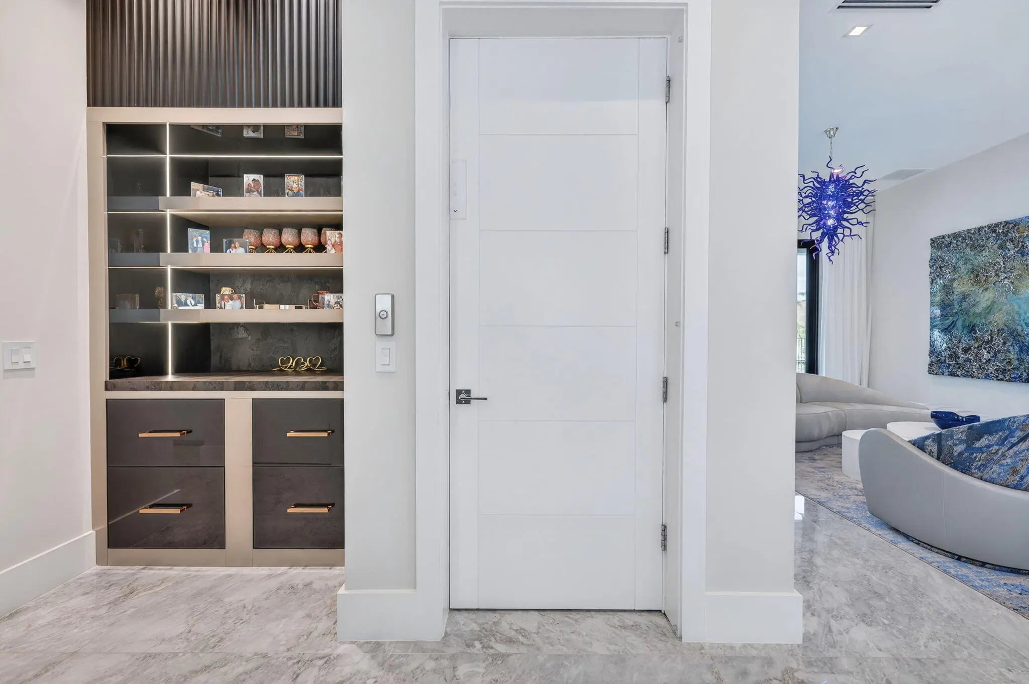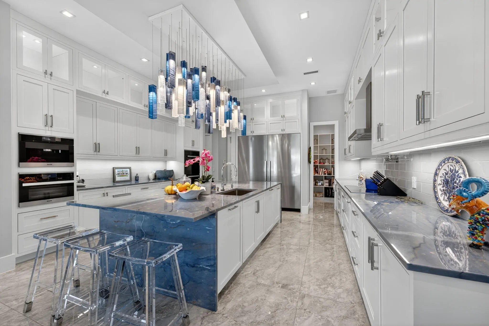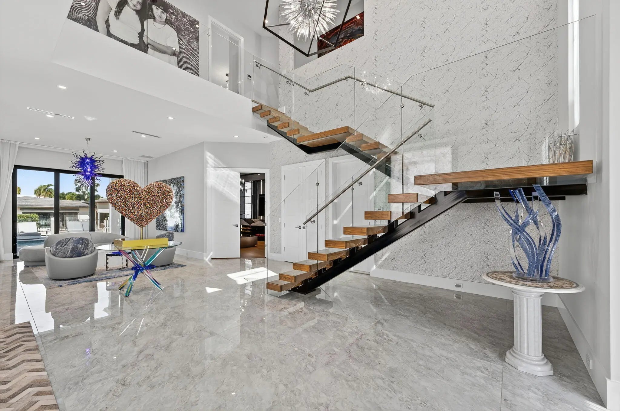 Exquisite Waterfront Estate with Unrivaled Luxury Finishes. Experience modern waterfront living in this magnificent newer-construction residence, showcasing a brand-new seawall and extraordinary high end craftsmanship. Upon entry, you're greeted by a dramatic illuminated marble feature wall and custom floating staircase--a stunning architectural centerpiece. The open-concept living spaces are highlighted by designer fixtures, impact-resistant windows, doors, and garage doors. 3 Carrier Infinity A/C systems for ultimate climate control. The chef's dream kitchen is a masterpiece featuring all Miele appliances, including oversized refrigerator units, two dishwashers, double ovens, speed oven, built-in coffee maker, pot filler, and induction all surrounded by exquisite custom cabinetry.