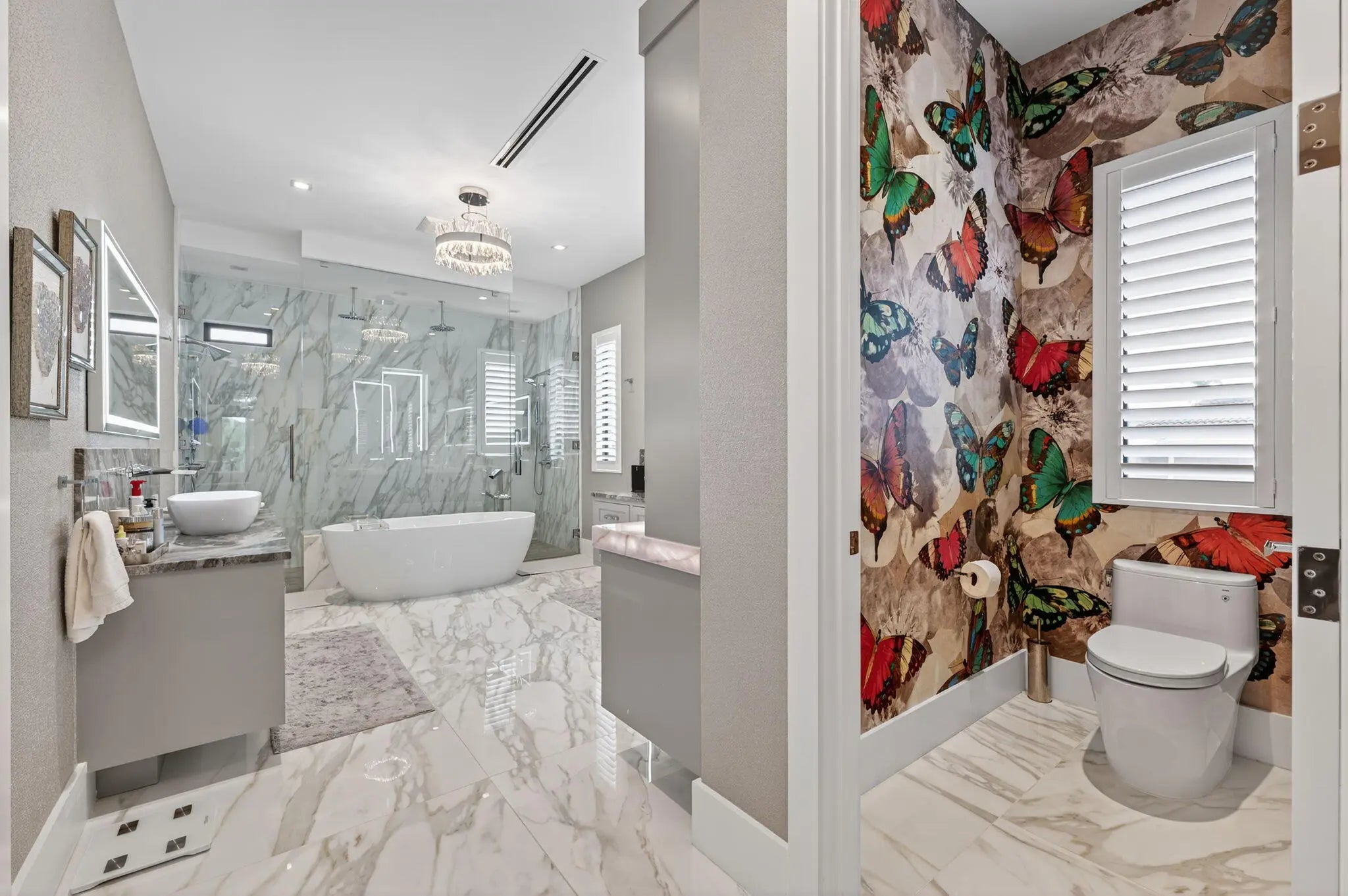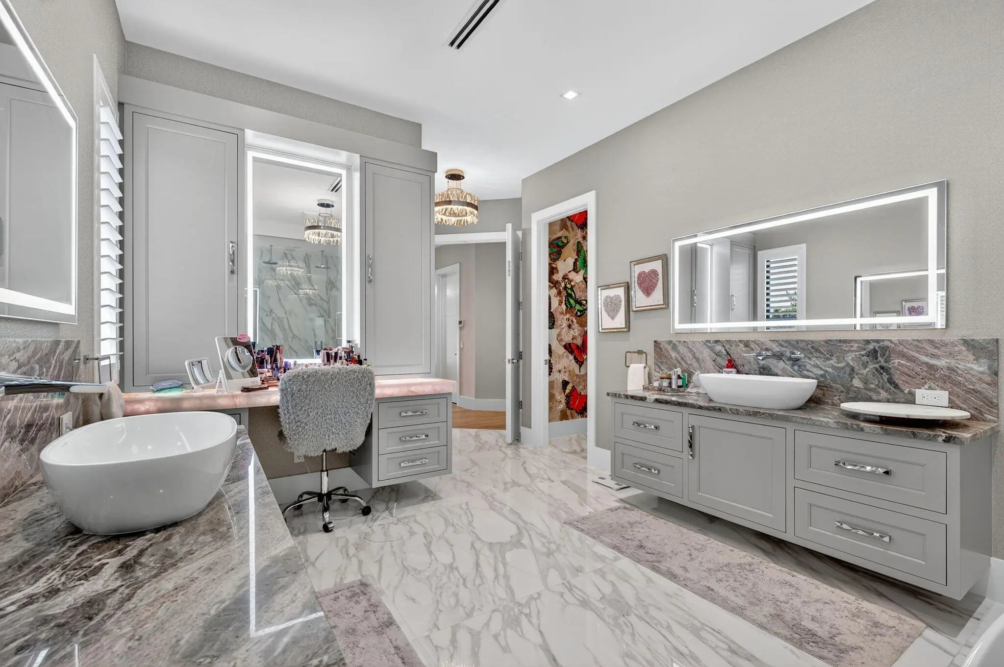 Closet Cabinets, Custom Mirror, French Door, Kitchen Island, Roman Tub, Walk-in Closet