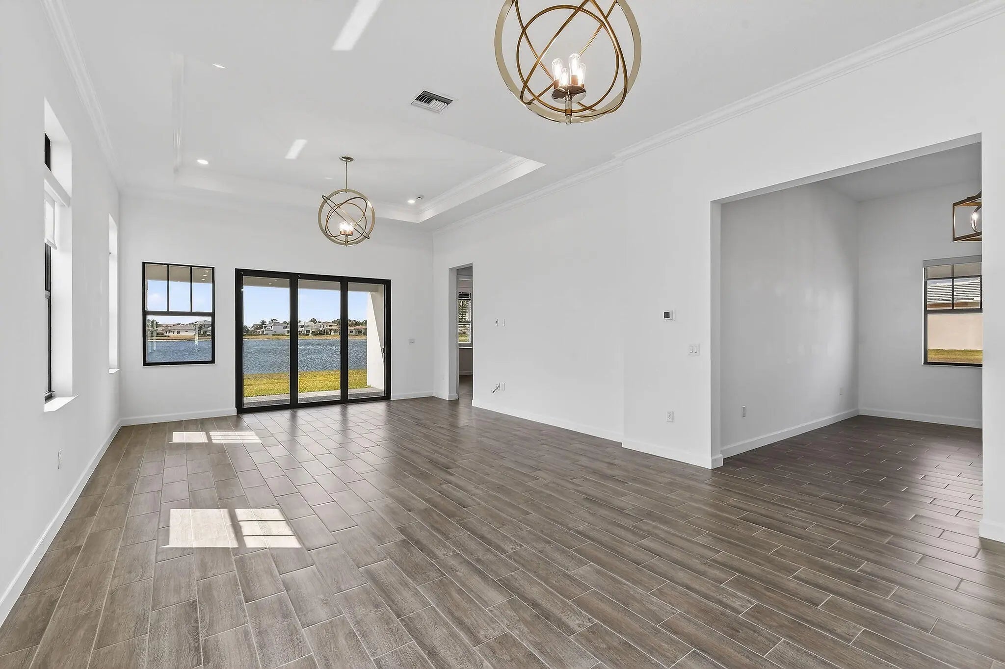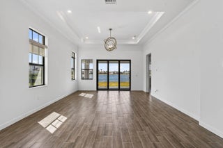 Nestled within a prestigious gated golf community, this beautifully upgraded Giulia model offers the perfect blend of luxury, comfort, and lifestyle. Overlooking a serene lake with breathtaking sunset views, the home features expansive glass sliders that open to a covered terrace, ideal for indoor-outdoor living and entertaining. Designed with an open and spacious floor plan, the residence includes 3 bedrooms, 2 full bathrooms, and a convenient half bath, along with a dedicated laundry room and double garage. A versatile flex space/den provides the ideal setting for a home office or additional living area. Thoughtfully enhanced with $39,000 in upgrades plus an additional $15,000 in custom window treatments and designer lighting, this home is truly move-in ready.
