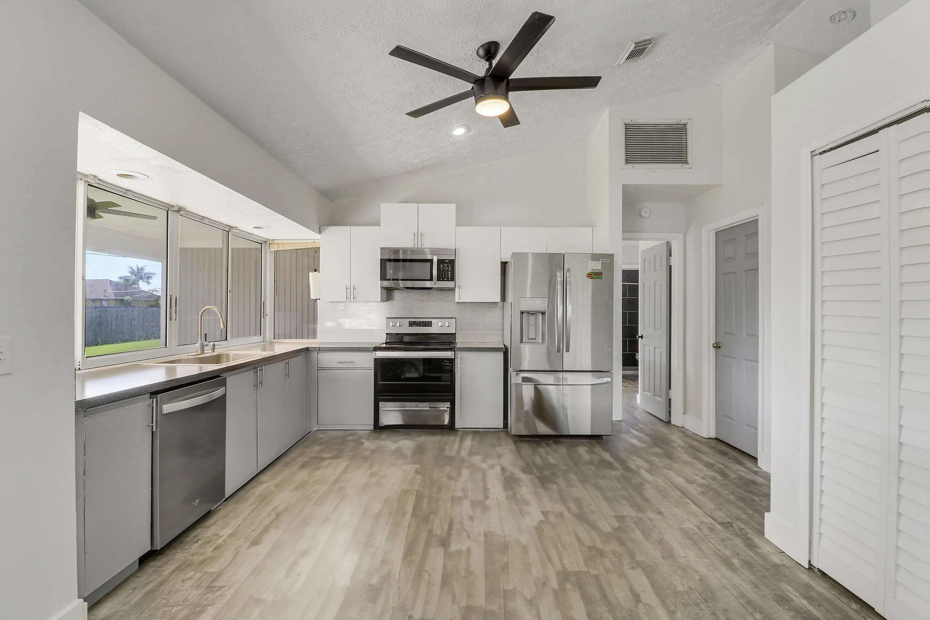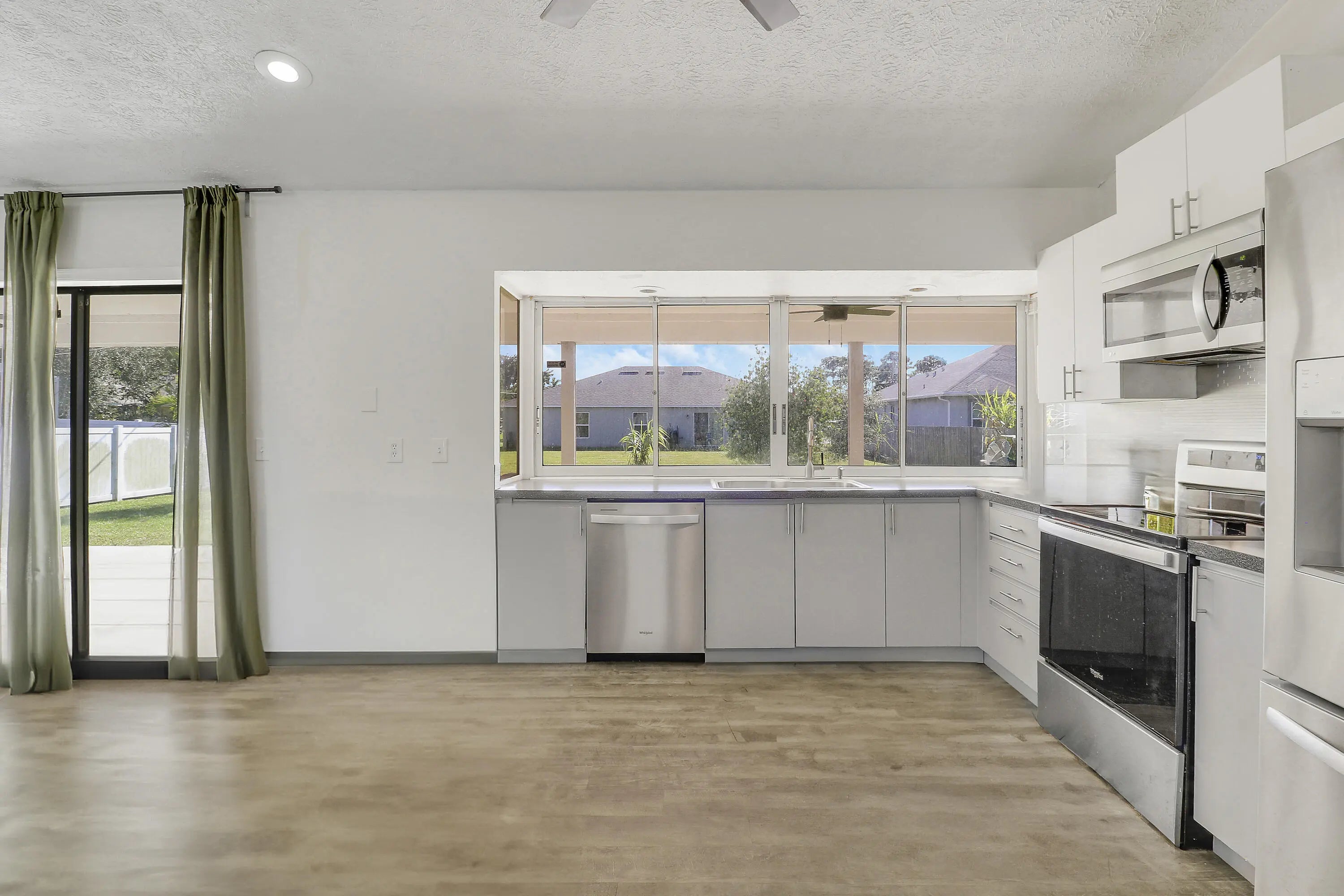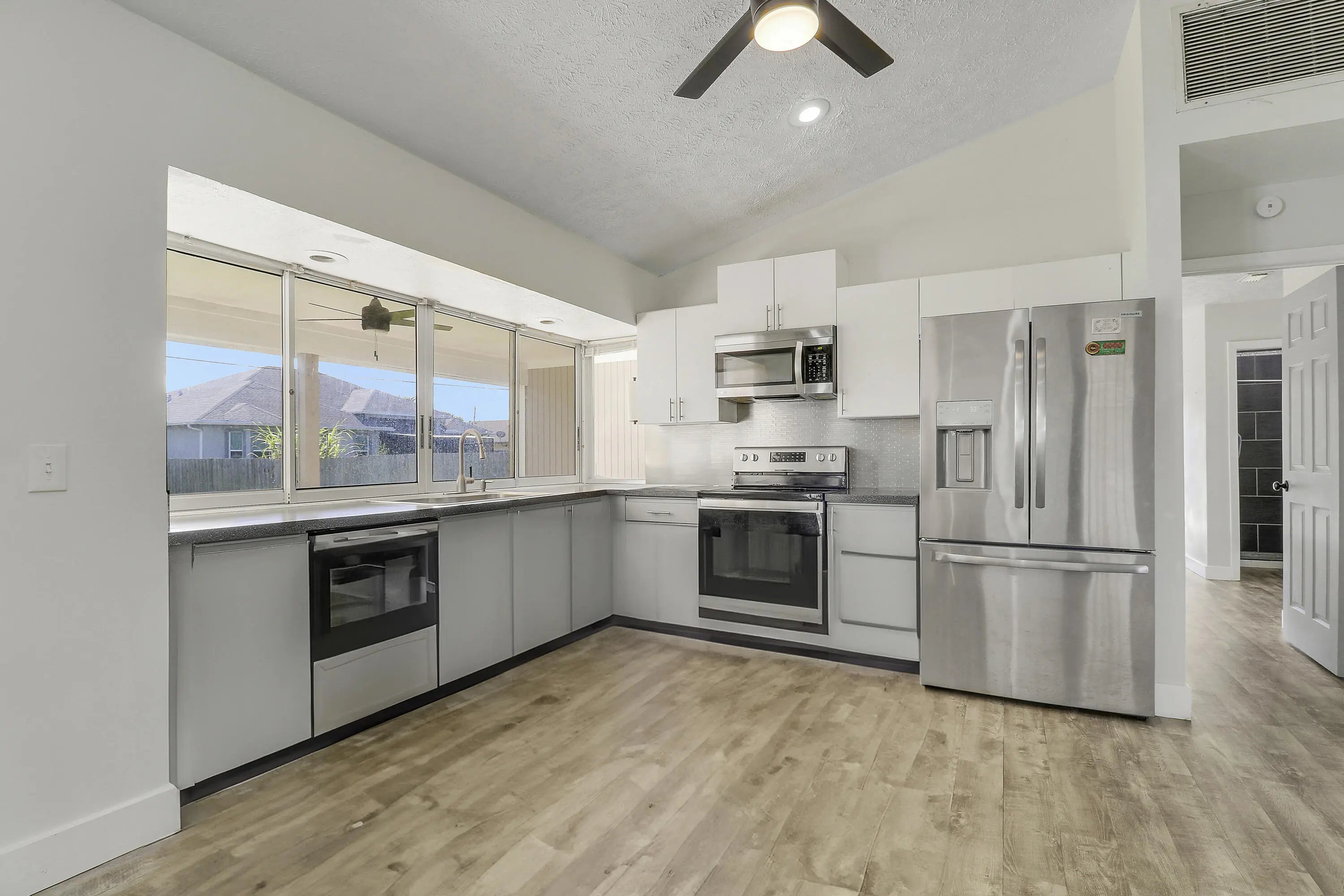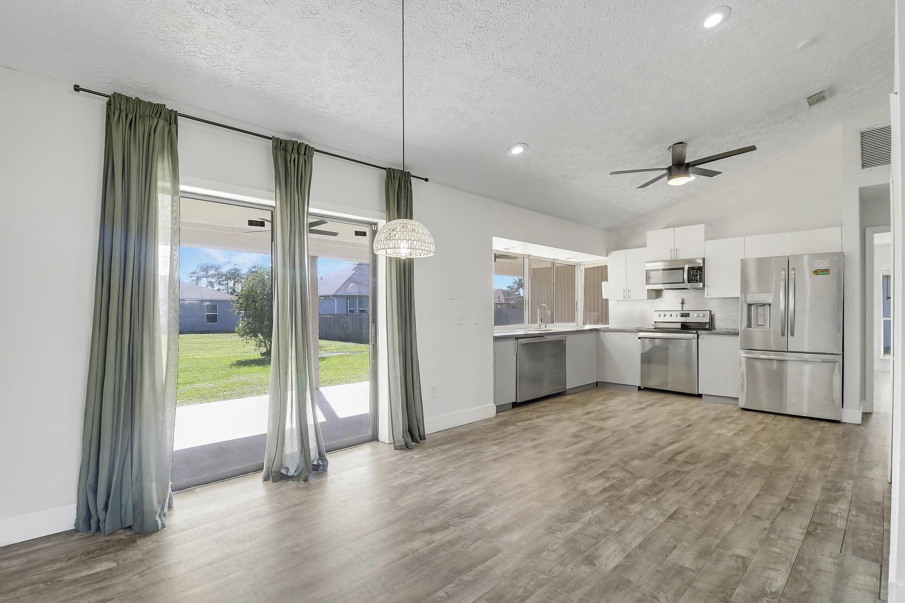 This is a rare chance to own a beautifully updated, Magnolia-inspired 3-bedroom, 2-bathroom home with a 2-car garage at an incredible value! This property is a short sale listing--act fast as it's priced to move. Key Features & Modern Upgrades:Bright Living Area: Features a gorgeous cathedral ceiling and recessed lighting over luxury vinyl plank floors throughout, offering a crisp, neutral, and modern palette. Entertainer's Kitchen: The dining area seamlessly connects to the kitchen. The kitchen boasts new upper cabinet doors, and a gorgeous backsplash. Roof 2024. HVAC 2016, W/Heater 2023. Outdoor Living Dream: Enjoy the stunning indoor/outdoor flow with a pass-thru from the kitchen to the HUGE 51ft Covered Patio. The large backyard offers plenty of space for a future pool. V/Staged