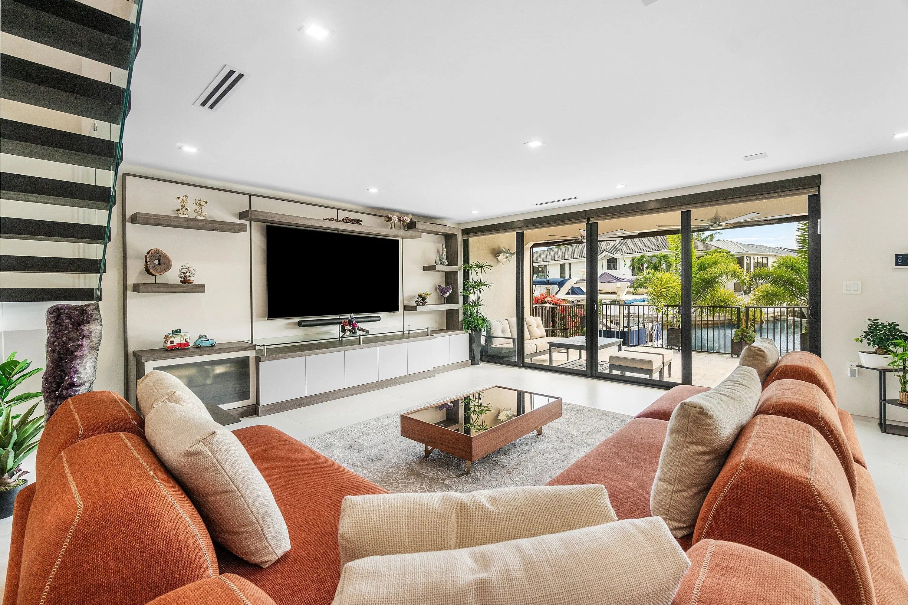 Introducing 5326 Boca Marina Circle North, a newly rebuilt, ultra-luxury waterfront residence showcasing a level of design, technology, and craftsmanship typically reserved for multi-million-dollar custom estates.With a private 43-foot dock, a brand-new 20,000-lb lift, and unobstructed access to the Atlantic Ocean, this property is a true boater's sanctuary. The residence unfolds with dramatic architectural walls, floating stairs, and oversized designer porcelain flooring that elevates every room. A custom Azzuri kitchen anchors the modern open plan, complemented by bespoke closets, walk-in dressing spaces, designer lighting, and a private infrared sauna. Every detail has been curated for a seamless, elevated lifestyle: whole house generator, Sonos throughout (see Addendum for more!)