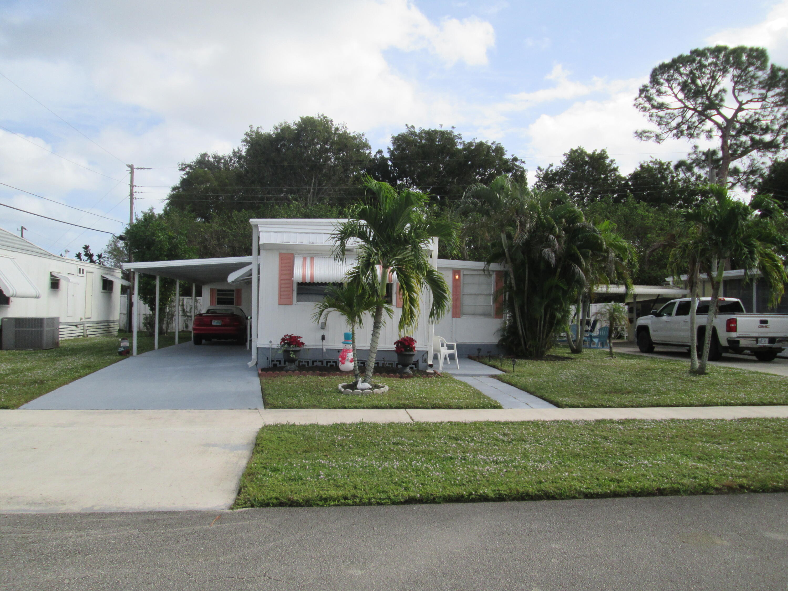 BEAUTIFUL 2 BEDROOM 2 FULL BATHROOM WITH A GREAT OPEN FLOOR PLAN. THIS HOME COMES FULLY FURNISHED. - YOU OWN THE LAND & HOA IS ONLY $120.00 A MONTH - SPLIT FLOOR PLAN WITH A LARGE OPEN LIVINGROOM THAT FLOWS RIGHT INTO THE LARGE OPEN KITCHEN, GREAT FOR ENTERTAINING. THERE IS ALSO A 2ND ENCLOSED PATIO 10 X 10 OUTSIDE YOU HAVE A LOCKED SHED THAT HAS A FULL-SIZE WASHER/DRYER AND WORK AREA WITH PLENTY OF SPACE FOR STORAGE. OUTSIDE IS NICELY LANDSCAPED WITH A LONG DRIVEWAY & COVERED PARKNG. ALSO OUTSIDE THERE IS A NICE OPEN PATIO, GREAT FOR GRILLING OR JUST RELAX & ENJOY YOUR SLICE OF SOUTH FLORIDA. THIS COMMUNITY OFFERS A NICE CLUBHOUSE WITH A POOL, SHUFFLEBOARD, LIBRARY & PICNIC AREA. CLOSE TO GREAT DINING, & SHOPPING. JUST MINUTES FROM THE MALL & I-95 & THE TURNPIKE.