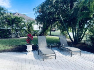 Bright & beautifully furnished rental! Leaded glass front doors open into this one-story home with tranquil golf course views--light & open offering 3 bedrooms & 3 baths featuring volume ceilings;4'x4' porcelain tile floors in the living areas,laminate & bamboo floors in the bedrooms;a fabulous gourmet island kitchen with custom high-gloss & wood veneer cabinets,quartzite counters with waterfall edge & stainless steel appliances;spacious Master Suite with custom-configured walk-in closet; remodeled secondary bathrooms; custom blinds & window treatments & more! The large pie-shaped lot offers an open patio with a pool & a spacious grassy area. New front & rear landscaping.Golf cart available for tenant use with deposit & maintenance. Furnished/turnkey available March 1- November 30, 2026.