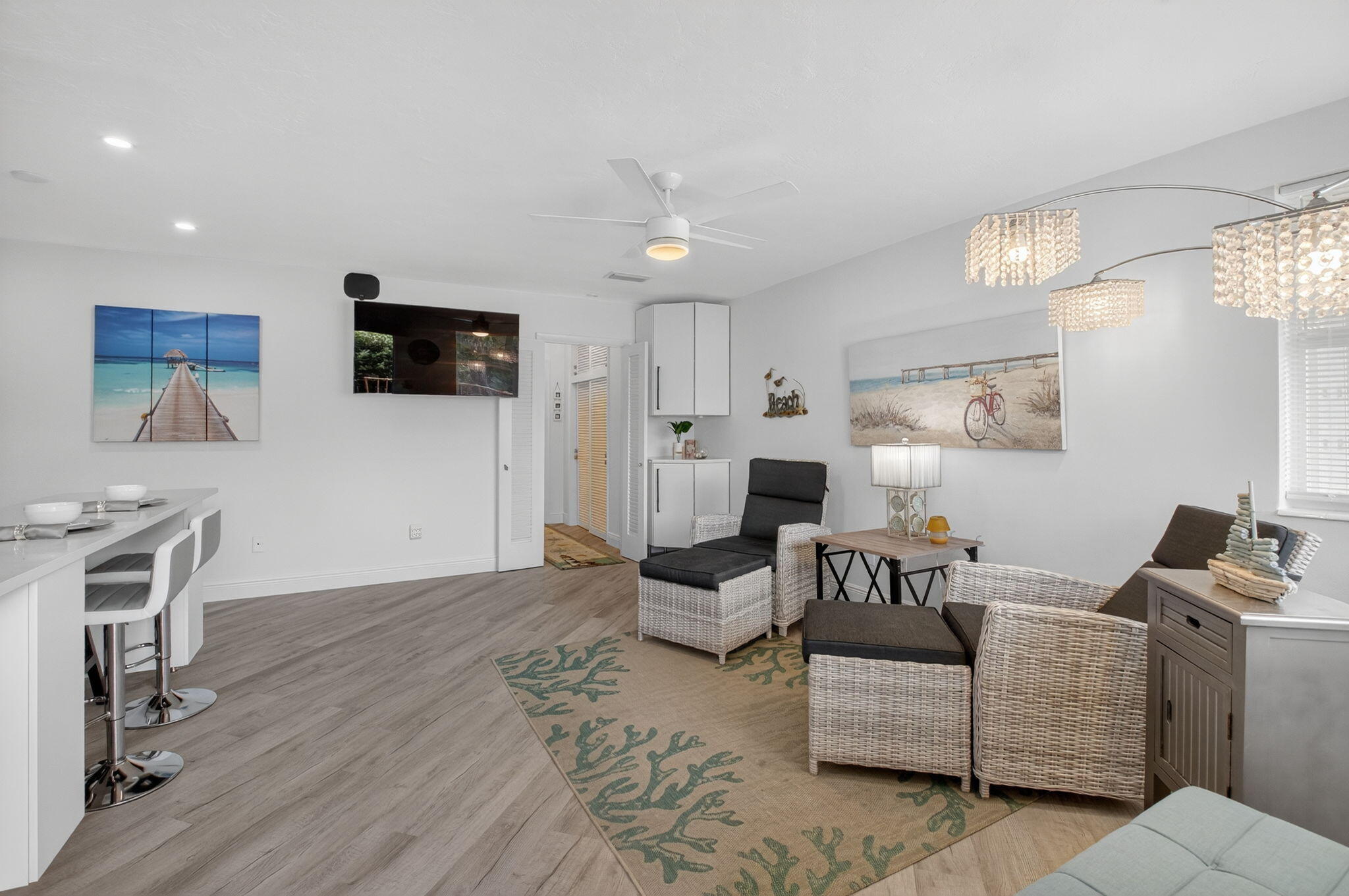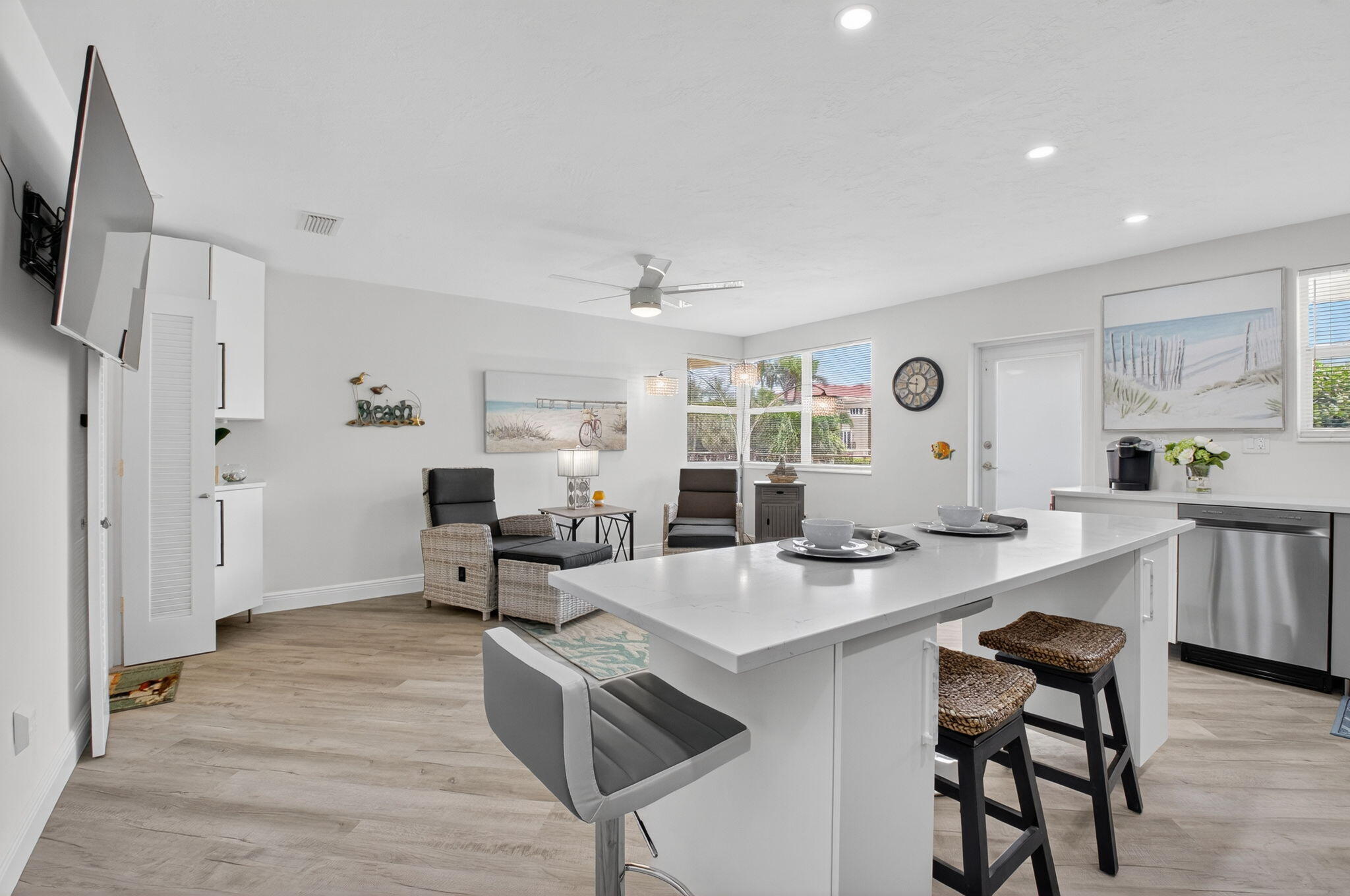 LOCATION, LOCATION, LOCATION ! UNBEATABLE SPOT IN BOCA ACROSS THE STREET FROM THE OCEAN, WITH PRIVATE BEACH ACCESS ALONGSIDE LUXURIA. SHORT DISTANCE TO DEERFIELD BEACH PIER & RESTAURANTS. OSCEOLA ARMS IS A BOUTIQUE BUILDING OF ONLY 12 UNITS & HAS LOW HOA FEES. THIS SECOND FLOOR UNIT HAS AN UNBELIEVABLY, SPACIOUS FLOOR PLAN WITH OPEN KITCHEN/LIVING ROOM & AN EXTRA-LARGE BEDROOM WITH DOUBLE CLOSETS. FRESHLY RENOVATED UNIT WITH NEW KITCHEN CABINETS, QUARTZ COUNTERS, CENTER ISLAND, RECESSED LIGHTING, NEW BATHROOM, TILE SHOWER, NEW ELEC PANEL, PLANK FLOORING THROUGHOUT, IMPACT WINDOWS & DOORS, AND SCREENED PORCH & HVAC. THIS PARTIALLY FURNISHED BEACH OASIS IS FULLY EQUIPPED WITH KITCHEN, POTS, PANS, DISHES, BEDDING, TOWELS, & LINENS. BRING YOUR BATHING SUIT!CONVENIENTLY LOCATED, EXPERIENCE FIRST HAND THE EXQUISITE RESTAURANTS AND BEACH SHOPS IN DEERFIELD BEACH. THE DEERFIELD BEACH & PIER IS A POPULAR SPOT TO FISH, PLAY VOLLEYBALL, SURF ALONG THE COAST, RELAX ON THE BEACHES, AND WATCH THE SUNRISE. CALL TO TOUR YOUR NEXT HOME!