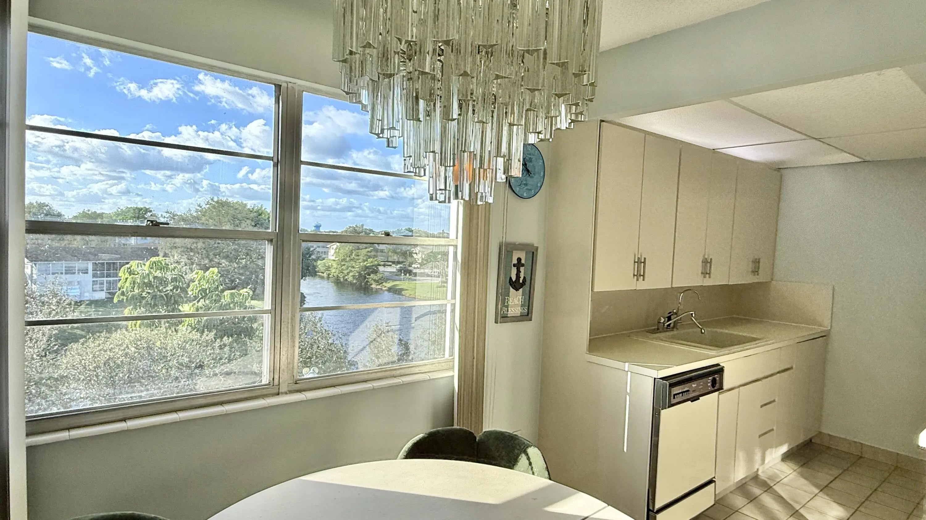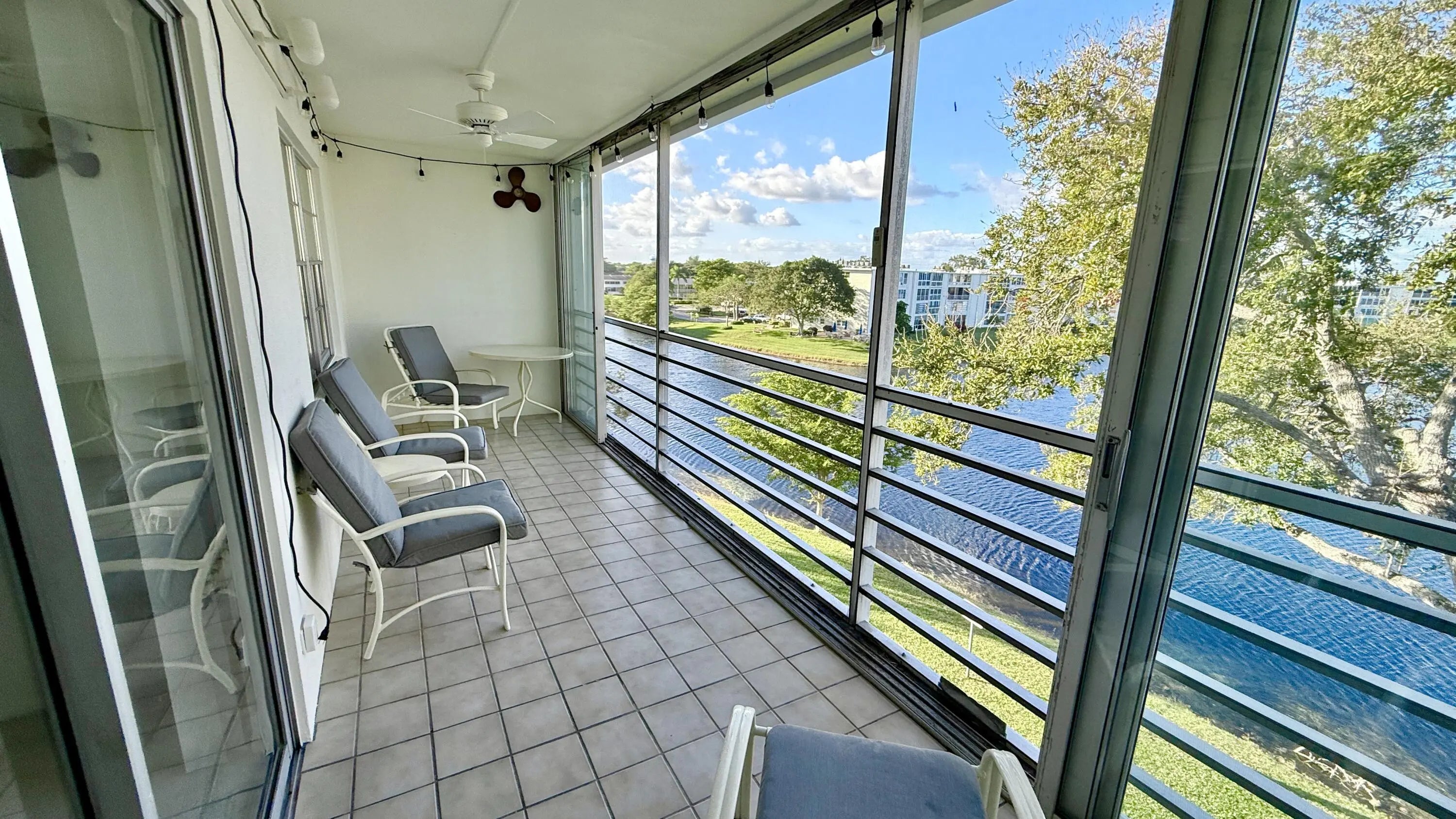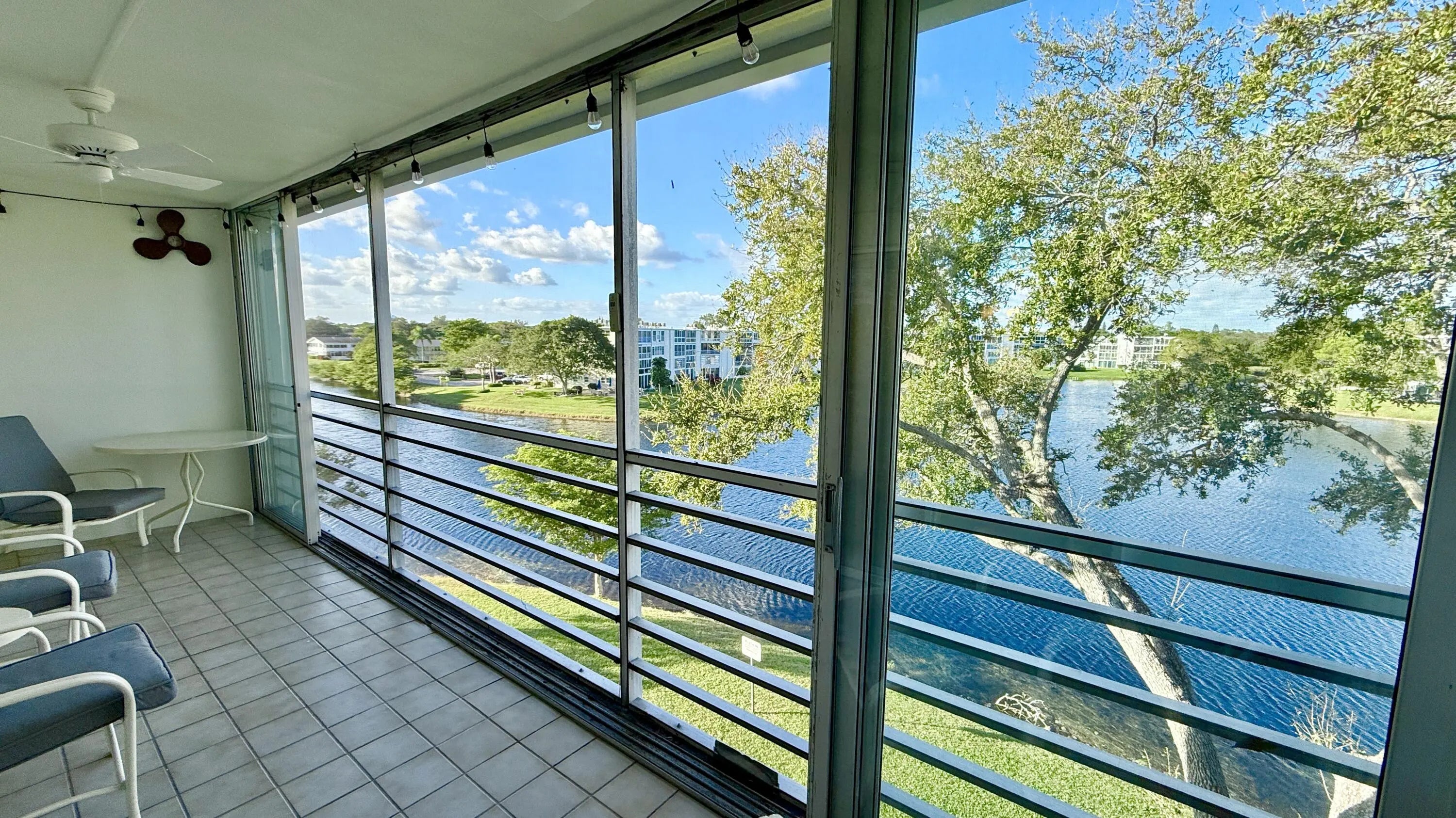 Spectacular LAKE VIEWS from every window & enclosed Patio. CORNER 2 Bedroom, 1.5 Bath 860 SF. ROOF Replaced 2025. LOW MONTHLY HOA FEE! Replaced AC, Smart Thermostat Ecobee & Garbage Disposal 2025. Hot Water Heater 5 years. Kitchen has Water Filtration. Freshly PAINTED 2025 walls & ceilings. Patio with tile flooring & sliding doors for protection. Come see what this condo has to offer. It is ready for you to make it your Own. The main Clubhouse has Indoor & Outdoor Pool, Restaurant, 1600 Seat Theater, Clubs, Classes, Billiards, Tennis, Pickleball, Volleyball, Ping Pong, Bocce Board, ShuffleBoard, Fitness Center, Hiking Trails, Putting Green, Bike Trails & more. Close to Beaches, Entertainment, Dining, Shopping. Association claims 55+ community. Approval required