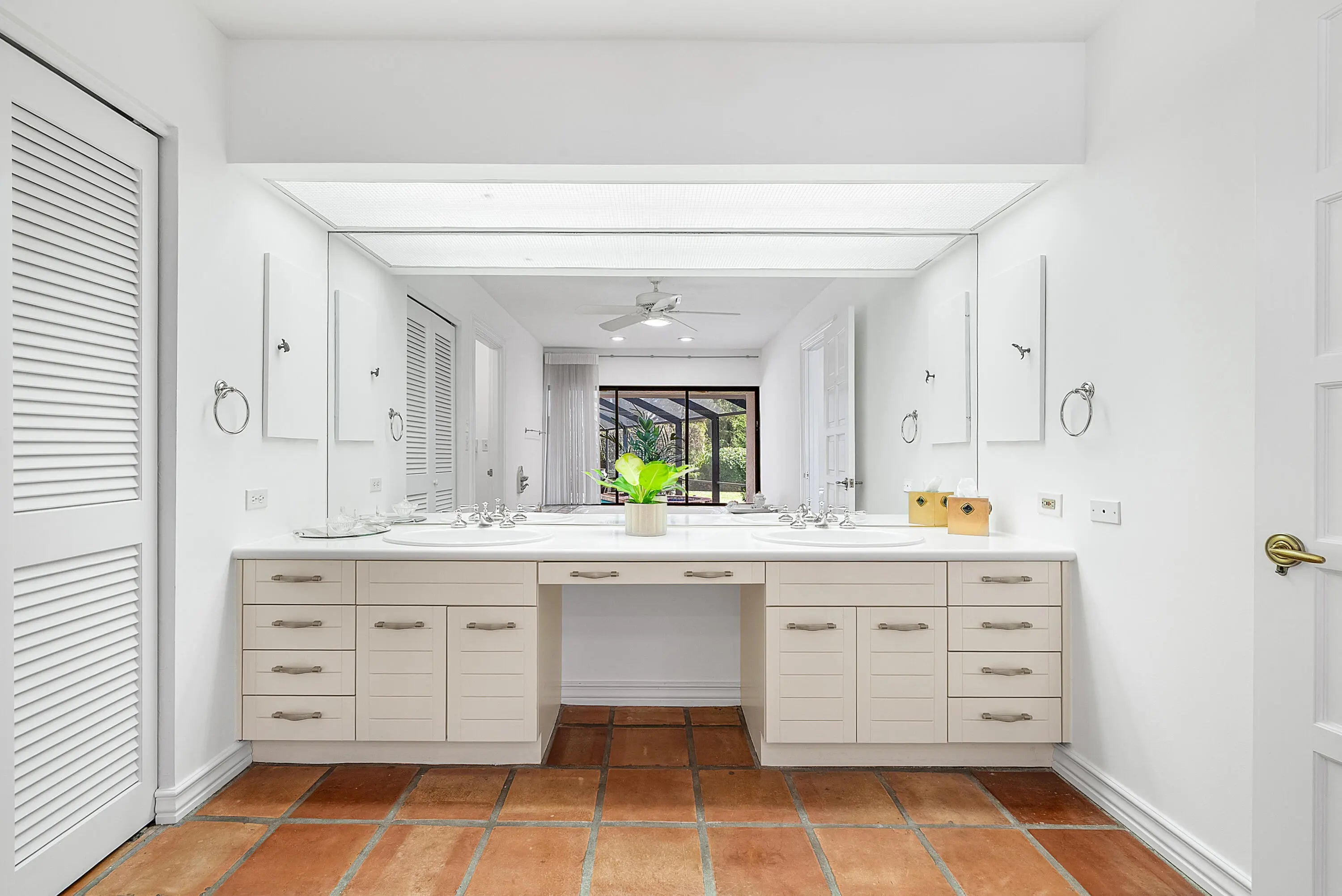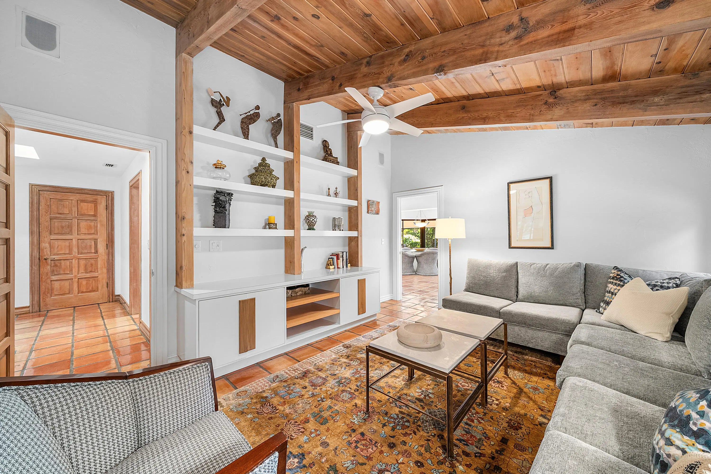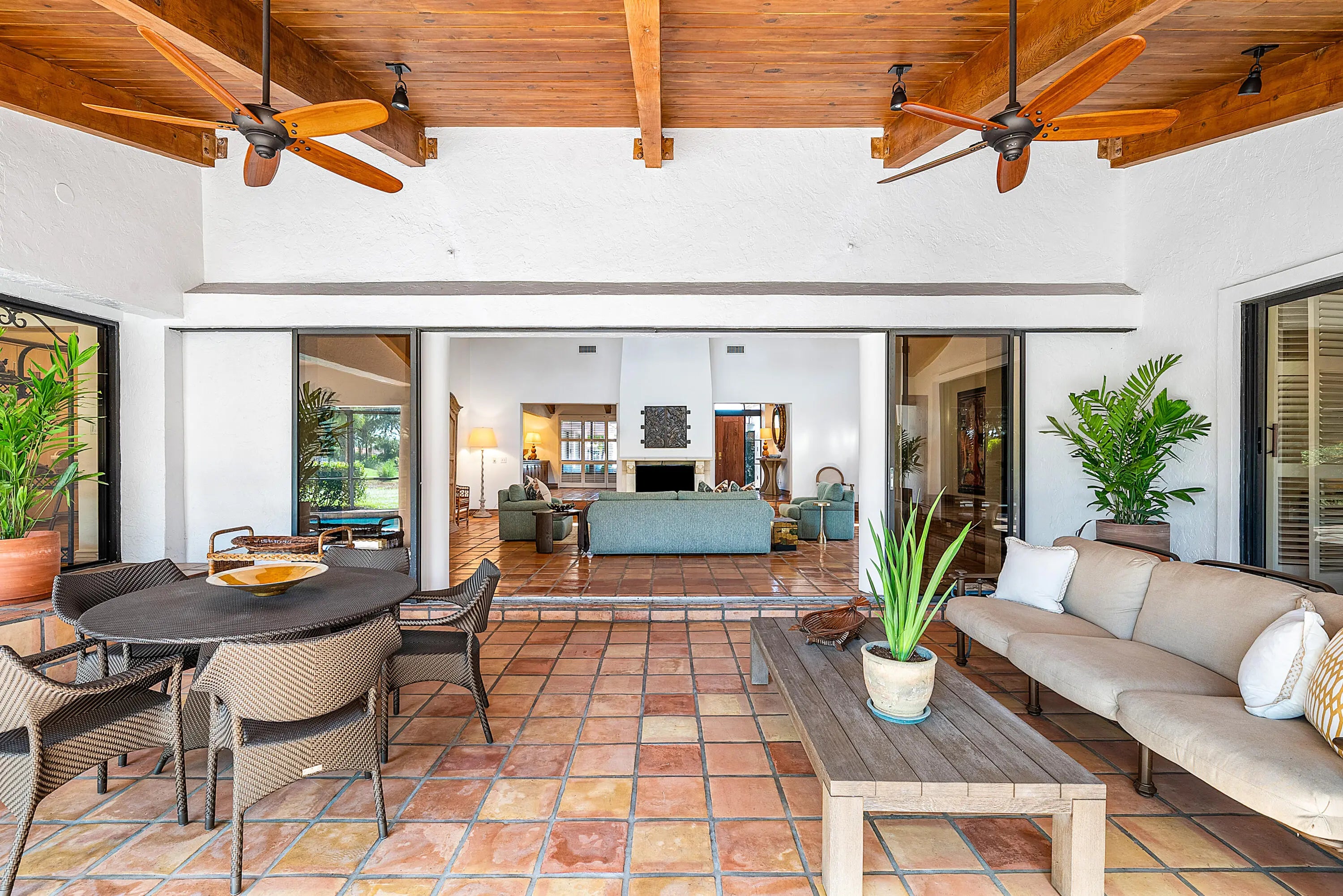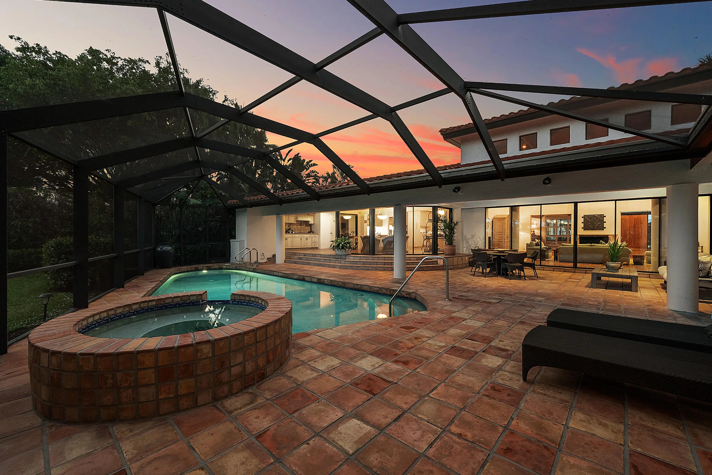 WOW! A truly one-of-a-kind California-style estate perfectly positioned on one of Atlantis' premier .44-acre lots, is now ready for its new proud owner. Open into your extraordinary great room with voluminous, brilliant exposed wood ceilings and incredible indoor-outdoor living with two entertainment spaces! An expansive circular driveway leads to an oversized two-car garage, setting the tone for the scale and presence of this home.Great master retreat with total access to all outdoor living. Sitting area / office nook, built-in designer wardrobe and two walk-in closets while soaking up pool views and lush landscaping inside your built-in tub.Stunning kitchen remodel with all custom cabinetry and quartzite countertops, thoughtful built-ins, double ovens & recessed lighting