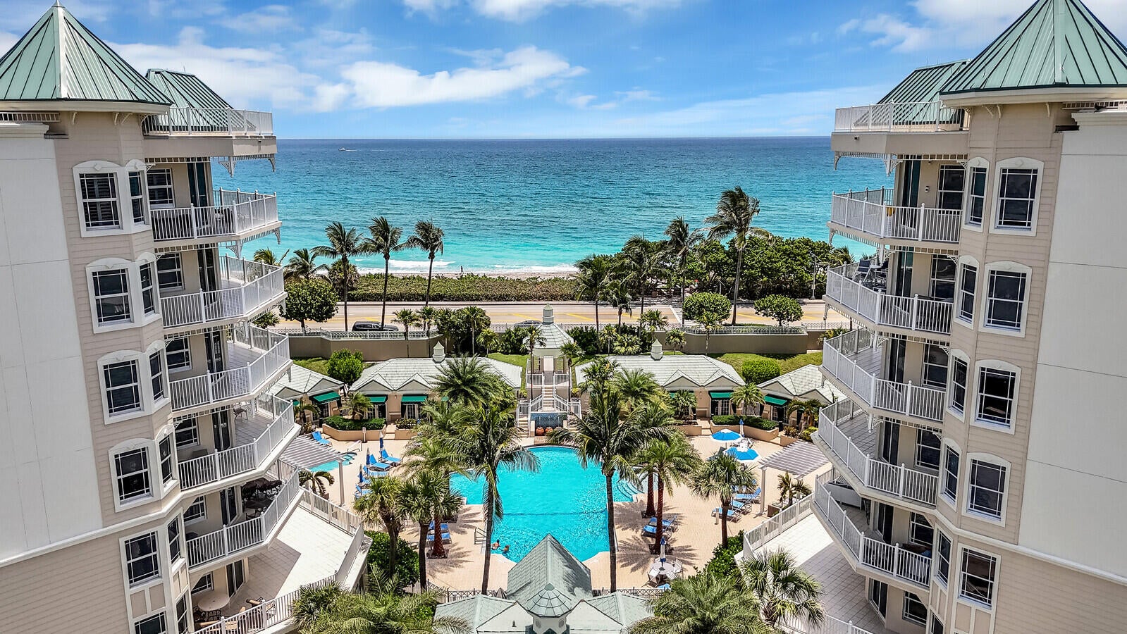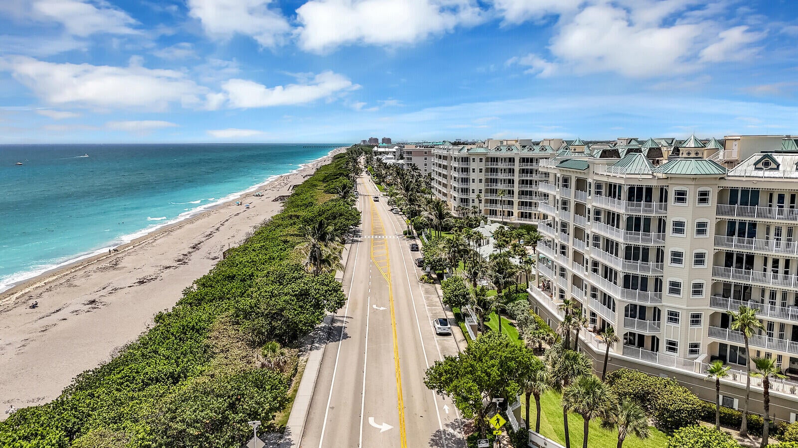 A RARE OCEAN GRANDE RESIDENCE WITH A DEEDED POOLSIDE CABANA!Experience elevated coastal living at 120 Ocean Grande Boulevard, Residence 302, a beautifully maintained condominium just shy of 2,500 square feet, located directly across from the Atlantic Ocean in one of Jupiter's most prestigious gated resort-style communities.This spacious residence offers 2 bedrooms, 2.5 bathrooms, and an oversized den, providing exceptional flexibility for a home office, media room, or additional living space. The home has been freshly painted and features tile flooring throughout, creating a light, bright, and move-in-ready interior.A large balcony connects the main living area and both bedrooms, delivering seamless indoor-outdoor living with ocean views from every primary space, perfect forentertaining or enjoying quiet coastal mornings. Each walk-in closet has been enhanced with brand-new California custom cabinetry, offering elevated design and exceptional organization. What truly distinguishes this offering is the deeded poolside cabana, one of only 16 in a community of 138 residences. Deeded separately, this 120 square foot, private cabana features a den and kitchen area with a refrigerator, microwave and tv on the wall for entertainment. Also featuring a full bathroom with a large shower to rinse off after a day at the beach. All providing an exclusive retreat just steps from the resort-style pool, ideal for relaxing, entertaining, or convenient beach and poolside living. Opportunities to own a residence with a cabana in Ocean Grande are exceptionally rare and represent a meaningful lifestyle and long-term value advantage. Ocean Grande residents enjoy an exceptional amenity package including a resort-style pool and hot tub, two fully equipped fitness centers, pickleball and tennis courts, and a large conference and club room overlooking the pool and spa, ideal for meetings, gatherings, or remote work. Additional features include two assigned parking spaces in a temperature-controlled garage, pet-friendly policies including large dogs, and beautifully maintained grounds with on-site management and security. Ocean Grande is renowned for its impeccable maintenance, luxury amenities, and premier location close to Jupiter's beaches, dining, and shopping. A rare opportunity to own a spacious coastal residence paired with one of the community's most coveted and limited amenities.