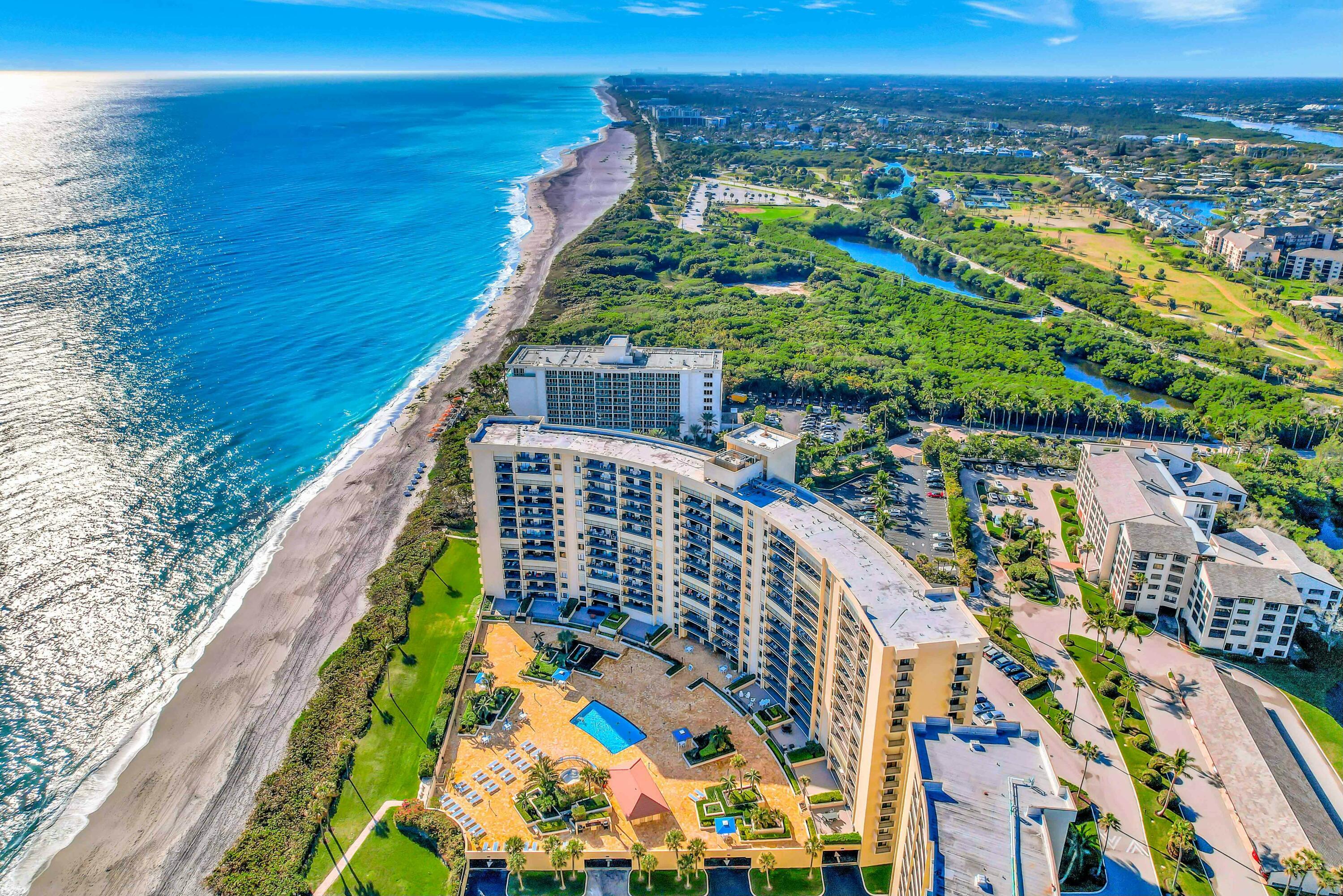 This must-see oceanfront corner residence sits directly on the sand in the highly desirable Ocean Trail community. The beautifully updated 2-bedroom, 2-bath condo offers 1,270 square feet of move-in-ready living space, freshly painted and fully turnkey. Enjoy three private balconies showcasing sweeping, unobstructed views of the Atlantic Ocean, Jupiter Inlet, and the Juno Beach Pier--perfect for morning sunrises and refreshing ocean breezes.As an exceptional end unit, this condo provides both privacy and access to an impressive array of resort-style amenities, including two heated pools, tennis courts, spa, sauna, fitness center, community room, and exclusive private beach access.Ideally located just a short walk from Carlin Park, Dubois Park, and the Jupiter Inlet, this home places the best of Jupiter right at your doorstep. Experience premier coastal living at an exceptional value. Schedule your private showing today and make this beachfront retreat your own.