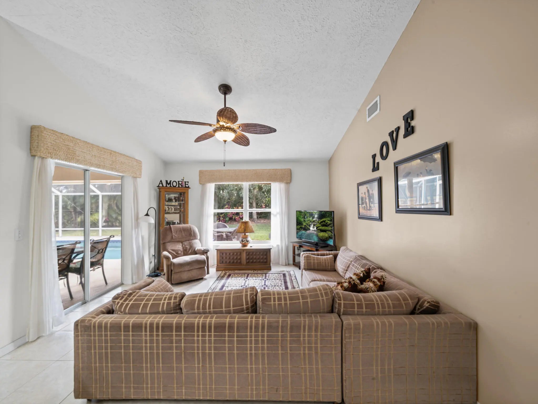 Welcome to an exceptional opportunity in highly desirable Heatherwood; A gated, family-oriented community with lush landscaping, sidewalks, playground, and one of the lowest HOA fees in Port St. Lucie. This stunning 3-bed, 2.5-bath split layout home delivers a resort-like backyard experience, highlighted by a large screened pool and shaded entry steps under roof -- an extremely rare feature that sells itself! Major systems are already replaced; in 2008 a barrel-tile roof, a 2024 HVAC, and meticulously maintained eliminate big future expenses. Oversized sliding glass doors from the primary suite, dining room, and family room bring the outdoors in; a design that's architecturally superior and perfect for entertaining. Vaulted ceilings, oversized windows and 3 sky-