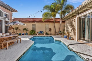 Rarely available courtyard pool home with a yard plus a guest house with a separate entrance in a highly desirable location. Perfectly designed for indoor-outdoor living. This 4BR/3.5BA gem features a sought-after layout with the primary suite on the main floor with a newly renovated spa-like bathroom with porcelain countertops and a separate guest house perfect for an office, studio, or long-term guests with a New vanity & quartz countertop 11-2025. The heart of the home is the pristine kitchen, boasting brand-new quartz countertops, cooktop, faucet, cabinet pulls 11-2025, New garbage disposal, New AC & Hot water Heater 2025,. All New Plumbing Pipes 2025. Santa Barbara offers the much desired vibrant country club lifestyle without the fees. Prime location! 2 minutes from the famed Town