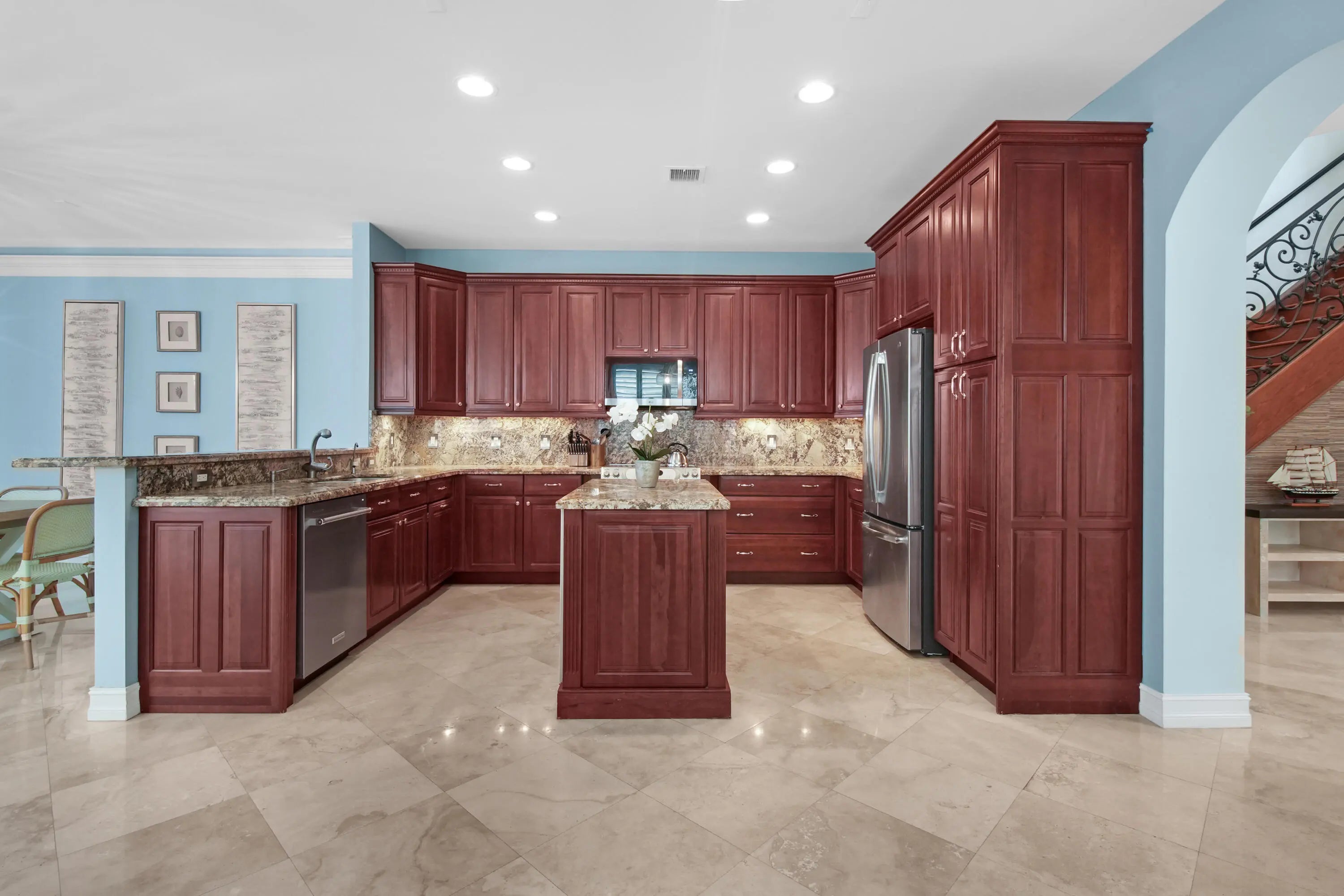 Luxury three-story townhome with a private 1,000 square foot rooftop terrace, elevator, private pool, no HOA, and no rental restrictions, located in Victoria Park just five minutes from Fort Lauderdale Beach. This residence offers 3,336 square feet of living space with 4 bedrooms and 4.5 bathrooms, marble flooring throughout, a grand entry with wood staircase, and elevator access to all levels. The home features all impact windows, a new roof, and a large two-car garage, providing both comfort and peace of mind. The chef's kitchen is designed with cherry wood cabinetry, granite countertops, a center island, built-in Haier wine refrigerator, filtered water system, and generous storage, flowing seamlessly into the main living and dining