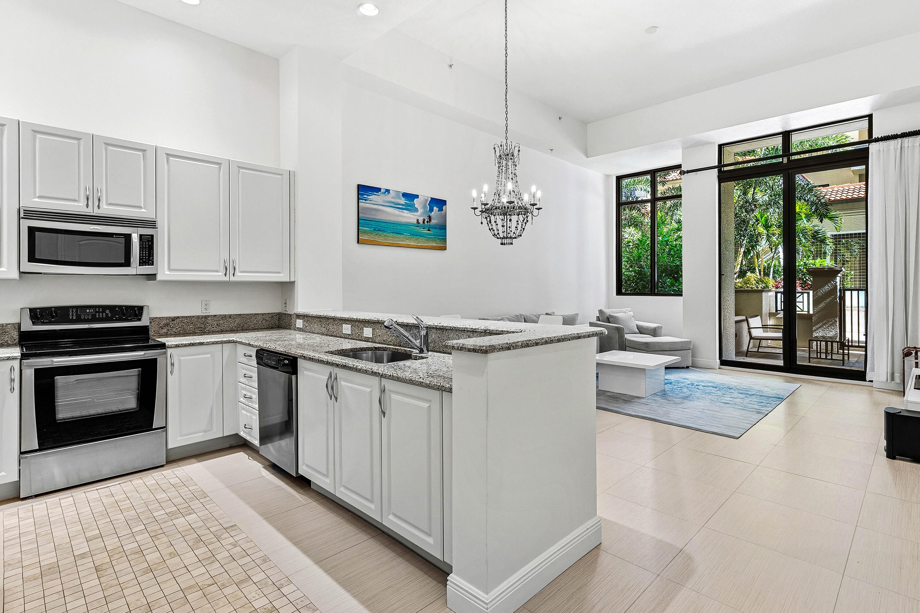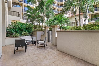 Introducing a truly unique gem in the heart of downtown West Palm Beach in Two-City Plaza. The centerpiece of this residence is its expansive private terrace, seamlessly blending indoor and outdoor living. With a serene ambiance and the perfect spot for relaxation or entertaining, this terrace is a true oasis within the city. Upon entering this rare furnished garden residence, you will be captivated by the soaring 14' ceilings, updated kitchen and flooring throughout this spacious home. The primary bedroom is a sanctuary of comfort and style, complete with an ensuite bathroom, dual closets and its own access to your private gated patio space. 1-car garage parking included. Amenities in this full-service building are endless; 24-hr security, concierge, roof top pool, hot tub, sauna, steamroom, fully renovated state of the art fitness center/gym, outdoor kitchen w/ BBQ area and all NEW Restoration Hardware furniture, outdoor & indoor movie theaters, club room, table tennis, lanai courtyard w/ water feature, renovated roof top dog park area, complimentary valet parking & exceptional staff. Centrally located in the heart of Downtown West Palm Beach, across from One Flagler offices, 7 minutes to PBIA airport, award winning restaurants and shopping, and walking to Worth Ave, Palm Beach.