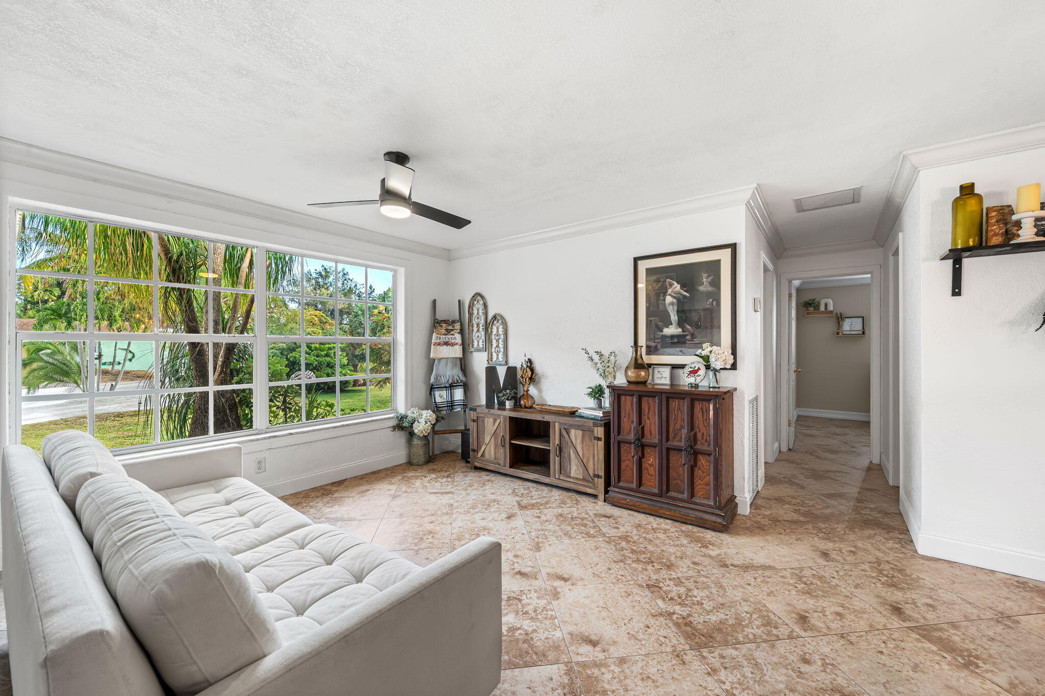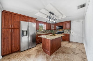 This 3-bedroom, 2-bath home sits on a spacious 10,000 sq ft lot and features a brand-new roof with no HOA or restrictions, making it ideal for contractors, business owners, or anyone needing space for large vehicles, trucks, boats, or a camper.The home offers a desirable split-bedroom floor plan. The primary suite includes a walk-in closet and an ensuite bath with a shower. Two guest bedrooms are located on the opposite side of the home and share a cabana-style bathroom.The kitchen features granite countertops, a pantry closet, a new oven/stove combo, and an island with additional storage. A large laundry room provides exceptional versatility with ample cabinetry, a utility sink, and a built-in desk--perfect for a home office, craft room, or mudroom.Enjoy outdoor living in the fenced backyard with a covered lanai, mature mango tree, and a detached shed equipped with electric and air-conditioning, ideal for a workshop, storage, or hobby space. Freshly painted interior and exterior. Conveniently located with easy access to Southern Blvd.