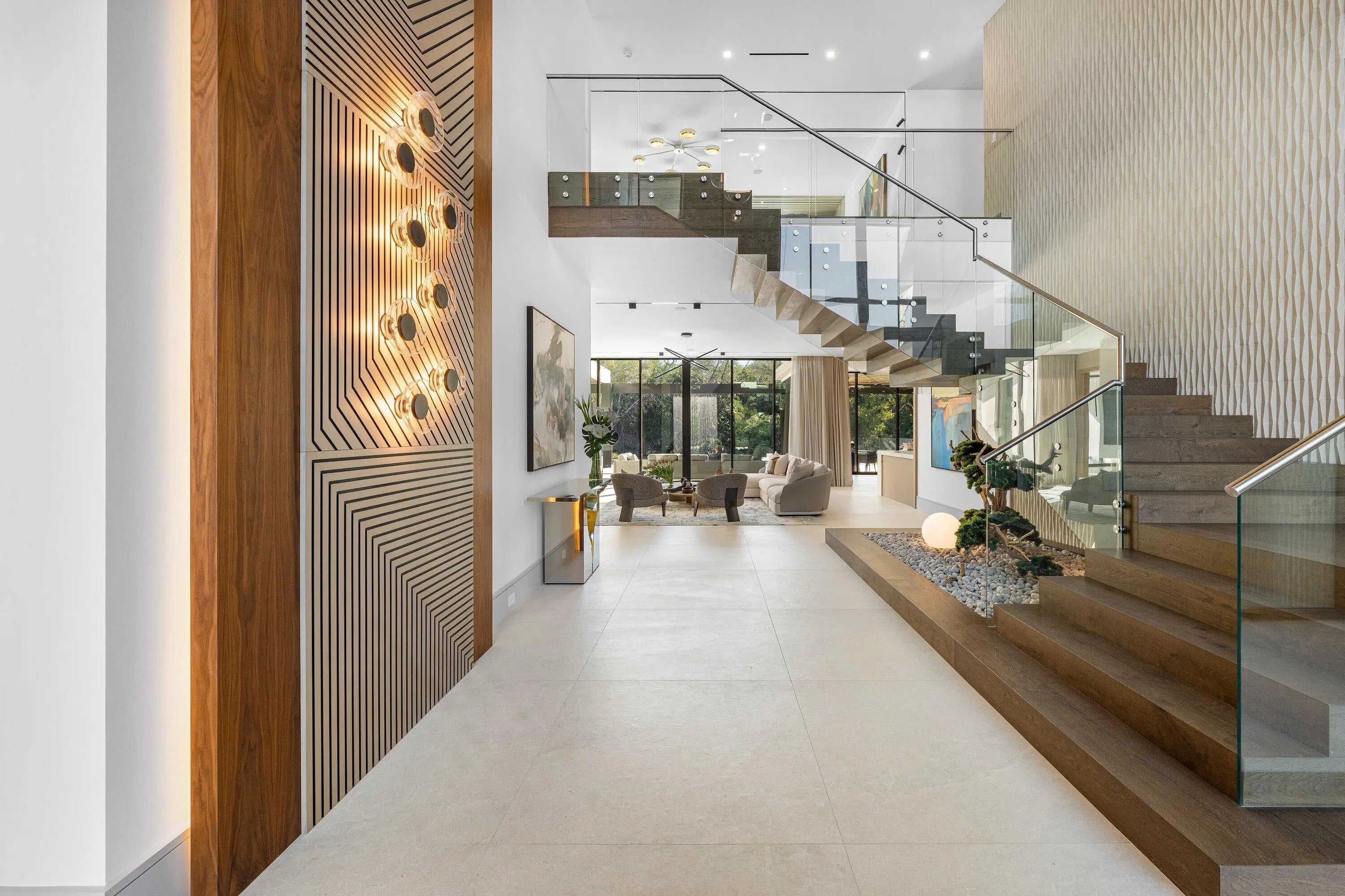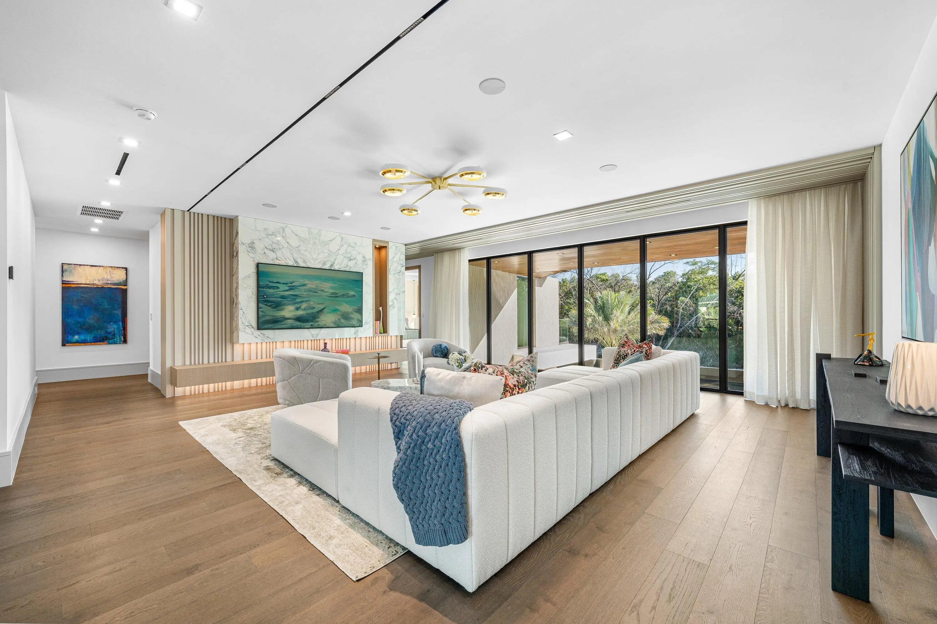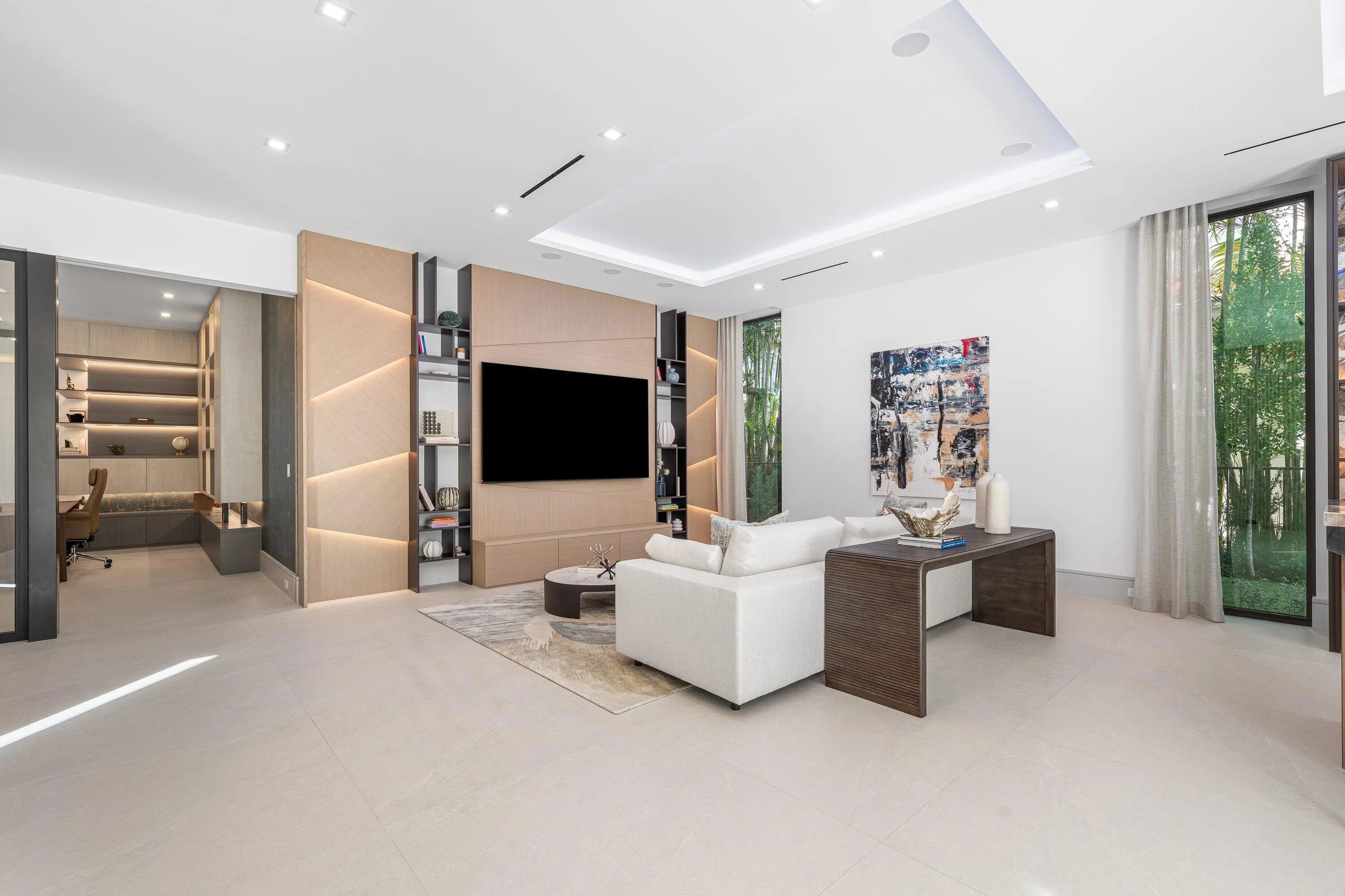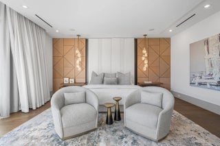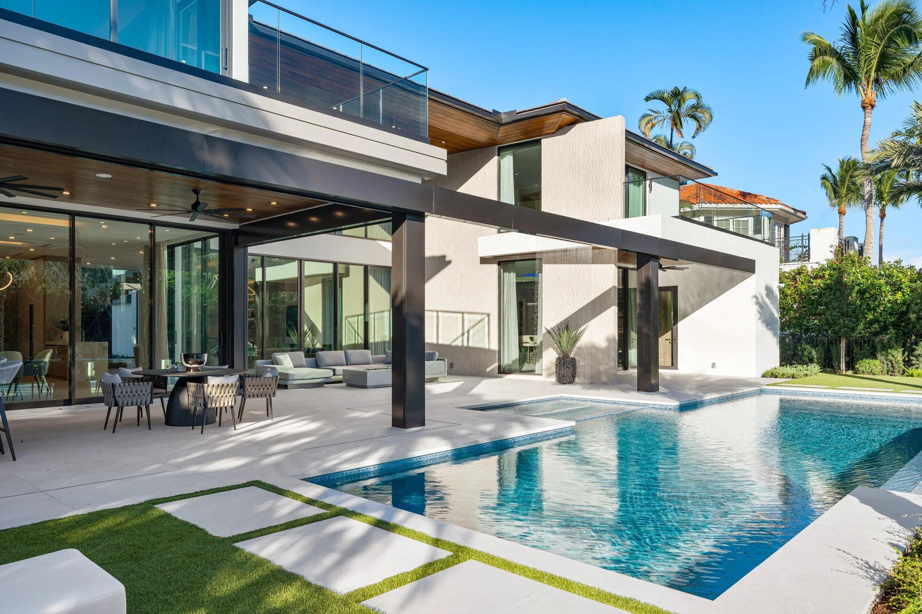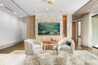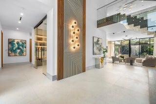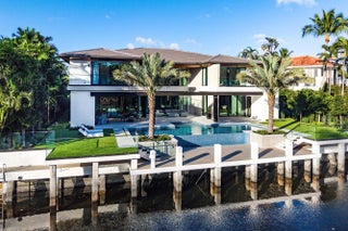 Set along 100 feet of pristine waterfront in Royal Palm Yacht & Country Club, this extraordinary residence is perfectly positioned across from the preserved natural sanctuary of Capone Island--an undeveloped mangrove island that provides enduring privacy, lush green vistas, and a rare sense of calm. The setting is remarkably serene, offering a waterfront perspective defined by nature rather than neighboring homes. Constructed by Albanese Builders and exquisitely designed and furnished by BE Designs, the home reflects a level of craftsmanship and intention seldom achieved. Spanning 8,993.70 square feet under air and 11,633.04 total square feet, the residence is introduced by soaring ceilings and a grand, wide staircase that immediately establishes architectural presence.