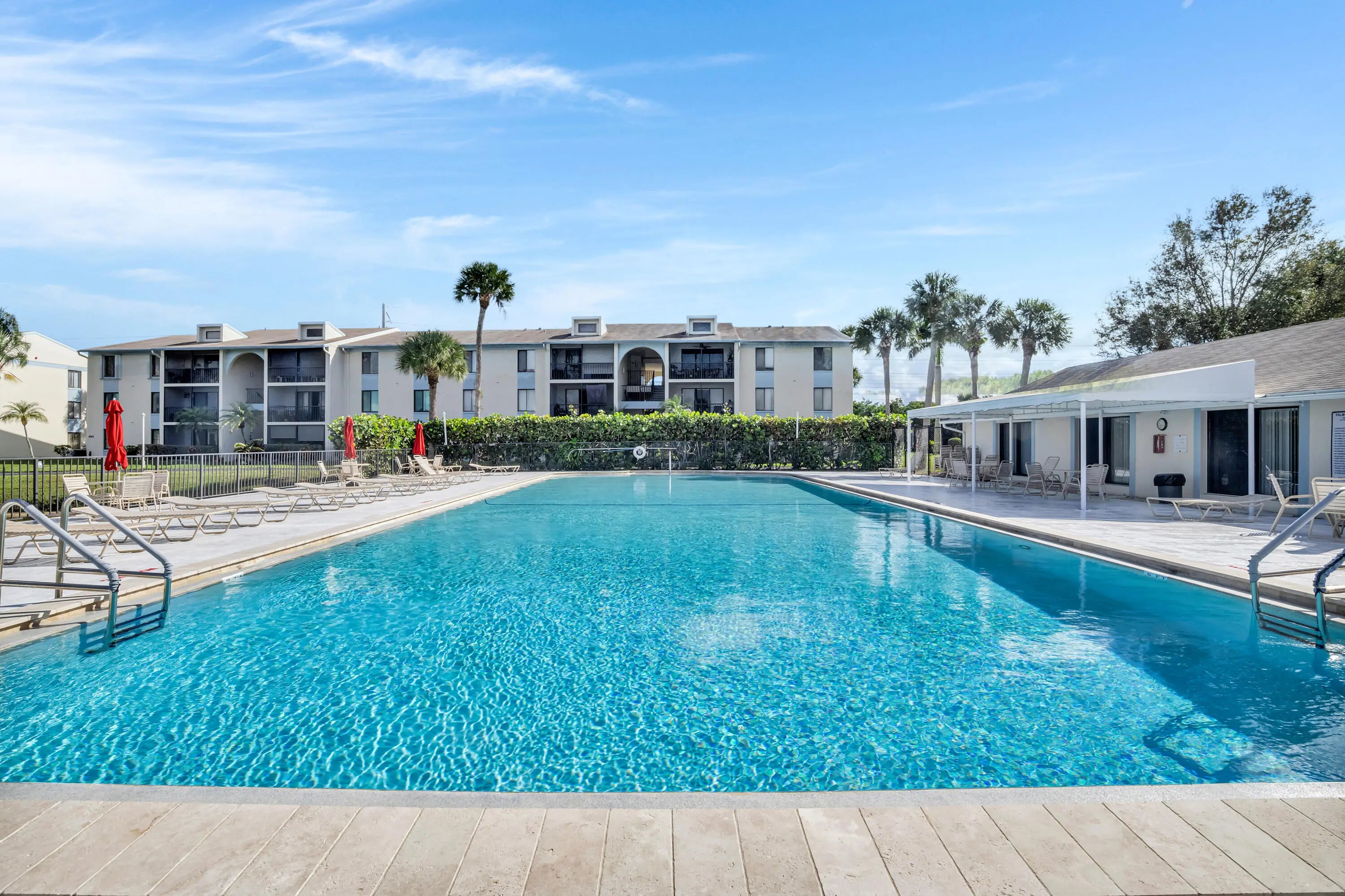 Welcome to beautifully maintained Palm Club Village! This rarely available 3-bedroom, 2-bathroom condominium offers 1,468 square feet of comfortable living space. The unit includes an attic with a pull-down ladder, providing convenient additional storage. Only 4 units of this size in Palm Club Village I ! FULLY PAID assessment for community improvements including: new roof, gutters, waterproofing and fresh exterior paint. The residence has pride of ownership and includes 2024 water heater and 2013 AC. Resort style living including: clubhouse, heated pool, basketball, tennis courts, peaceful lake views and more. HOA fees include basic cable, water, sewer, lawn care and exterior maintenance. Palm Club also features 24 hour manned security. Financing requires min of 20%.