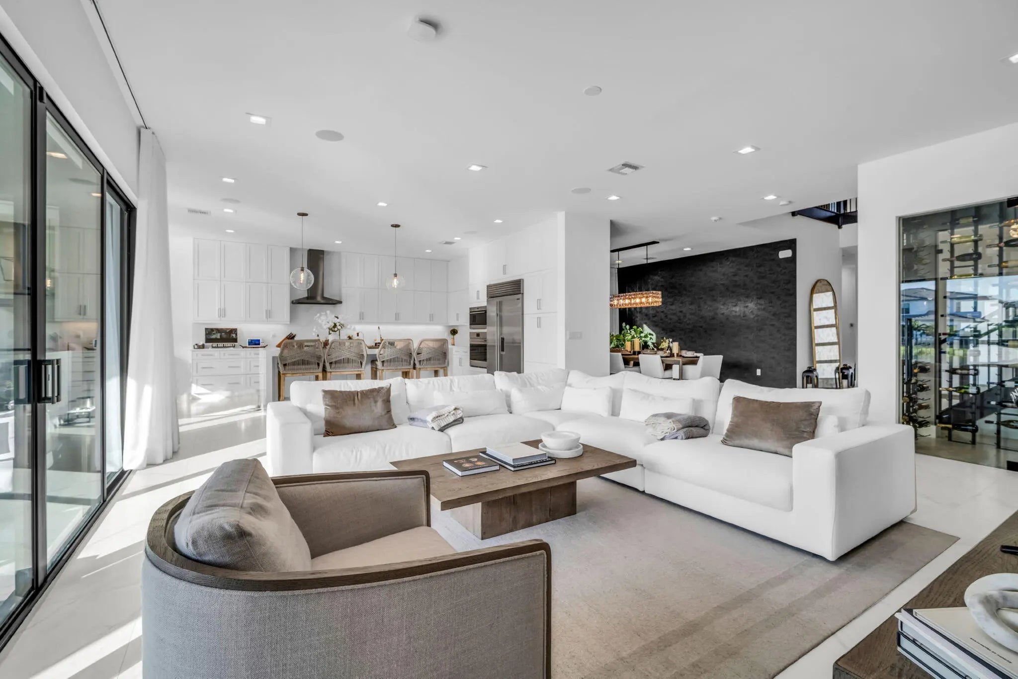 Discover a stunning 5 bedroom 8 bathroom luxury estate in Lotus This exceptional Maldives Premium residence approximately 5,200+ square feet under air with +/- 7,000 total square feet, including a 4-car garage. Ideally situated on a true lakefront lot, the home features western exposure with stunning sunsets, along with well over $700,000 in builder options and custom upgrades, the house is professionally landscaped in both the front and rear. The professionally designed interior includes 5 bedrooms, 6 full and 2 half bathrooms, a glass-enclosed office, and a dedicated home theatre. Finishes include soaring ceilings, large porcelain tile and hardwood flooring, custom closets throughout, designer wall coverings, custom drapery, and motorized window treatments. A stunning glass-enclosed win