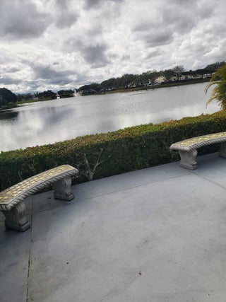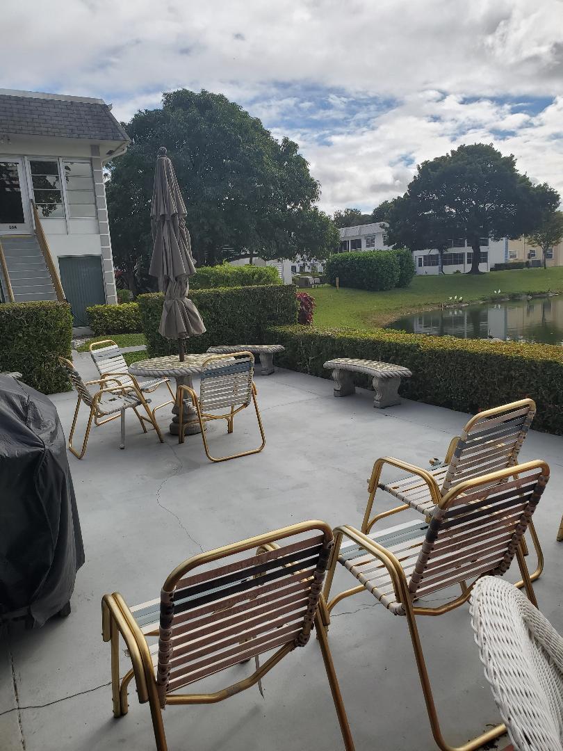 Great location just a short distance to the Community Center, Hastings Fitness Center, and pools. This spacious 740-square-foot one-bedroom residence features 1.5 baths and a bright, open living room with a generous, windowed dining area. Newer laminate flooring enhances the living space. The bedroom includes an en-suite full bath for added privacy and comfort. Additional highlights include an in-unit washer (dryer permitted) and a lovely enclosed balcony with partial lake views-perfect for relaxing or entertaining.Located in Century Village, a gated 55+ resort-style community offering multiple pools, tennis, pickleball, shuffleboard, fitness centers, a theater, and a wide variety of clubs and activities.Conveniently close to shopping, beaches, and PBI Airport