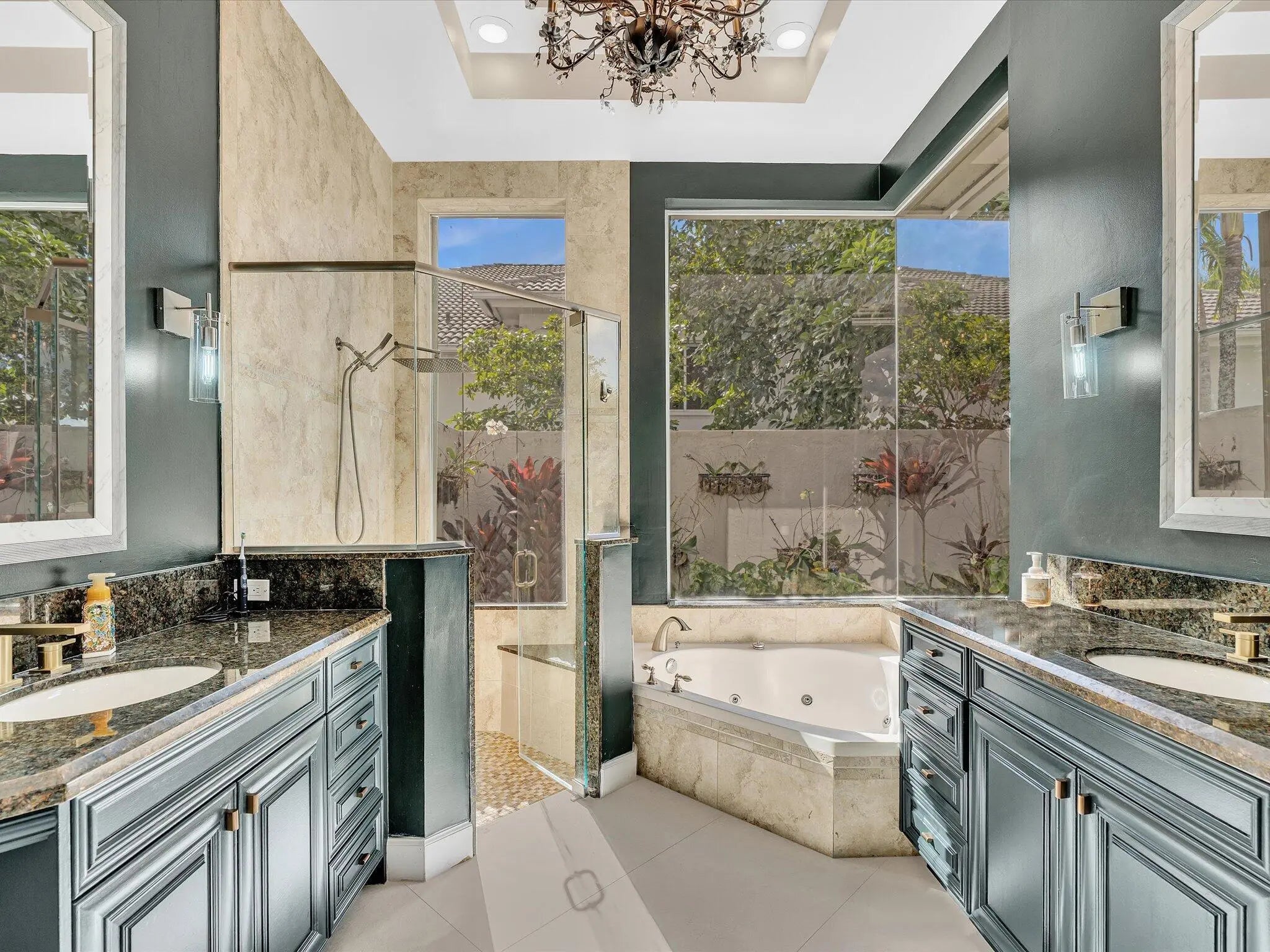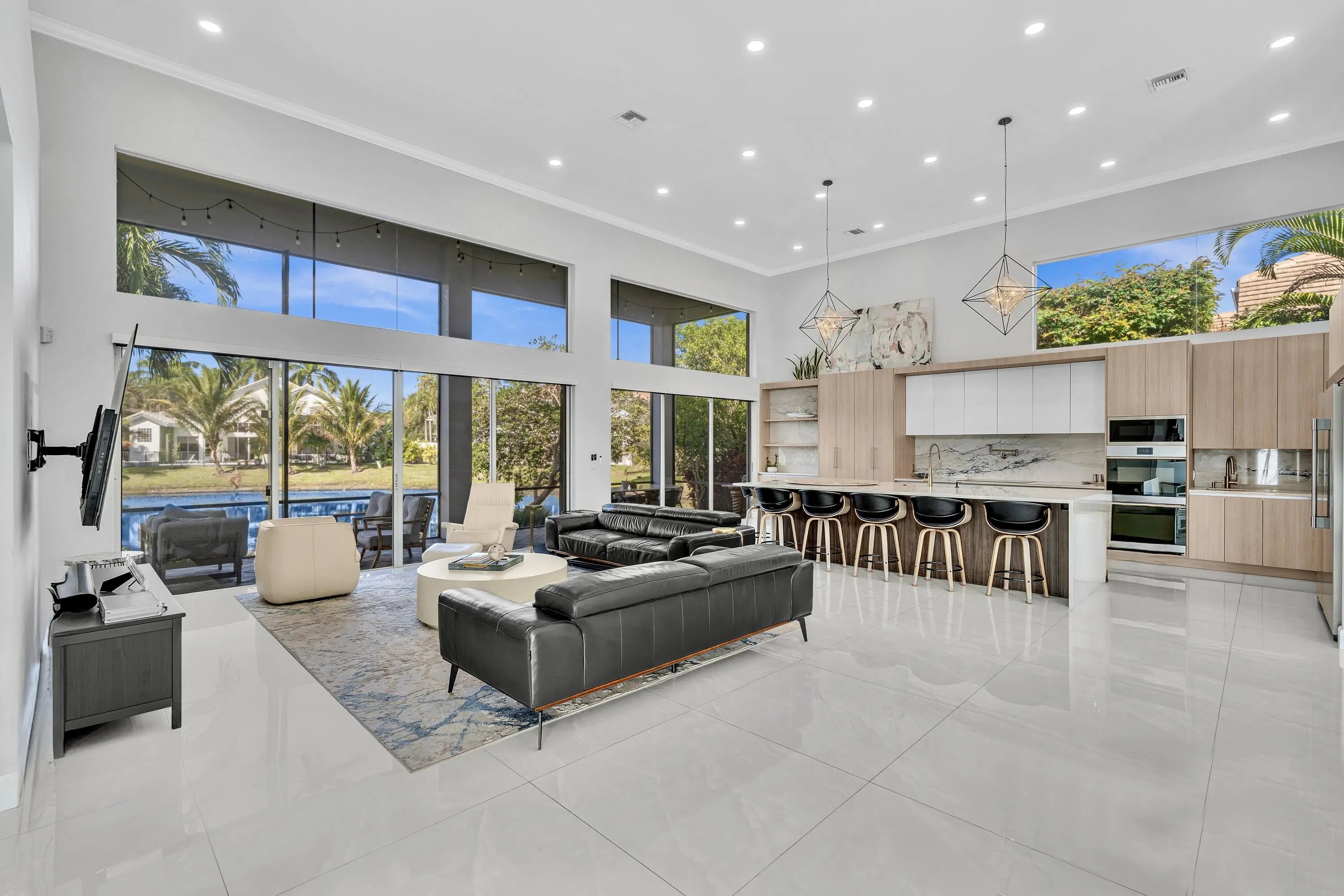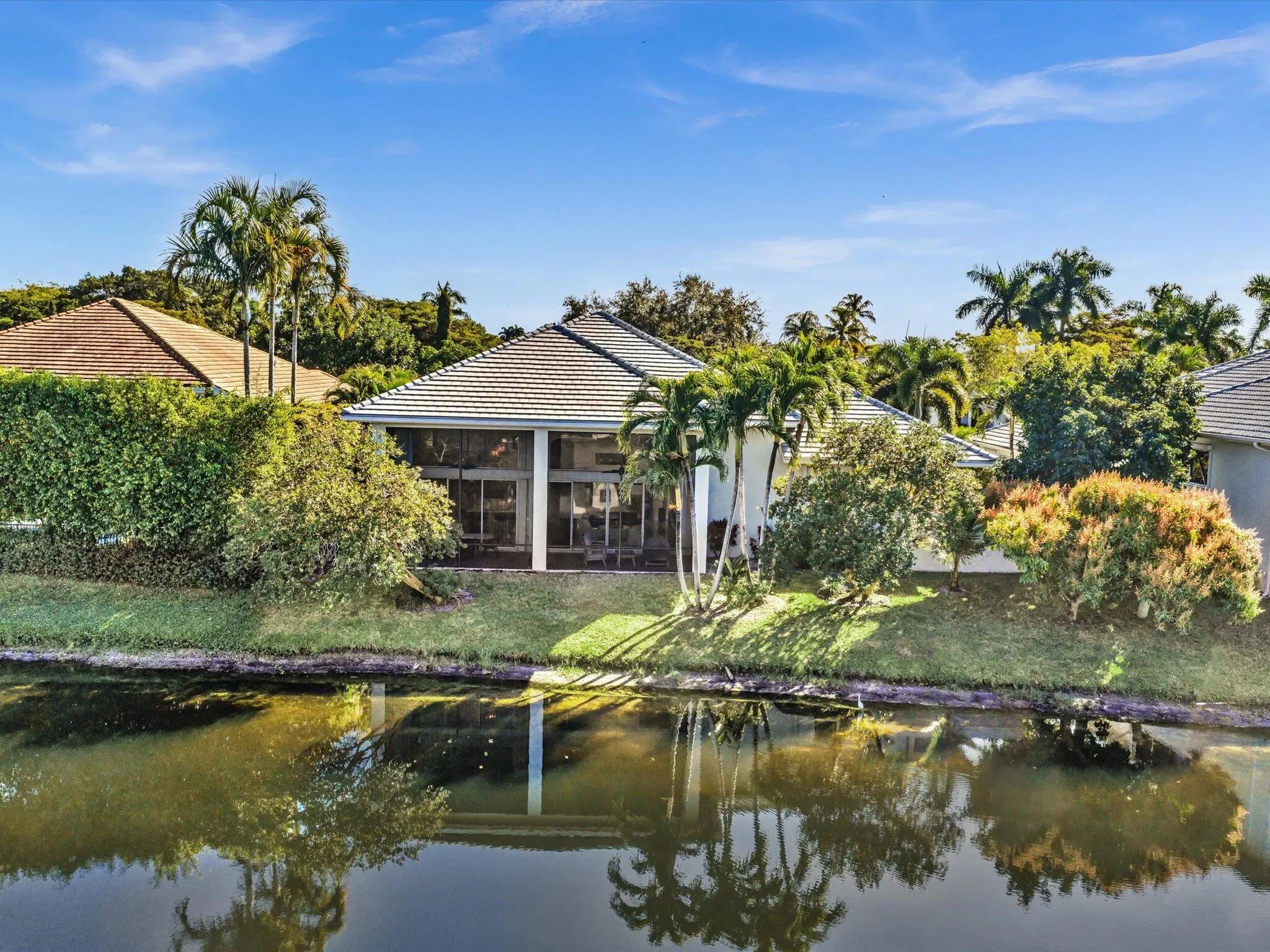 Magnificent one story courtyard waterfront home, located in the highly sought after family friendly gated community of Seasons In Central Boca Raton, along the famous '' Millionaire Mile.'' This elegant residence offers soaring ceilings and abundant natural light throughout with 3 bedroom, 3.5 bath in the main house and 1 bedroom and 1 bath in a separate guest house.The floor plan is open & inviting, perfect for hosting lavish parties or relaxing w/family & friends. Smooth walls, smooth ceiling and large 4 x 4 porcelain tile flooring throughout.The huge fully updated kitchen is a chef's dream featuring quartzite countertops, induction cook top, quartz island, modern cabinetry and stainless steel appliances. The 2-car garage and circular driveway offer ample parking and curb appeal