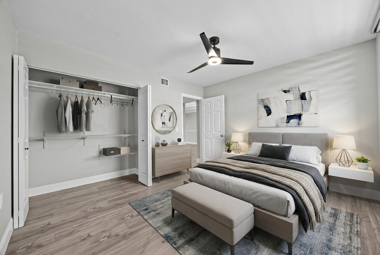 Available immediately! Beautifully updated rental at 3761 Whitehall, Apt 405, West Palm Beach offering spacious living with luxurious upgrades throughout. This residence features laminate flooring throughout and an open, light-filled living area with all-glass windows showcasing stunning views, perfect for relaxing or entertaining. The upgraded kitchen offers modern cabinetry, sleek countertops, and quality finishes, while the luxuriously renovated bathrooms feature contemporary fixtures and elegant design.Located in the desirable Whitehall Condominiums, residents enjoy resort-style amenities including multiple heated pools, clubhouses, tennis courts, pickleball, sand volleyball, walking paths, and playgrounds.Ideally situated just minutes from Downtown West Palm Beach, Clematis Street, CityPlace, Palm Beach Outlets, and endless shopping, dining, and entertainment options. Enjoy close proximity to major hotels, popular restaurants, and everyday conveniences, with easy access to I-95, major highways, Palm Beach International Airport, and the Brightline station. The beautiful beaches of Palm Beach are only a short drive away. Offered at $2,500/month, this exceptional rental combines comfort, style, and an unbeatable location. Don't miss this opportunity, schedule your showing today!