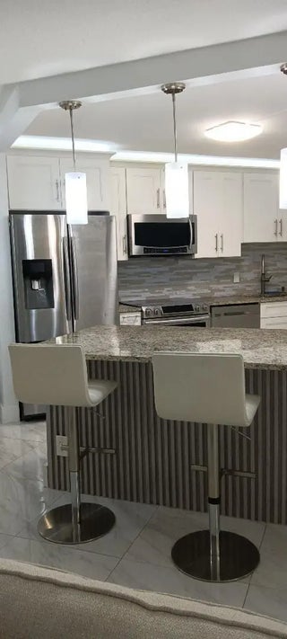 FURNISHED, completely renovated annual rental, ALL AGES, 24 hour manned gate in central Boca Raton, 2 b.r. 2 bath. 2nd floor w/elevator. 1,550 s.f. incl. the large screened-in patio. Great view. Custom kitchen, granite counters, stainless appliances, full size washer/dryer in unit. Sofa bed for guests. Tile floors throughout. Large master bedroom, walk-in closet, walk-in shower. Relax in the soaking tub in the master suite. 3 tv's. Rent includes water, internet, cable tv, trash, 4 heated pools, saunas, 2 tennis courts, pickleball, gym rooms, BBQ grills, walking areas. Friendly community. 5 miles to the beach, close to shopping, restaurants, I95, turnpike. Great schools. 700 credit score and good income to qualify. No pets. Assigned parking/guest spaces.