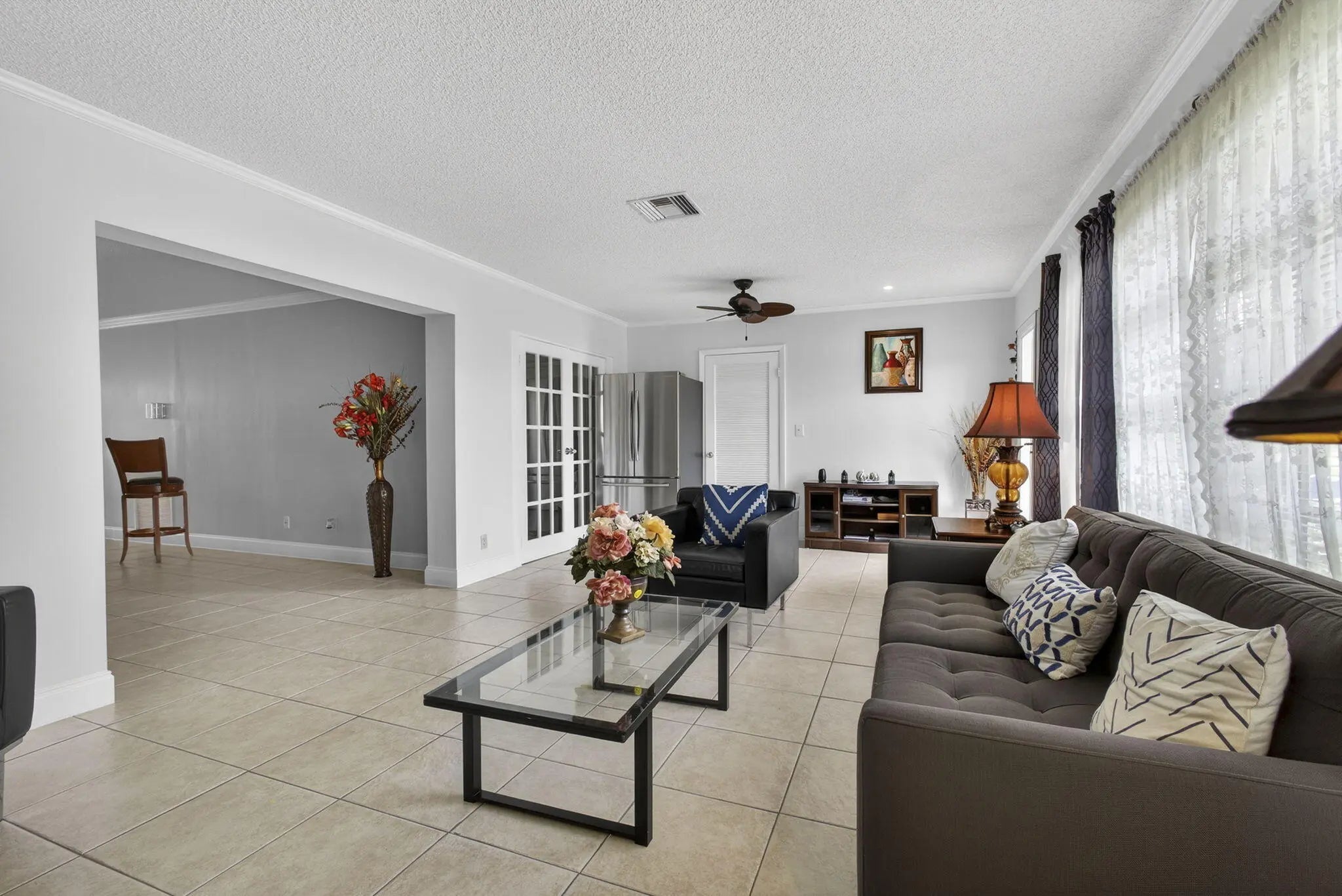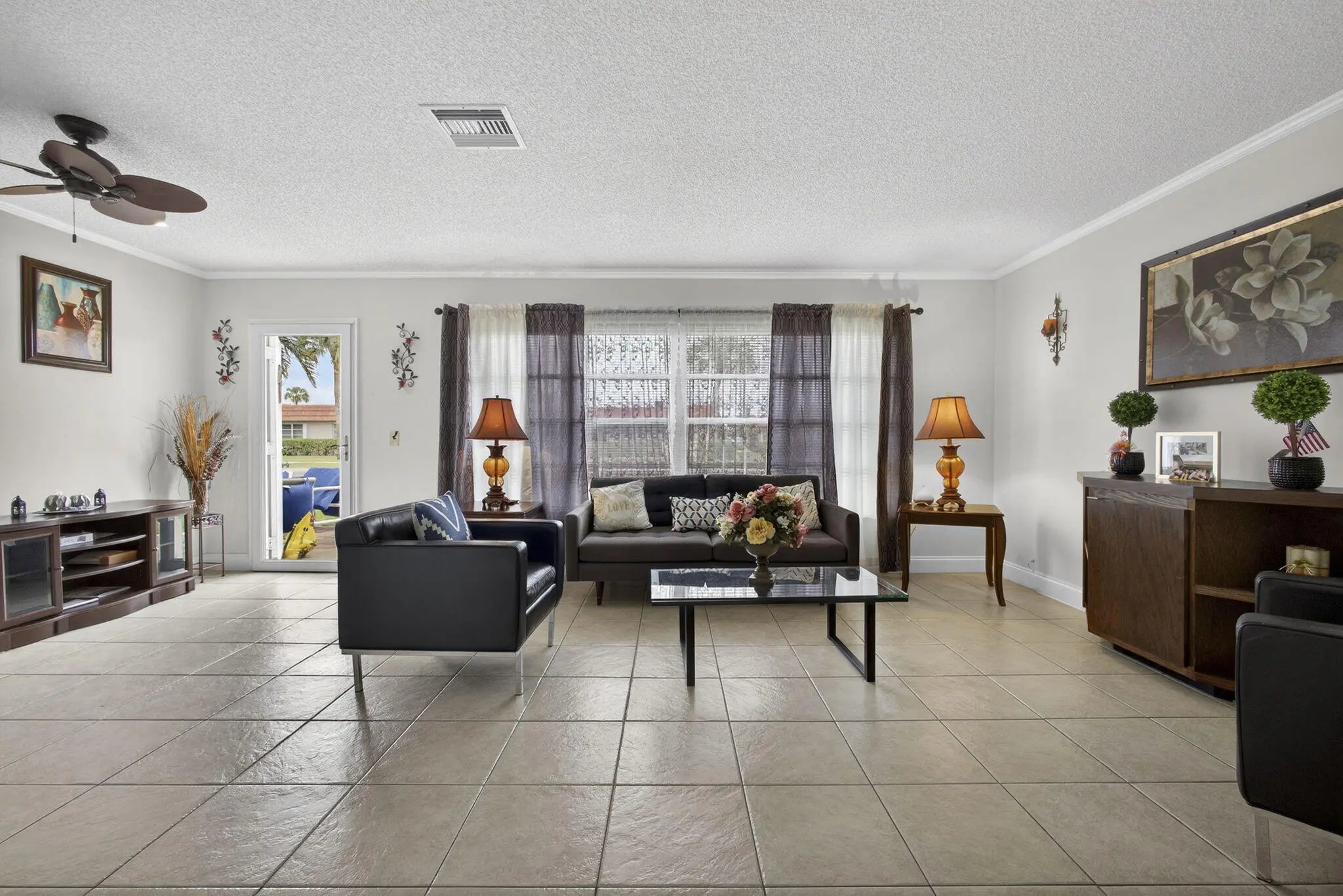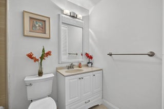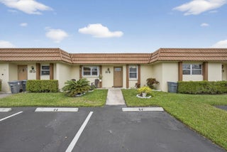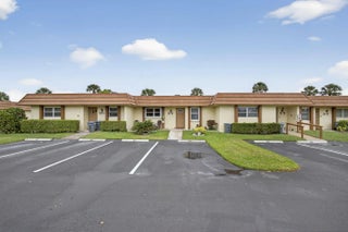 Beautiful hidden gem! This charming 2-bedroom, 2-bath villa offers comfort, style, and convenience. The kitchen features solid wood cabinetry, stainless steel appliances, a tiled backsplash and a refrigerator less than one year old. Tile flooring throughout the entire villa, complemented by updated bathrooms. The spacious primary suite includes a large walk-in closet. Oversized laundry and storage room includes utility sink and full-size stacked washer and dryer (less than 5 years old). Step outside to a private patio ideal for afternoon relaxation or grilling. Additional highlights include hurricane accordion shutters, 2 assigned parking spaces directly in front of the villa, and ample guest parking. The clubhouse, heated pool, and tennis courts are just steps away.