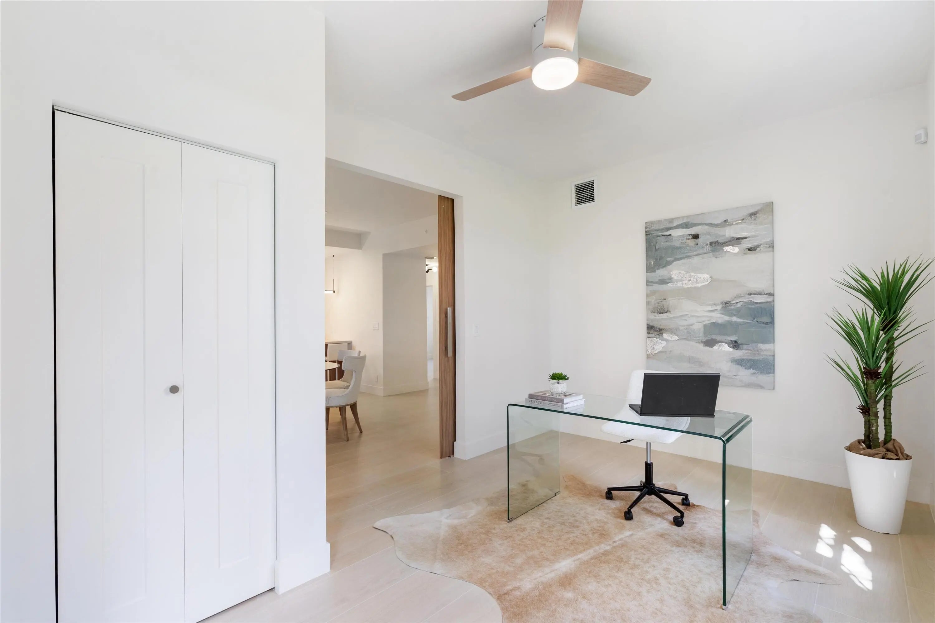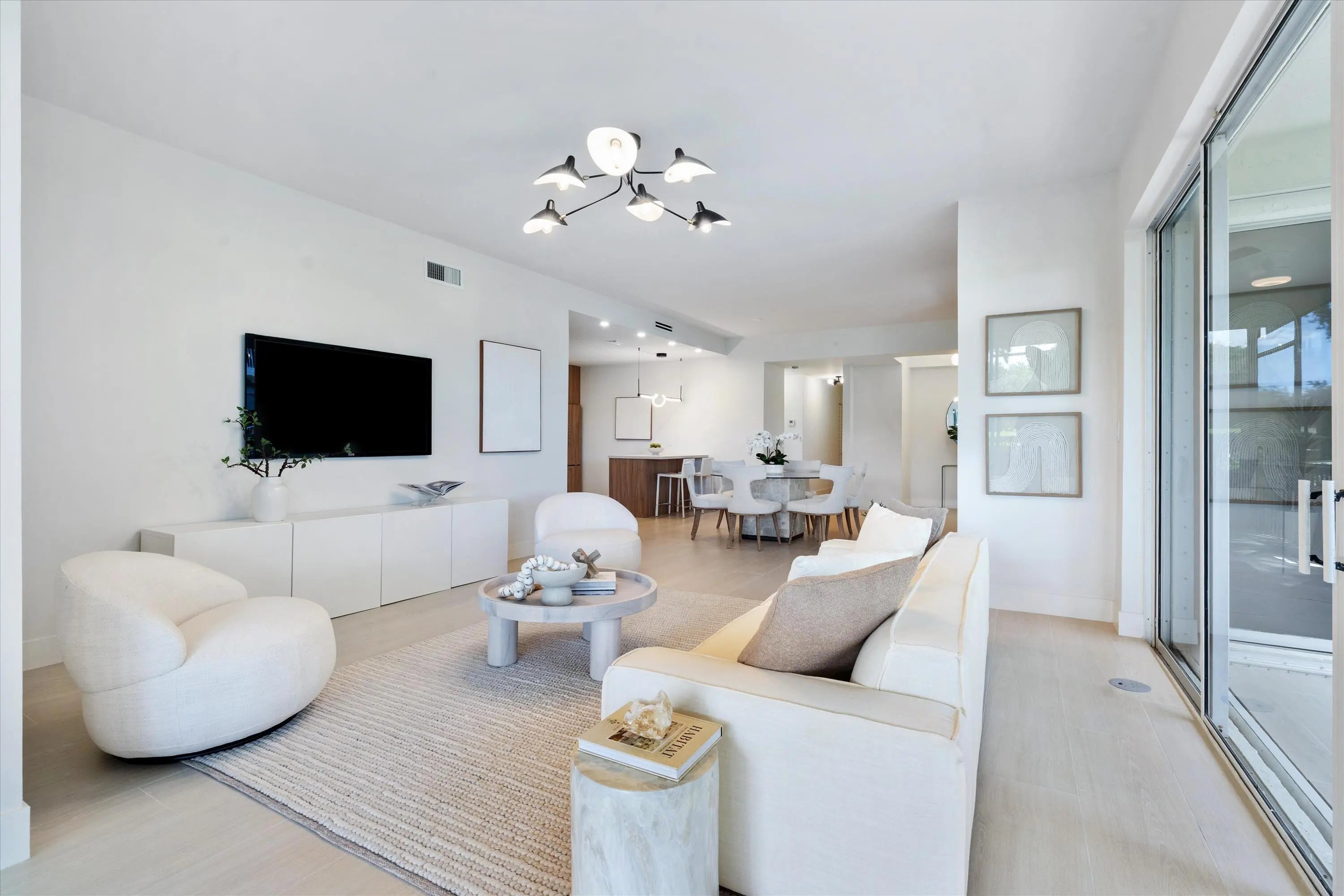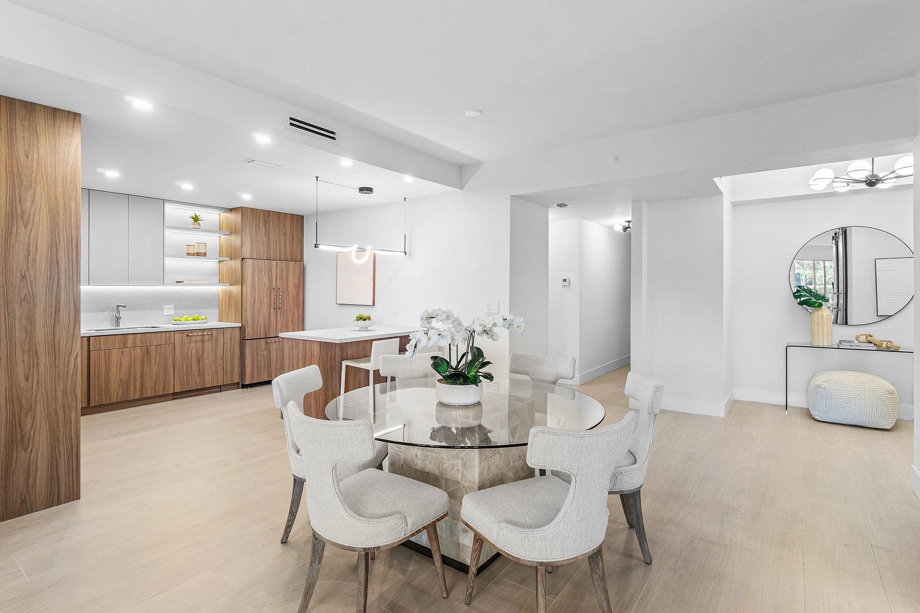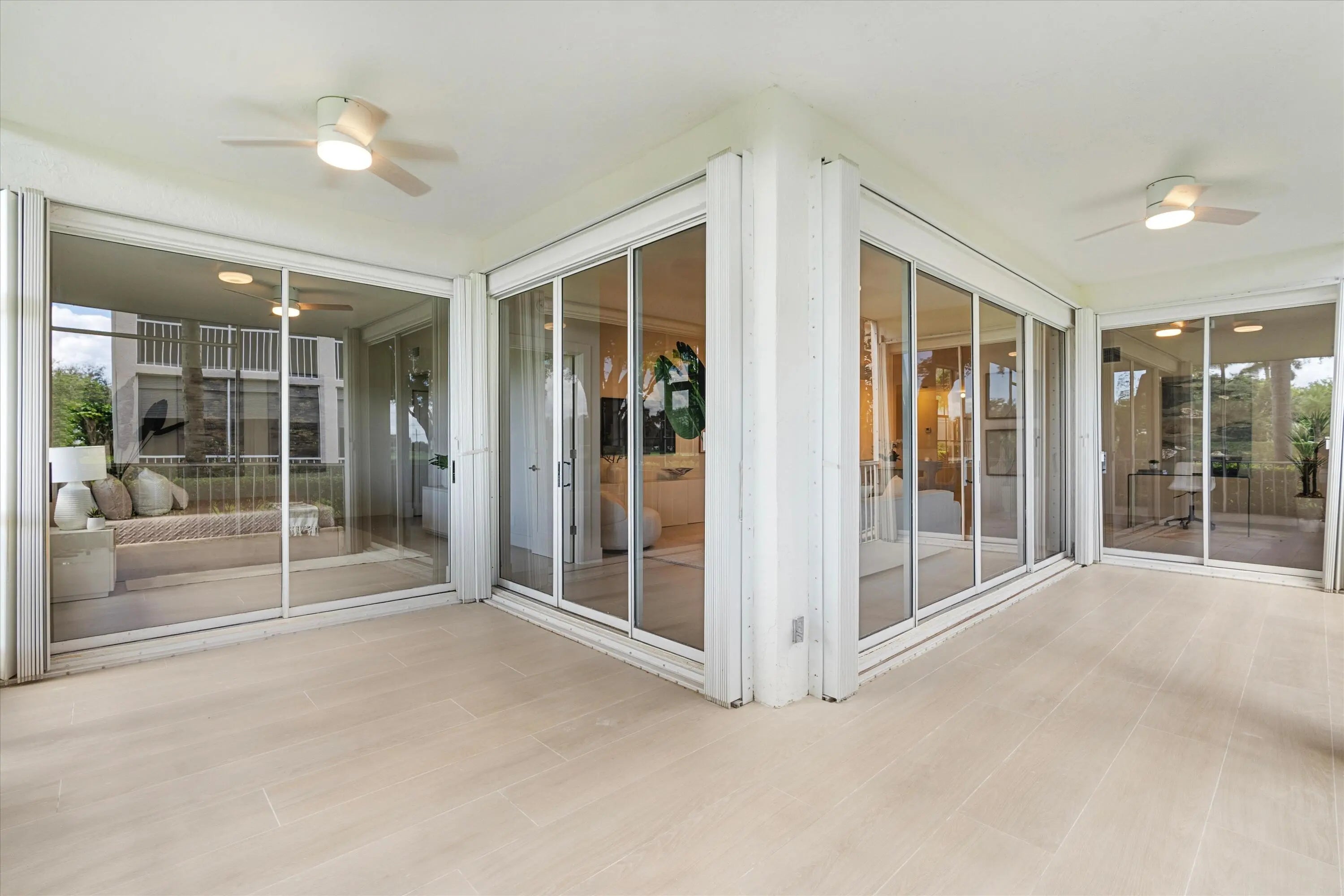 This light-filled first-floor condo has been completely renovated and showcases a sophisticated design with a warm, zen-like ambiance. Featuring elegant updates, an open layout, and an L-shaped screened-in patio ideal for relaxing or entertaining. The home offers porcelain floors throughout, LED lighting, and custom barn doors that add modern character. The spacious primary suite includes a luxurious rain shower and generous closet space. Ideally located just steps from the private community pool and walking distance to the Clubhouse, Polo Shoppes, and dining. Enjoy resort-style living with two championship golf courses, tennis and pickleball, a state-of-the-art fitness and spa center, and multiple dining venues. Mandatory membership required.