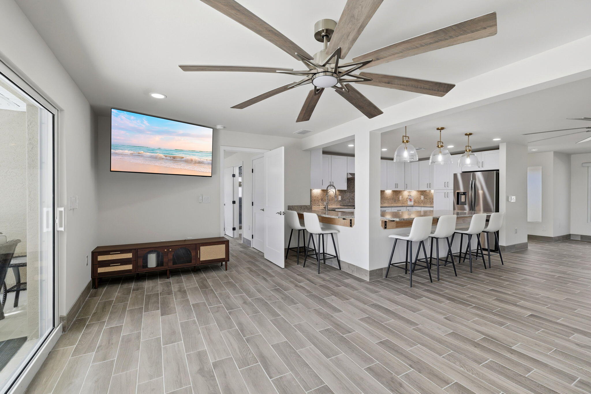 Bring your boat to this fully renovated riverfront pool home, perfect for full-time living or investment. The open-concept layout features brand-new flooring, updated electrical, plumbing, and HVAC, and a completely redesigned interior. The new kitchen shines with modern cabinetry, updated countertops, designer backsplash, and all-new appliances. All bathrooms have been fully updated, including a reimagined primary suite with a custom walk-in closet. Exterior upgrades include new stucco, driveway, pavers, soffits, impact doors and windows, garage door, and fresh paint. The pool has been resurfaced with a new deck finish and equipment--truly turnkey waterfront living.