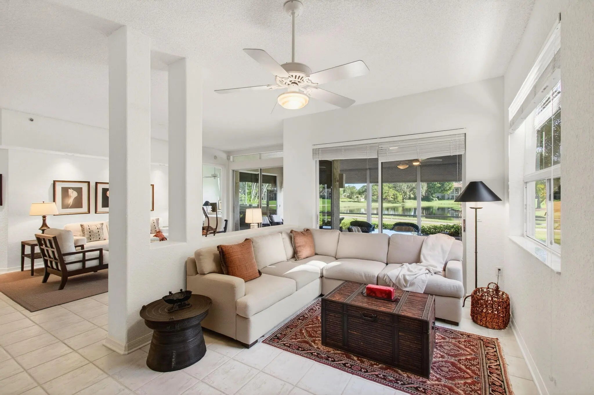 Welcome to this stunning first-floor 2-bedroom plus den, 2.5-bath condo offered as a seasonal rental with a club course golf membership in the prestigious Broken Sound Country Club. Enjoy breathtaking views of the lake and the 12th hole of the Broken Sound Club Course from your spacious screened patio--perfect for morning coffee or sunset relaxation. The bright white kitchen offers a clean, airy feel and opens to the main living areas, ideal for entertaining. The primary suite is a serene retreat with beautiful lake and golf course views, a large walk-in closet, and a spa-like en suite featuring a soaking tub and separate walk-in shower. A comfortable guest bedroom, versatile den, and additional baths provide ample space for family and guests. Located in the sought-after village of