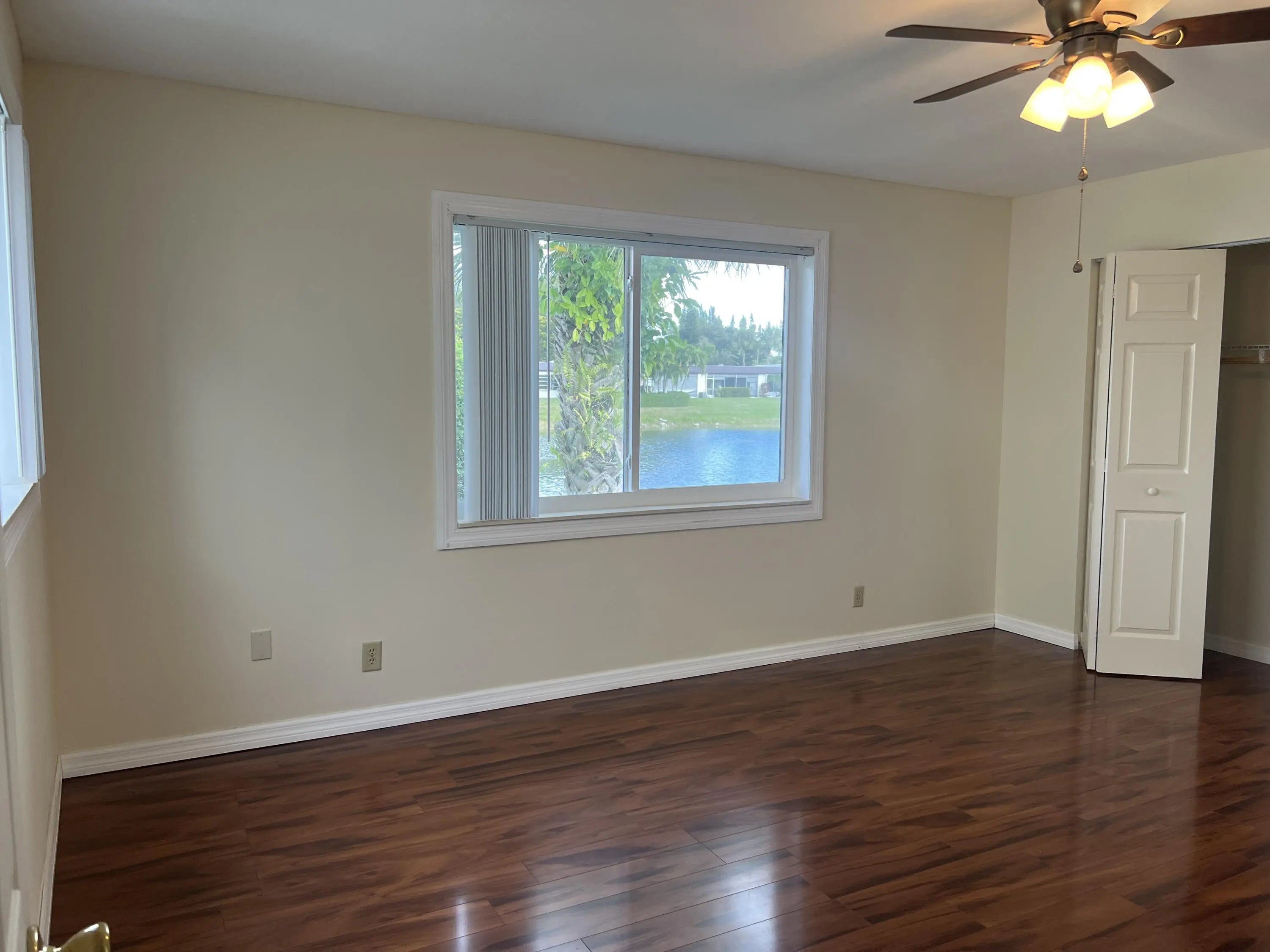55+ Community, 2 Bedroom 2 Bath Spacious Corner Villa. Updated Kitchen, Floors and Bathrooms. Golden Lakes Village offers 2 Clubhouses, Pools, Fitness Center, Social Events and more. Close to transportation, Shopping, Airport and Beaches. Please NO PETS and No Smoking. Rent includes Cable, Internet and Water. Room Sizes have been estimated.