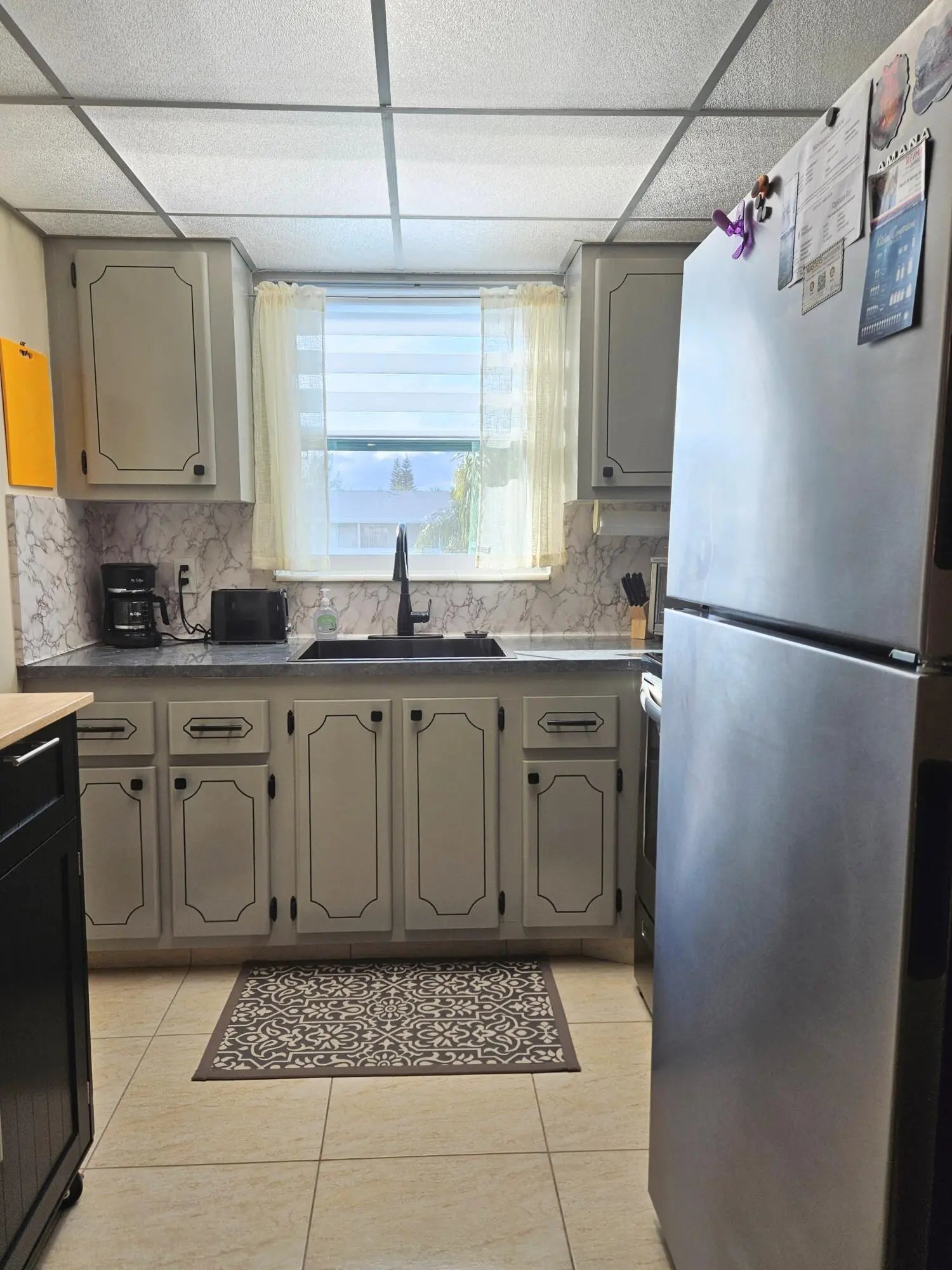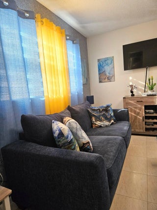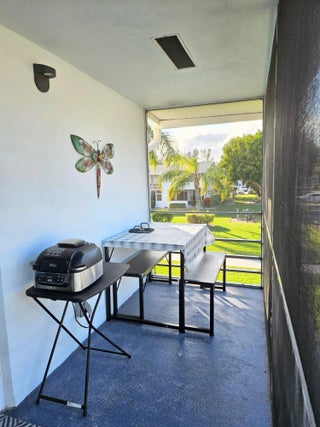 Beautifully updated and furnished corner unit condo full of natural light. Complete impact windows and balcony door installed in 2023. Condo is 1 bedroom and 1.5 bathrooms. Tiled throughout. Walking distance of Windsor community pool. The building has been painted in 2026, sidewalk redone 2025, roof 2022. Hot water heater 2022. Come and enjoy Century Village is 55+ active adult community with a variety of activities, shows, pools and outdoor amenities year round. Near shopping and dining areas and 20 minutes from some of the gorgeous beaches of Palm Beach County.