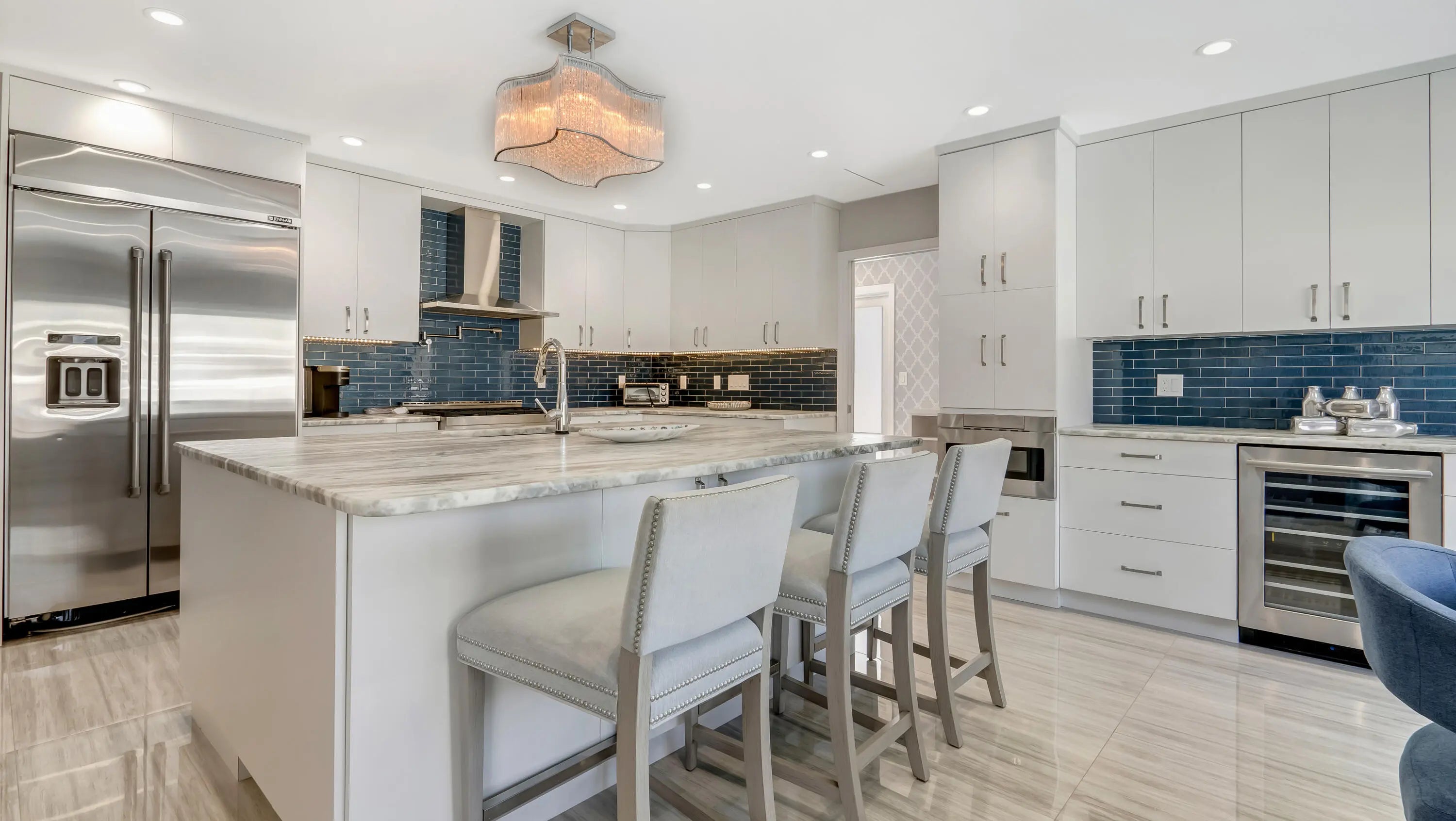 Move In Ready, completely renovated and designer furnished, deep water home w/no fixed bridges in Bel Marra. 4 bedrooms w/ 2.5 baths, 2 car garage. New roof, Impact glass, Whole house generator & new electrical panel. Porcelain tile in living areas, hardwood at bedrooms. New VRF A/C w/individual room controls, Tankless HWH. Gourmet kitchen w/custom wood cabinetry & marble counters, premium appliances including gas range w/pot filler, customized storage & huge island. Seawall in great condition w/new ''Trex'' dock, electric service and boat lift. Sparkling pool w/Travertine pavers & customized lighting. Exquisite summer kitchen featuring a built-in gas grill, burners & griddle, Sink, 2 refrigerators & granite bar top w/electric sun screens. See Supplement for Full Details!