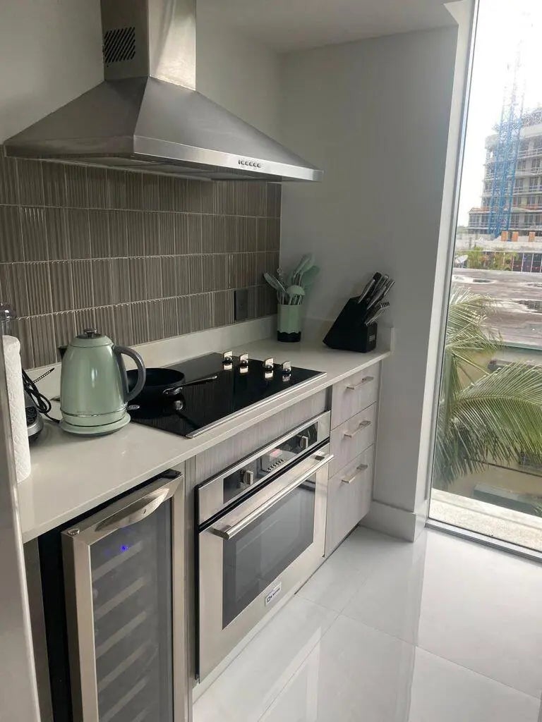 Situated within the distinguished community of Bay Harbor Islands, this impeccably designed two-bedroom, two-bathroom residence offers an exceptional living experience, combining contemporary elegance with practical functionality. Abundant natural light fills the space, highlighting a thoughtfully designed split floor plan. The gourmet kitchen is outfitted with premium, top-of-the-line appliances, including an under-counter wine cooler, catering to both culinary enthusiasts and entertainers alike. The expansive primary suite features a luxurious en-suite bathroom and generous walk-in closets.