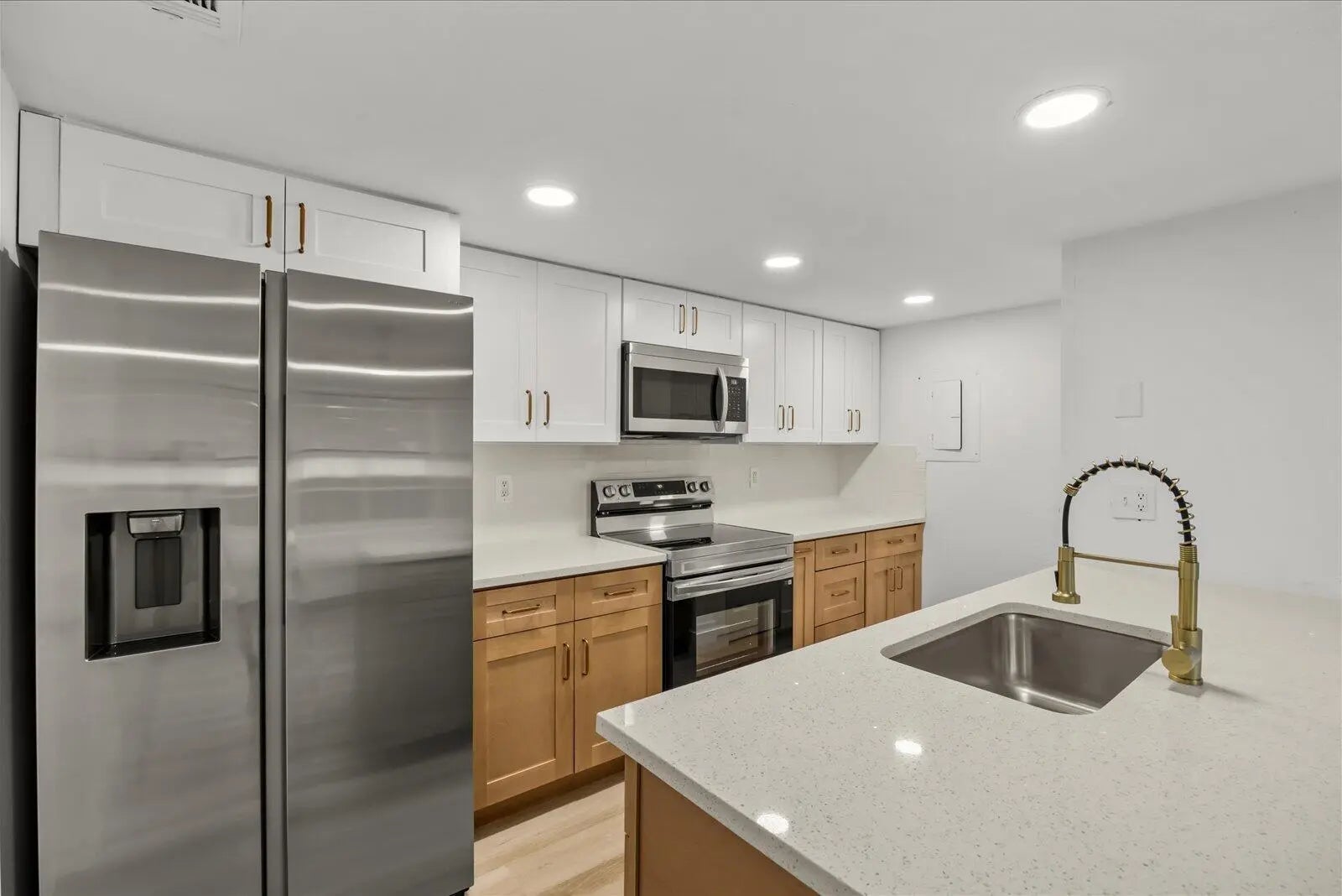 Showings must be scheduled with Showingtime. Exquisite 3-bedroom, 2.5-bathroom residence, fully renovated in 2025. 2026 Roof. Large Shed in back! The gourmet kitchen boasts luminous Calacatta quartz countertops, bespoke soft-close shaker cabinetry, and premium high-end finishes, designed to inspire culinary excellence. Luxurious spa-inspired bathrooms feature sophisticated tile work, free standing tub, gorgeous vanities, and contemporary fixtures, elevating daily rituals to a serene escape. Impeccable waterproof laminate flooring, freshly painted interiors and exteriors, and brand-new, top-tier appliances blend style with functionality. This residence seamlessly blends modern luxury with timeless comfort.
