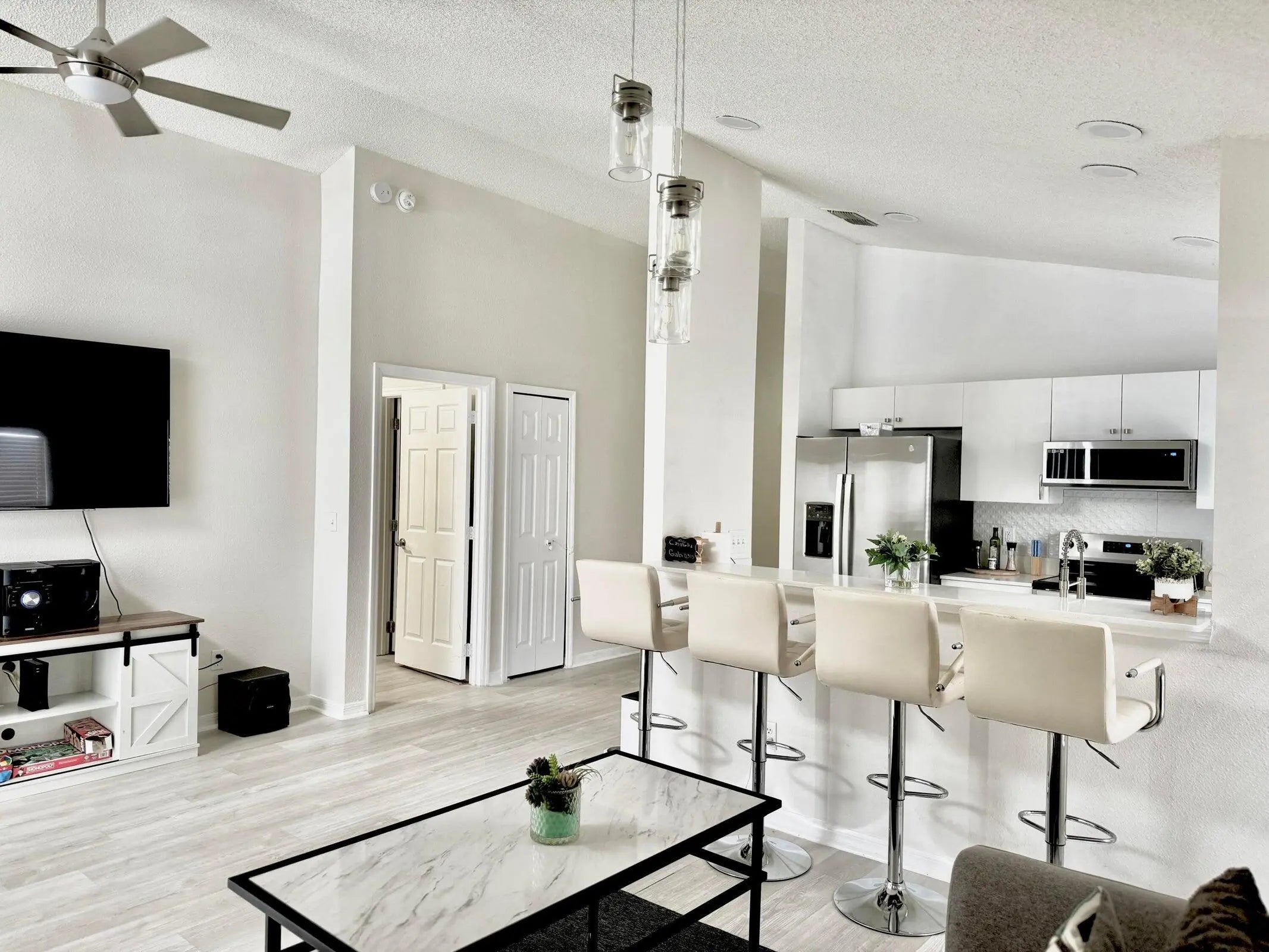 Renovated and ready to move in, come see this gorgeous pool home! FURNITURE INCLUDED, and priced to sell, it features an: open floor plan, eat-in kitchen with quartz countertops, luxury vinyl flooring, spacious master bedroom with an en-suite bathroom, and a 2-car garage!Steps outside is your private screened-in pool and patio deck. You also have an entire yard to let the kids & pets play.Low HOA fees and community amenities including a: pool, playground, and tennis courts -plus just a 25 minute drive from Disney Springs -this home has strong rental/Airbnb potential and would also make a lovely home! Davenport has been deemed one of the FASTEST growing cities in Florida. Give me a call to come see it, today!Realtors welcome; bring all offers.