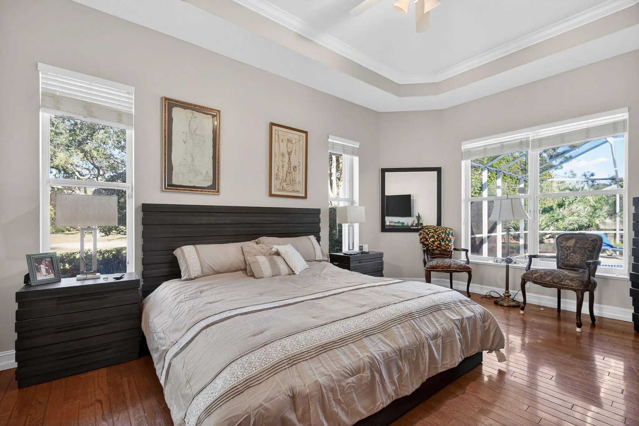 Welcome to this beautifully updated 4BR/3BA + den, pool home! This single-story residence features tile & hardwood flooring, a remodeled kitchen with new appliances, backsplash, and granite countertops, breakfast bar & cook island. Relax in a spacious master suite with walk-in closets, dual vanities, & a luxurious walk-in shower. 4th BR can be a private suite with cabana bath. Enjoy outdoors w/ a covered porch, screened lanai, & new pool deck overlooking lush landscaping & private natural backdrop. Recent upgrades include new roof 2023, A/C 2020, pool heater 2023, water filter/softener system 2024, Garage door mechanical 2022, pool deck 2022, and solar panels . Move-in ready, energy efficient, & meticulously maintained; offering the perfect blend of comfort, privacy, and FL lifestyle!