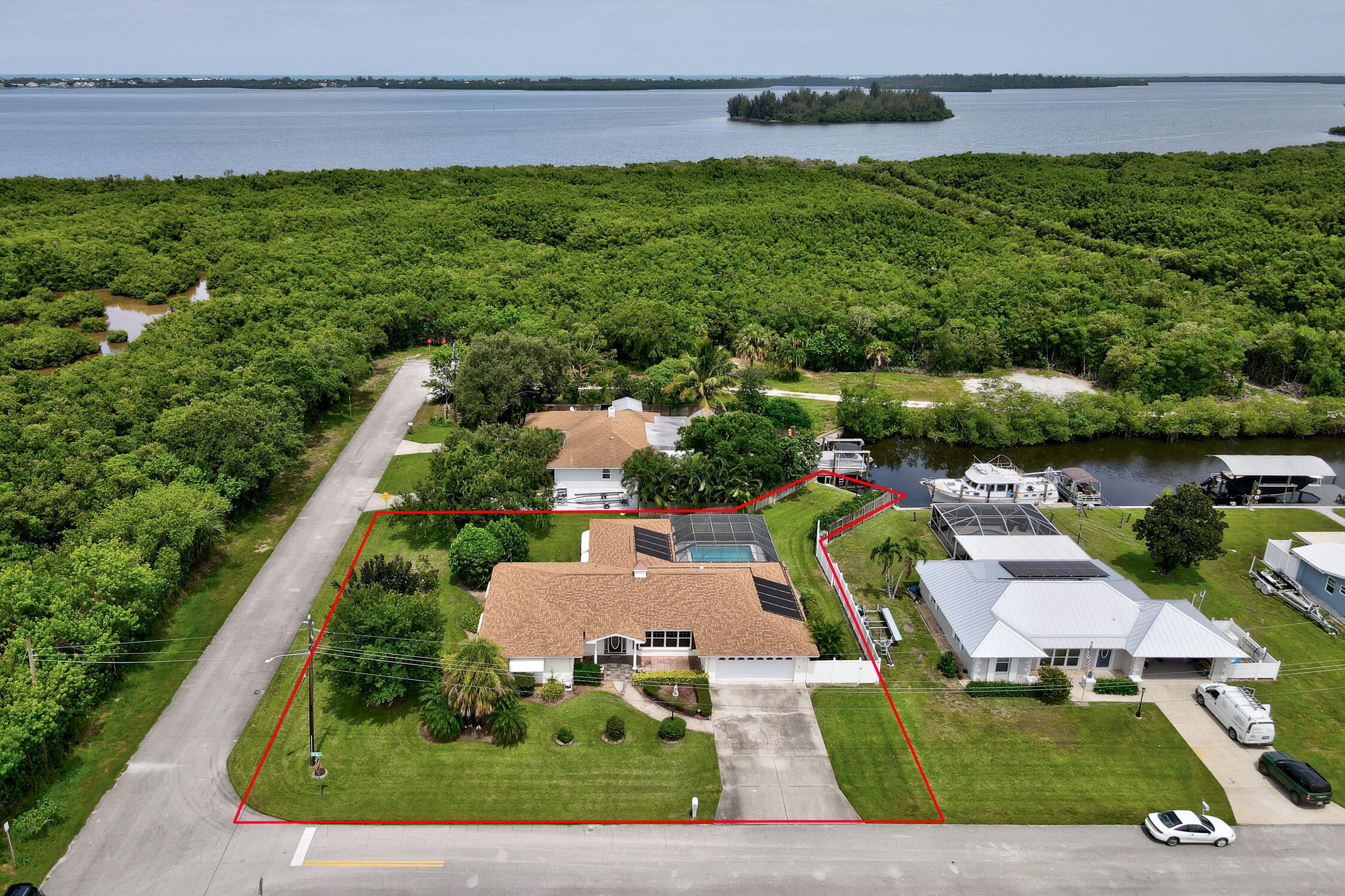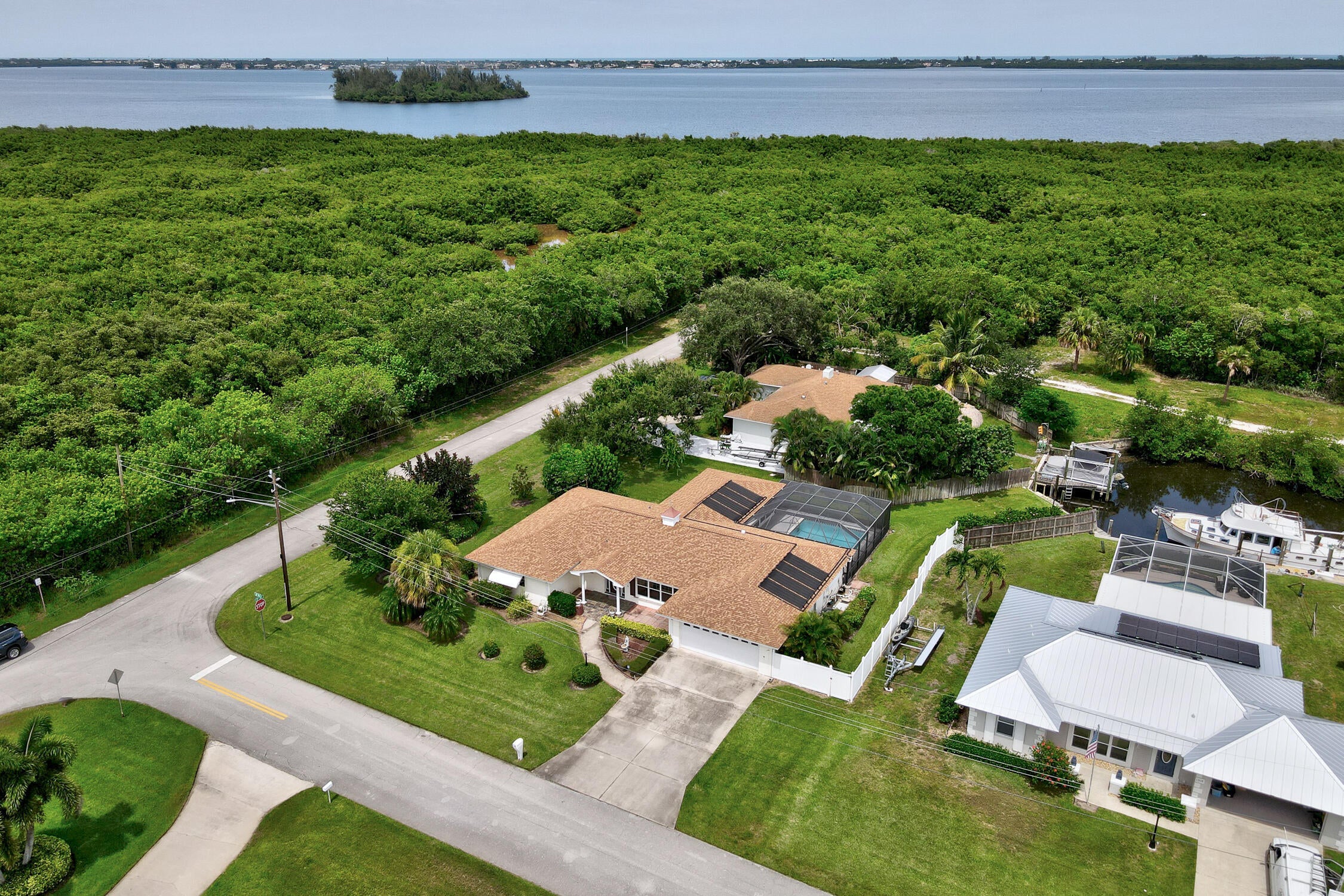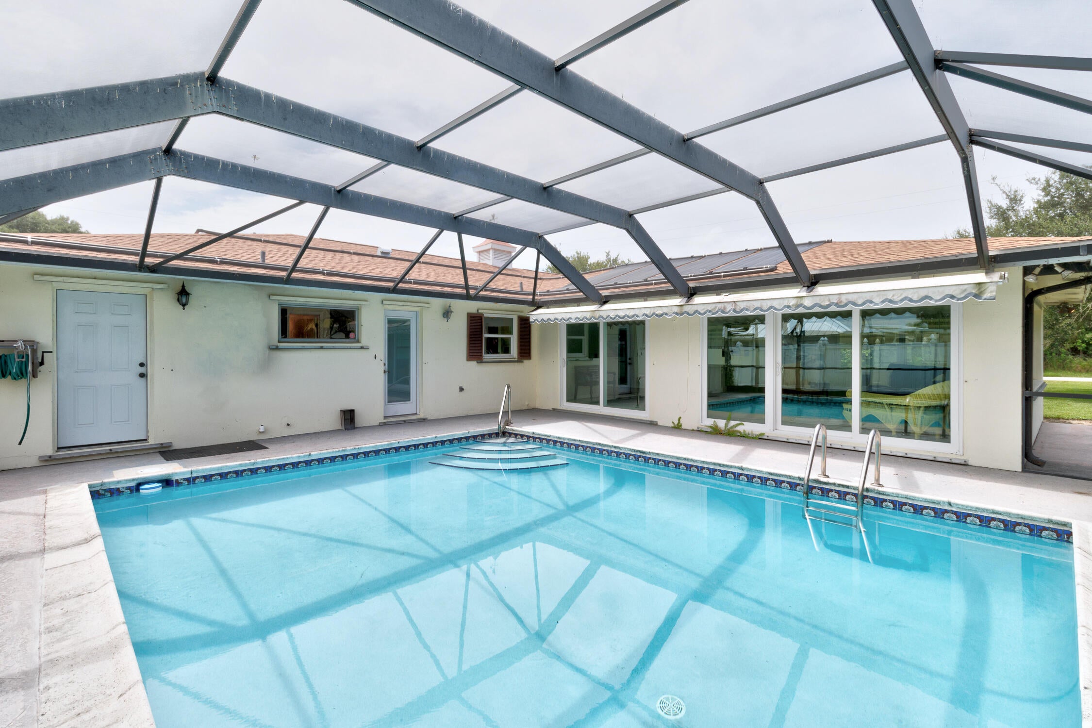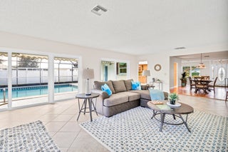 Opportunity knocks in Vero Shores! Spacious pool home with 2700 sq.ft. of living area; 3 bedrooms, 3 baths. Updates include: 2021 roof; 2020 HVAC; 2019 water heater. SPOILER ALERT: included in the price is a small slice of waterfrontage -- perfect for kayaks, Jet Skis, small fishing or deck boat under 20'! There are a ton of other features: both formal living and dining rooms; a huge family room with both pool and canal views; an eat-in kitchen; massive primary bedroom; an inside laundry room; and an attached workshop. All this on a lovely corner lot. Make this your ultimate ''Florida'' retreat!