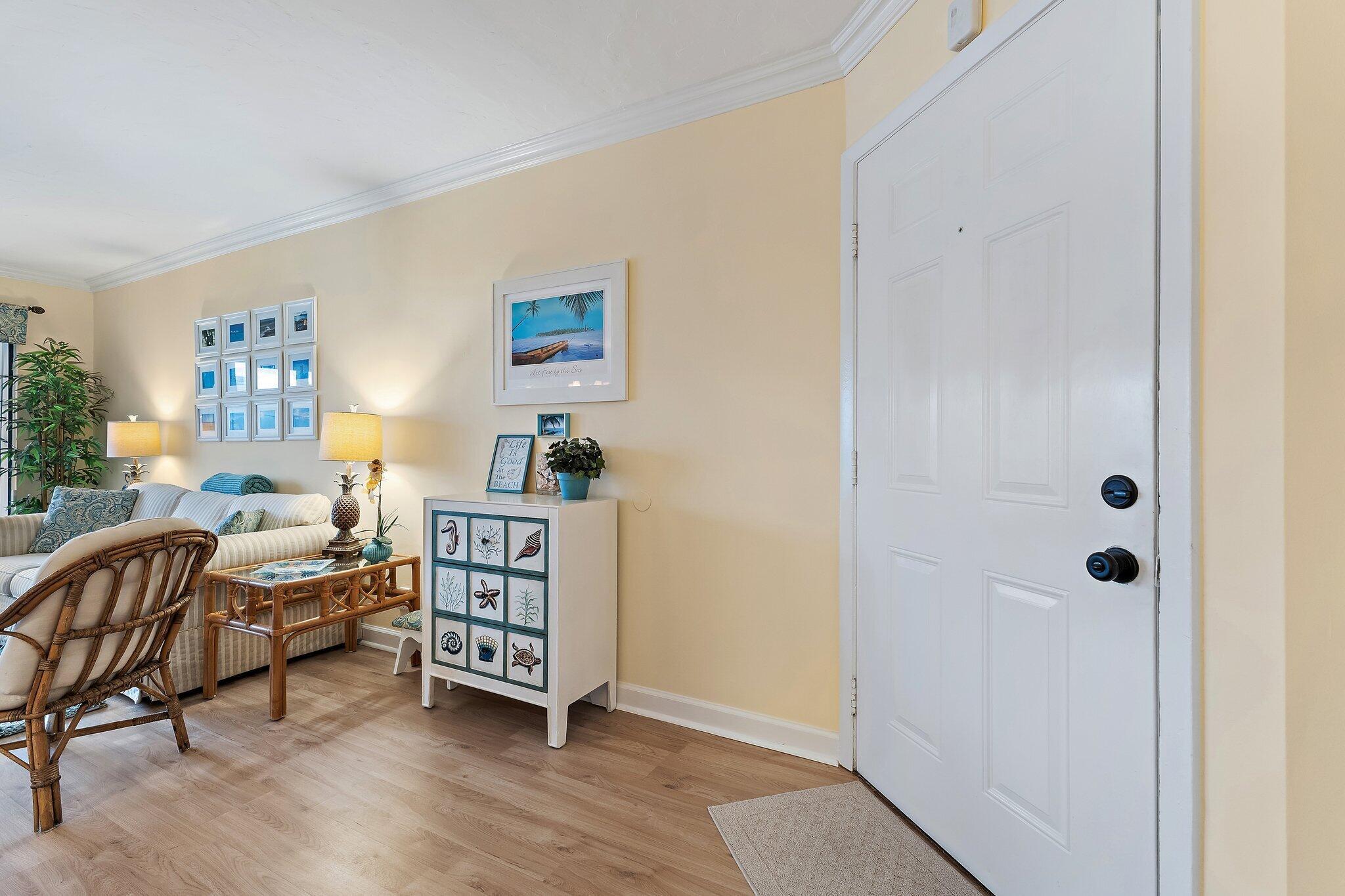 Discover coastal bliss in this charming 1Br, 1.5 bath condo just steps from Jupiter's pristine beaches. Wake up to morning sun streaming over a peaceful lagoon with lush landscaping from your screened balcony. This thoughtfully designed unit features top-tier appliances, laminate flooring, crown moldings and custom tile. This condo is Located in the sought-after Jupiter Ocean and Racquet Club. The community features resort-style pools, tennis courts, and manicured grounds. Walk to Jupiter Beach, parks, and the scenic Riverwalk along the Intracoastal. Schedule your showing today!