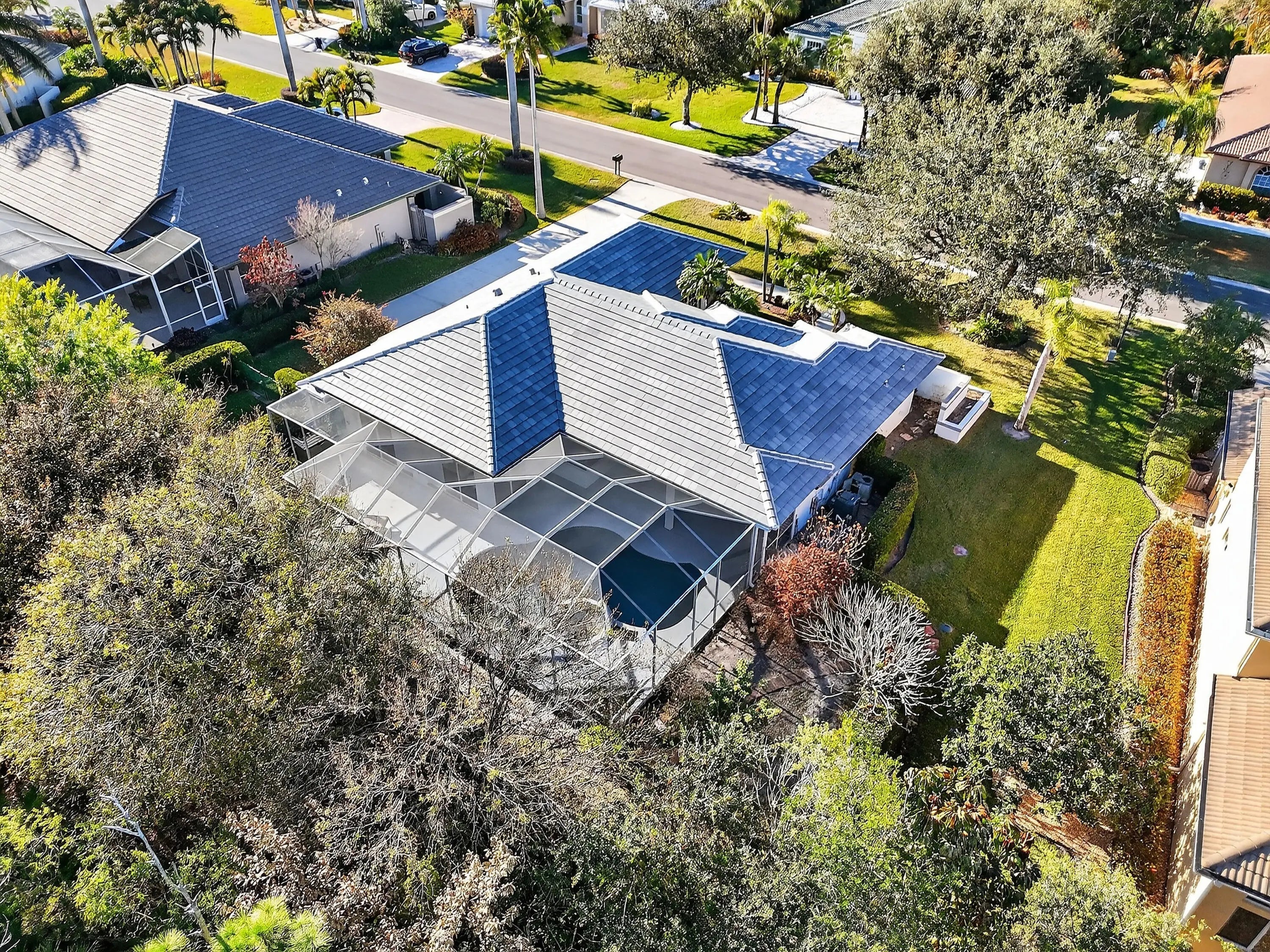 Stunning home in The Falls at Lost Lake in Hobe Sound, complete with a NEW slate tile roof. This beautifully maintained property offers an open floor plan with 3 bedrooms, 2 baths, a rare 3-car side-entry garage, and a gorgeous pool overlooking a peaceful preserve for maximum privacy. Inside, you'll find tile flooring throughout the main living areas, wood-plank tile in the primary suite, and wood floors in the additional bedrooms. The updated kitchen features Traditional wood cabinetry with glass panes, granite countertops, and newer stainless-steel appliances including a range, microwave, and dishwasher!