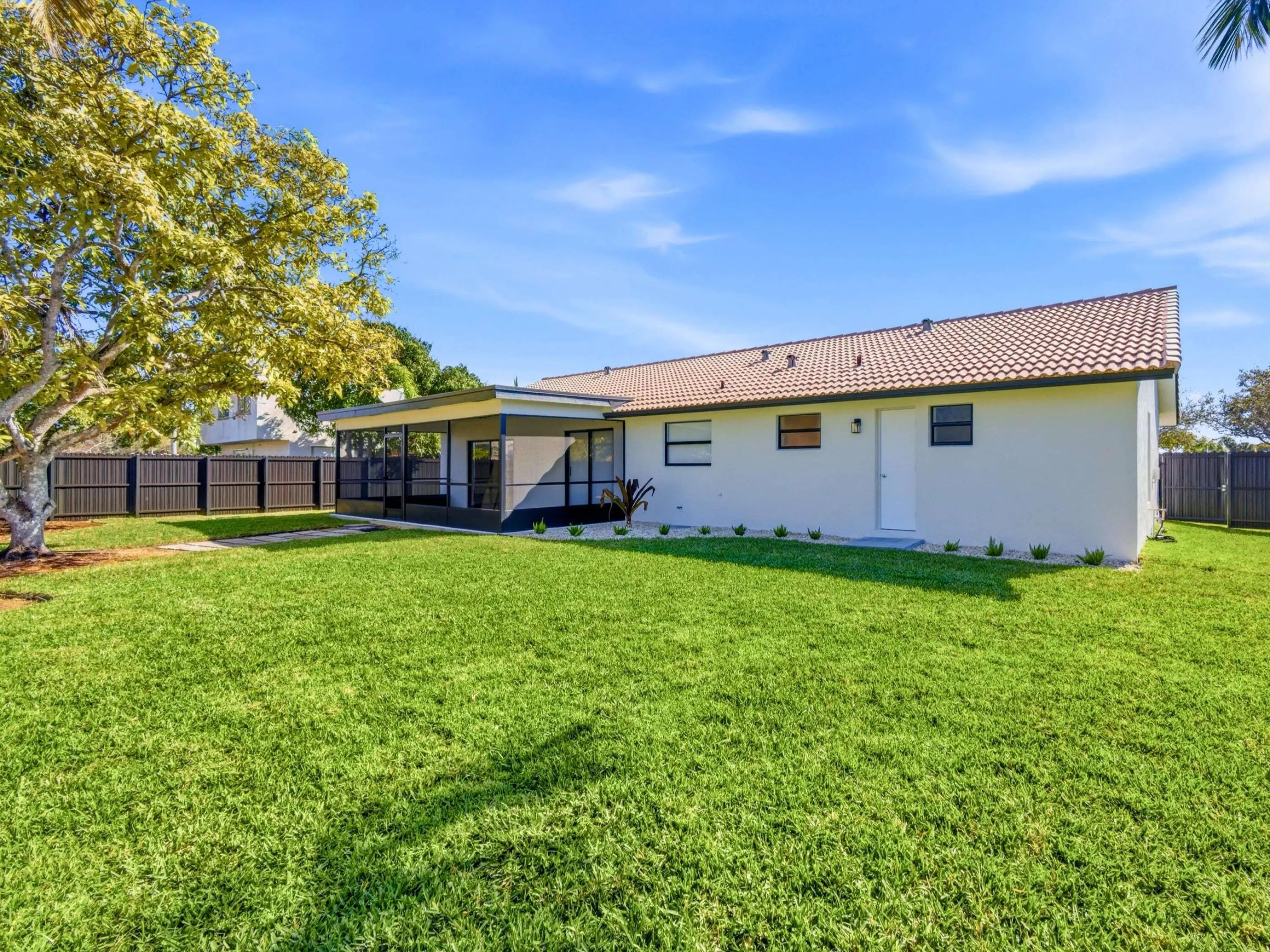 For Rent! Welcome to this STUNNING, FULLY REMODELED HOME, nestled in one of Margate's most desirable family-friendly neighborhoods. This beautifully renovated 3-bed, 2-bath boasts a brand-new designer kitchen with quartz countertops and quartz backsplash, stainless steel appliances plus a full size washer & dryer, beautifully updated bathrooms, volume ceilings, and a bright open floor plan ideal for modern living. The home features beautiful flooring throughout with no carpet, adding a sleek, modern feel and effortless maintenance. Enjoy a generous primary suite with walk-in closet, custom blinds throughout, a 2-car garage, an extra-large screened porch overlooking the backyard, and a huge fenced yard with lush new grass and gorgeous landscaping -- perfect for Florida outdoor living.