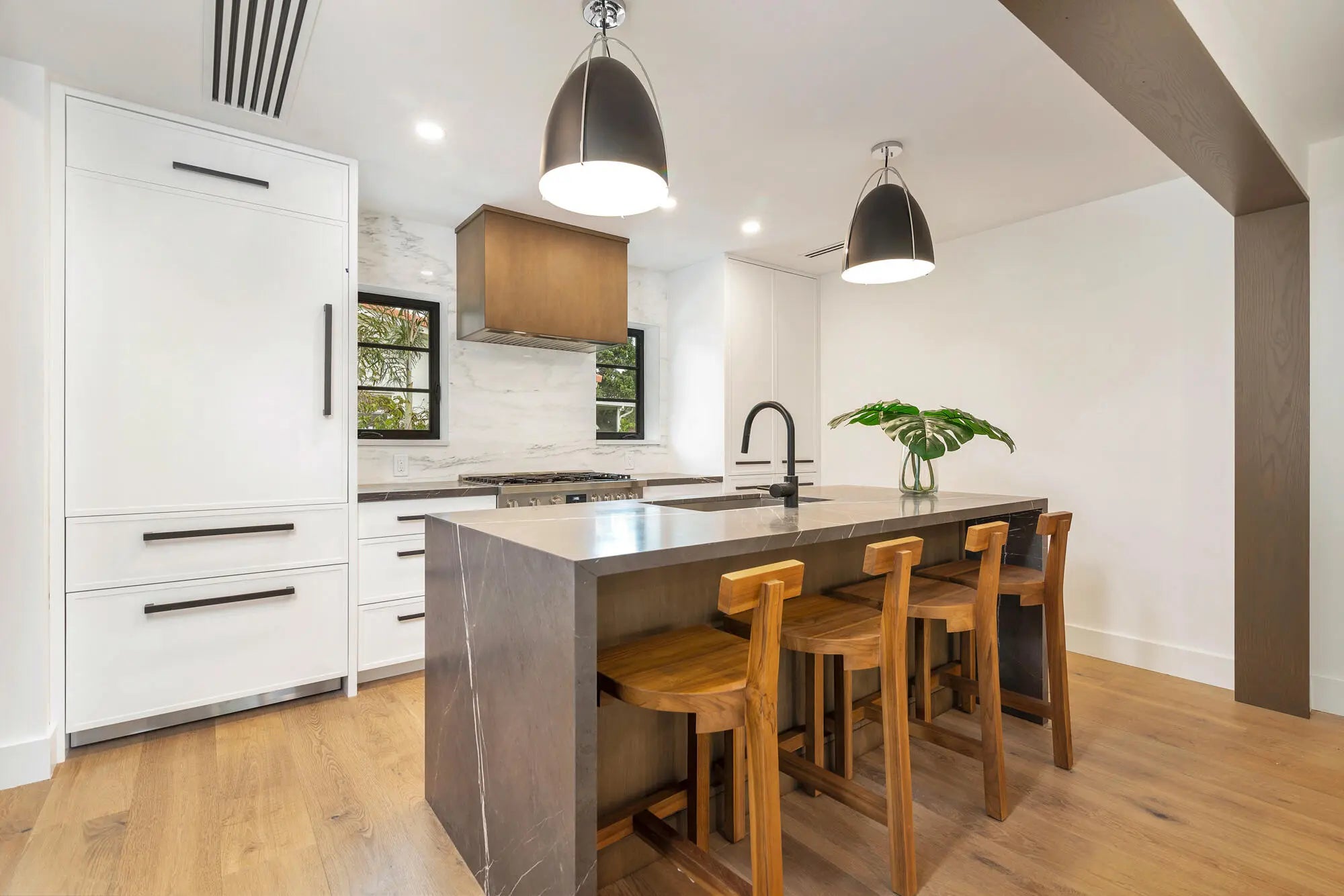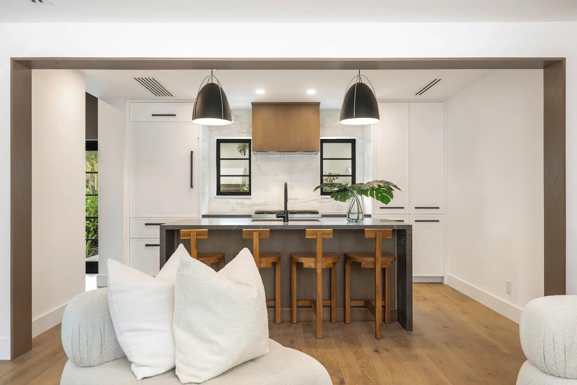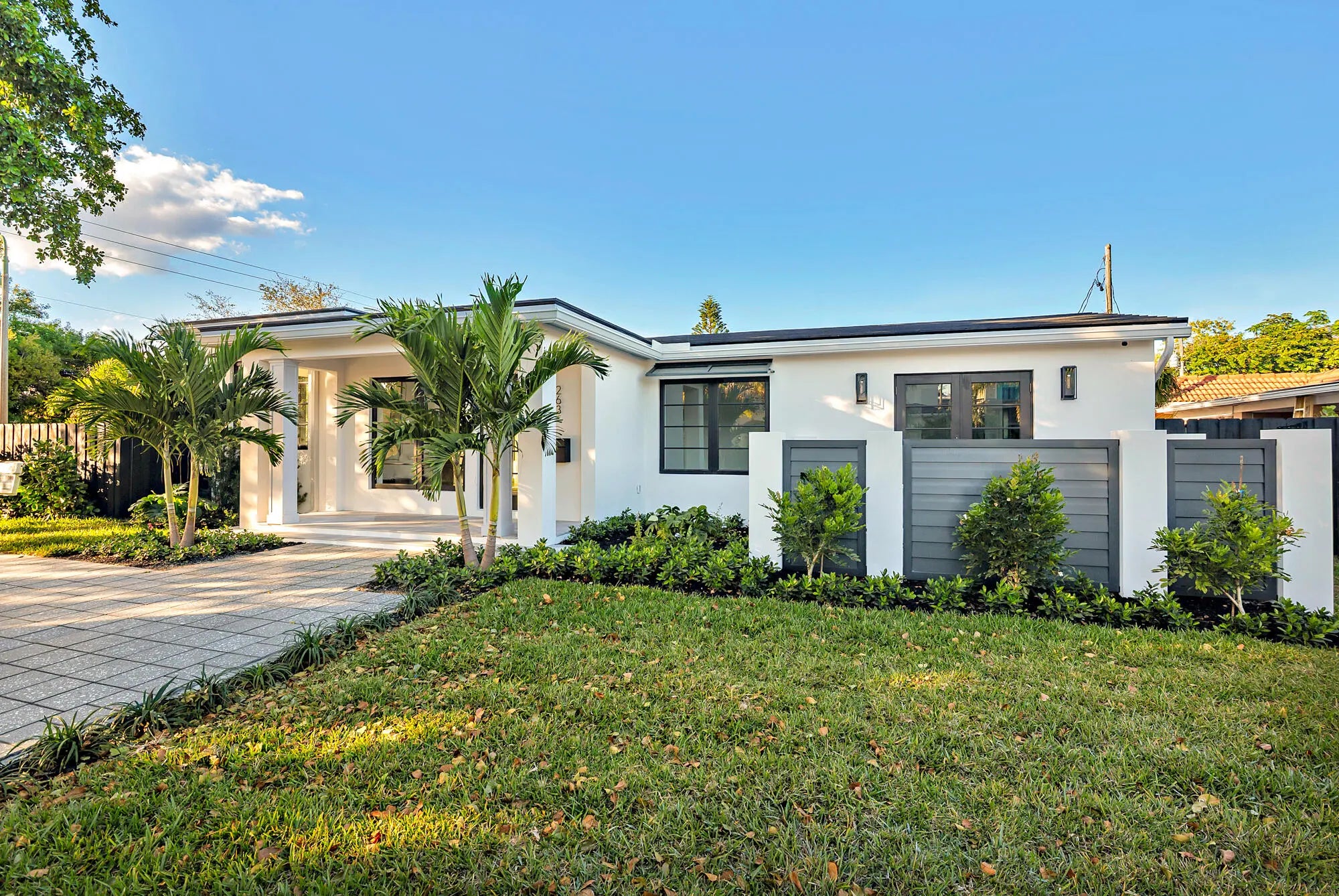 Introducing 263 Alhambra Place -- a newly gut-renovated and expanded concrete block residence, masterfully reimagined inside and out. Featuring all new electric, plumbing, and roof, full hurricane-impact windows and doors, and a newly installed saltwater, gas-heated pool. Turn-key with brand-new appliances, custom cabinetry, wide-plank oak floors, marble bathrooms, and a stunning marble island anchoring the sleek, clean-lined kitchen. The private, gated courtyard extends off the serene primary suite. Ideally located east of S. Olive Ave. on quiet Alhambra Place -- a rare, move-in-ready offering in a coveted coastal setting.