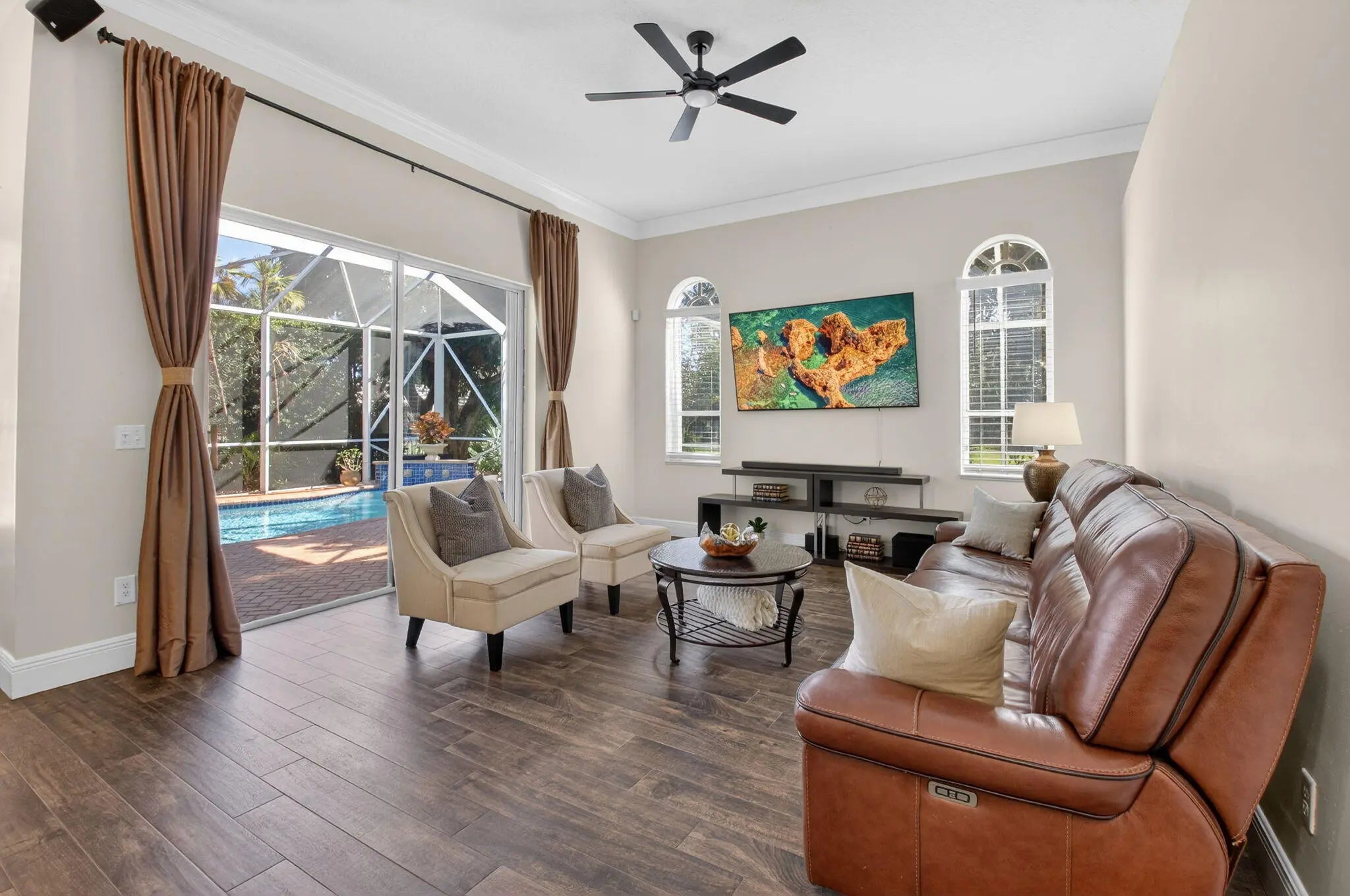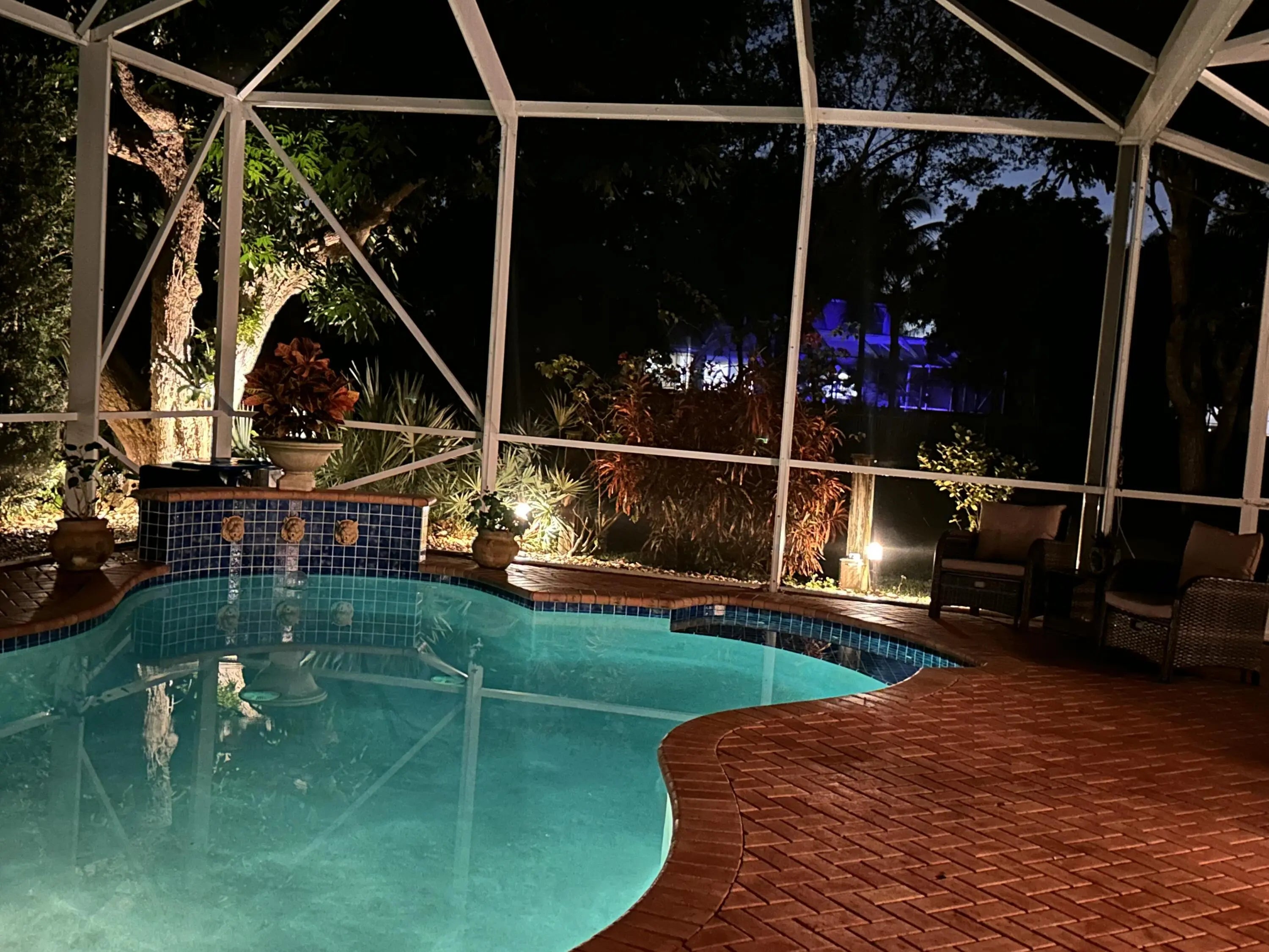 INTERIOR PICTURES COMING SOON. Premium park lot living in the Estate Section of Boca Landings! Desirable 4BR/3BA Yale model with 3-car garage and a private lot with no rear neighbors. Features tile throughout, newer roof (2022), partial impact windows and accordion shutters for full protection. Enjoy a 3-way split floor plan for privacy and 3 full baths, including one with cabana entry. Relax on the expanded, tiled, screened porch overlooking your saltwater pool. Enjoy your home grown Mangos just outside your porch area, as well as Guava, Key Lime, Meyer Lemon and Navel Orange trees. Low HOA includes cable, community pool, tennis courts, pickleball courts, handball, basketball court and multiple tot-lots. Close to shopping, restaurants and public golf courses!